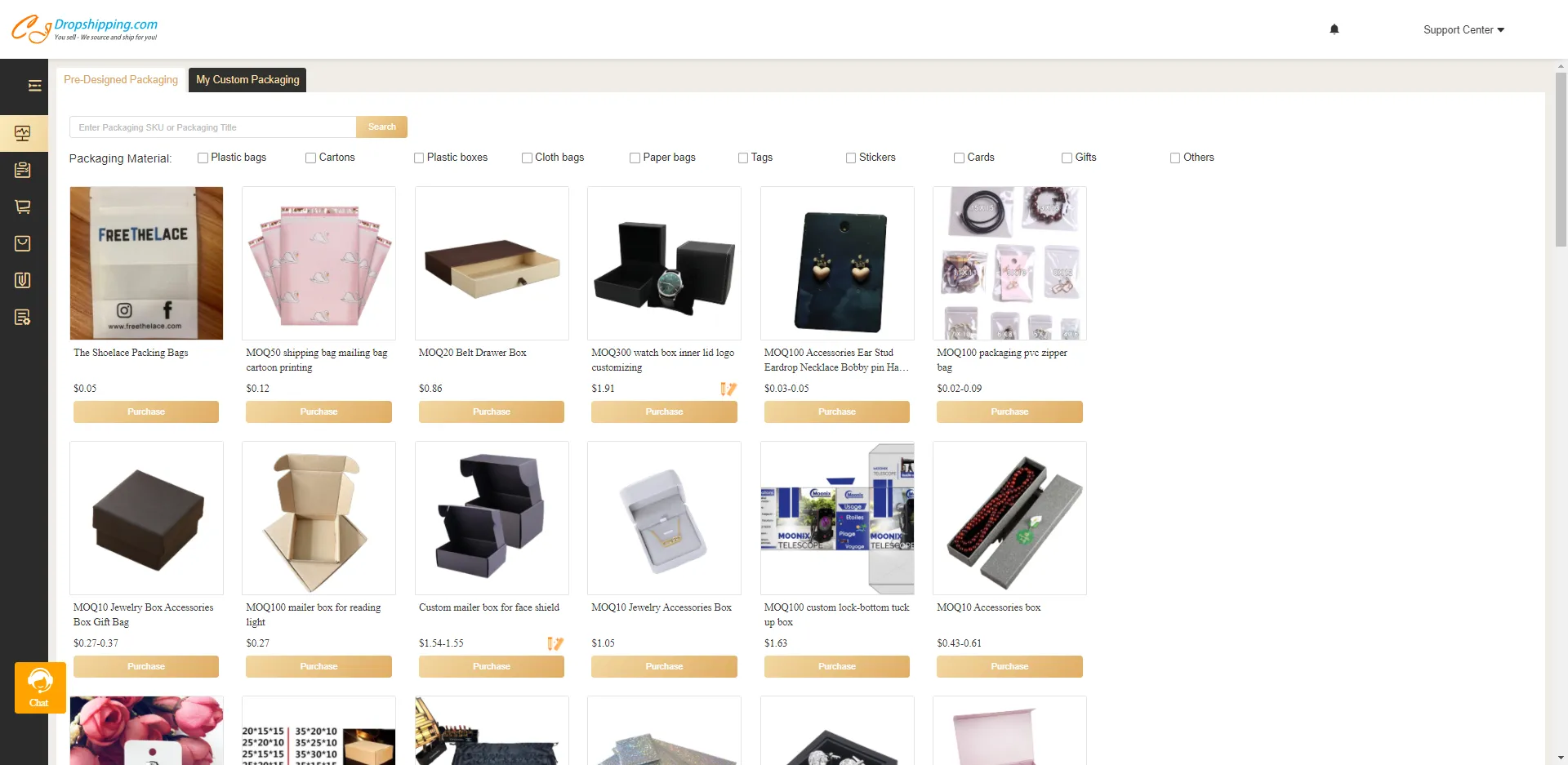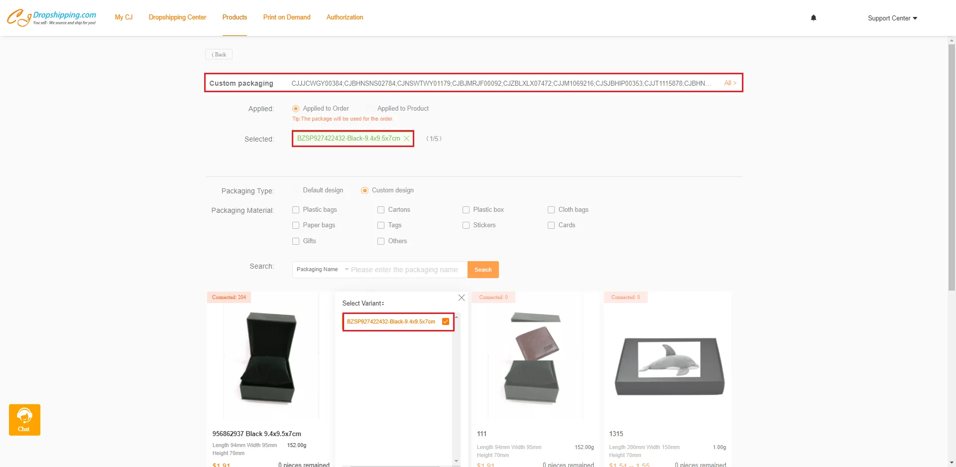 First, you need to know how to choose and apply one packaging on CJ. Go to Service > Custom Packaging, and you could select the type you need. Click here to view the whole process.