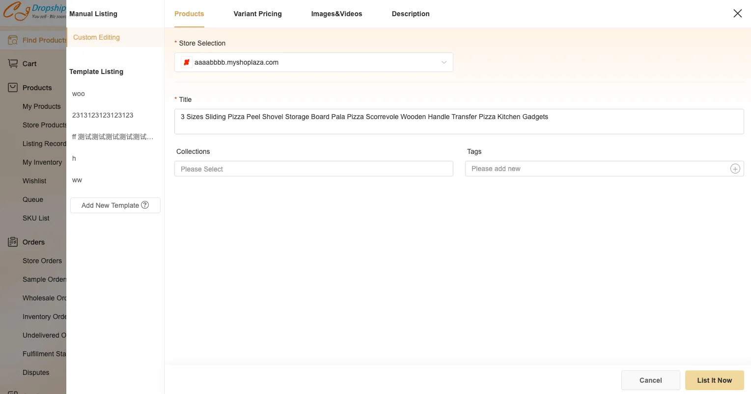 By the listing function, you could find this product displayed in your store. After clicking "List it Now", you could adjust the product information like the product tags and set your store price.