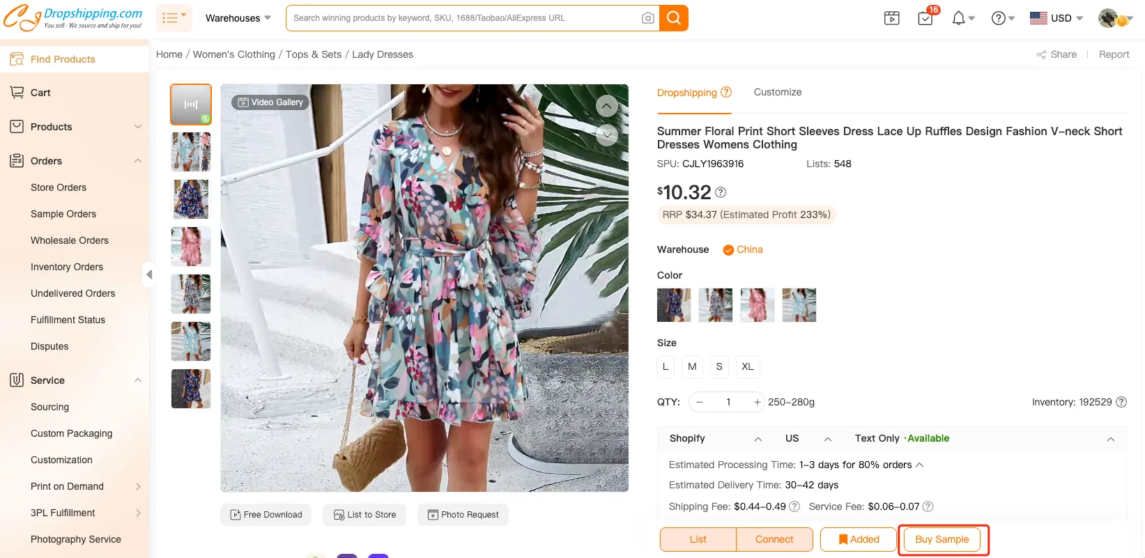 If the product doesn't have a wholesale option, you can click "Buy Sample" on the "Product-Dropshipping" page.