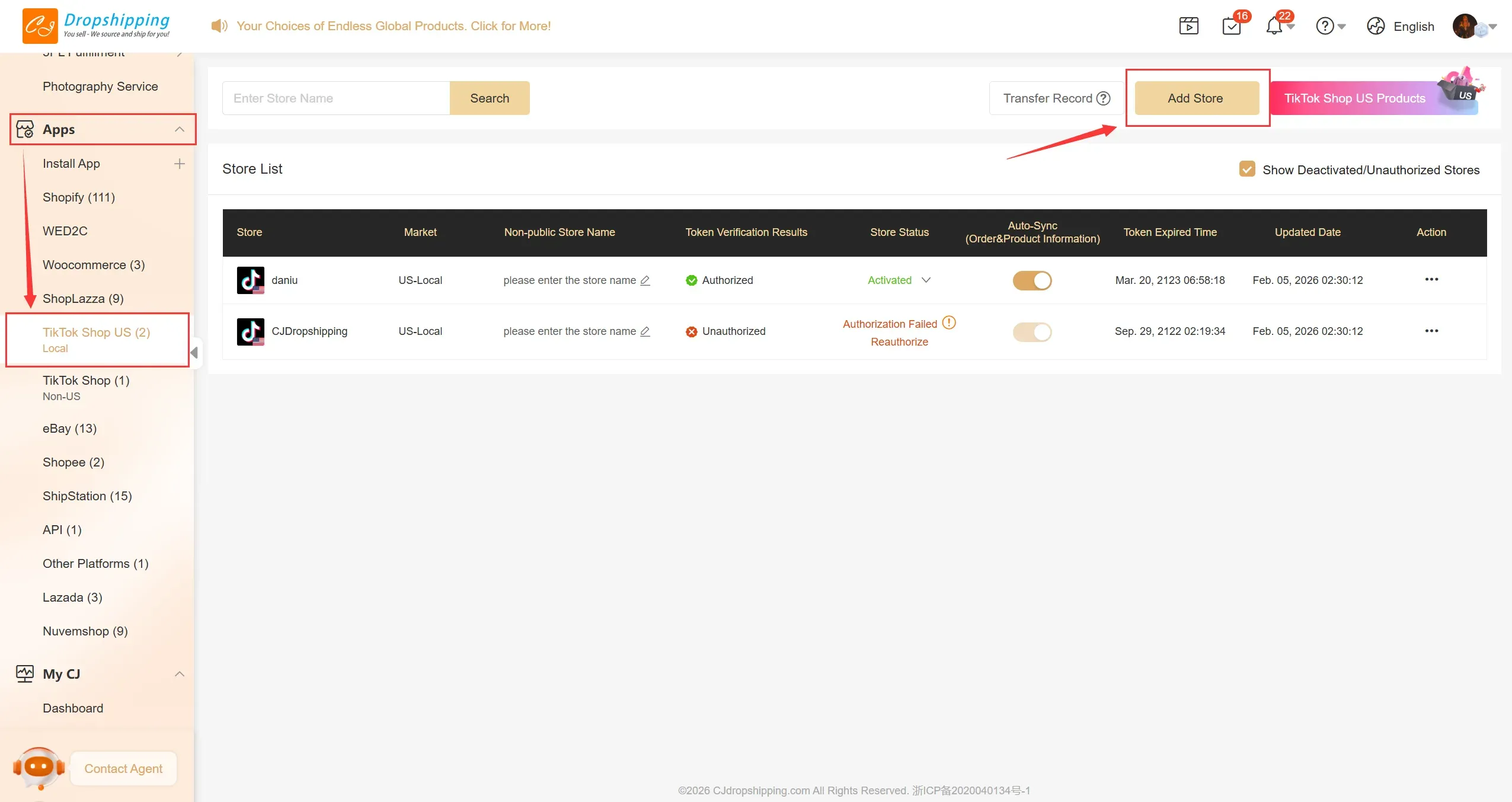 1. Click 'Add Store' in Apps > TikTok Shop US