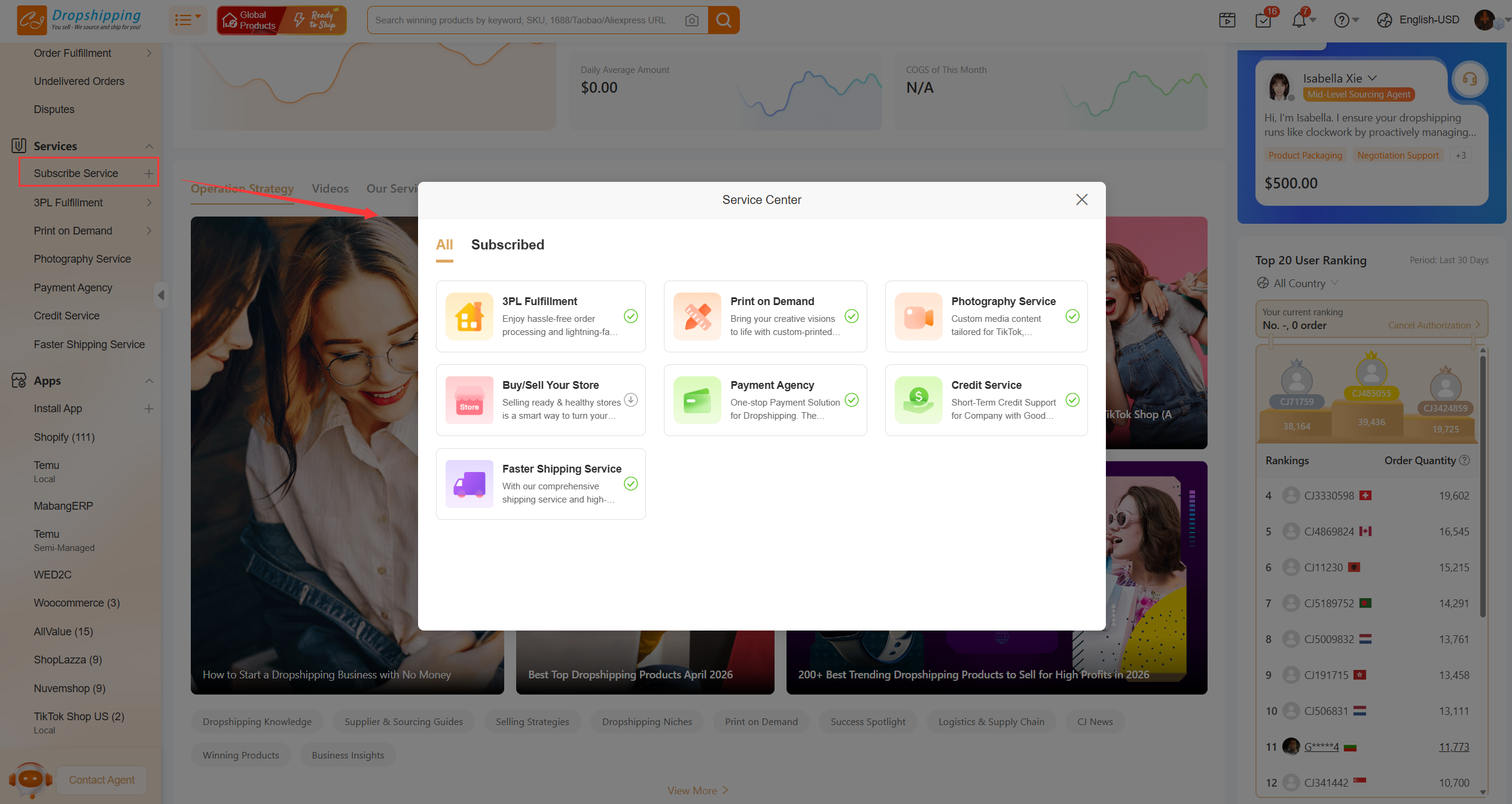 - New users: The system automatically subscribes you to 3PL Fulfillment (this cannot be canceled)