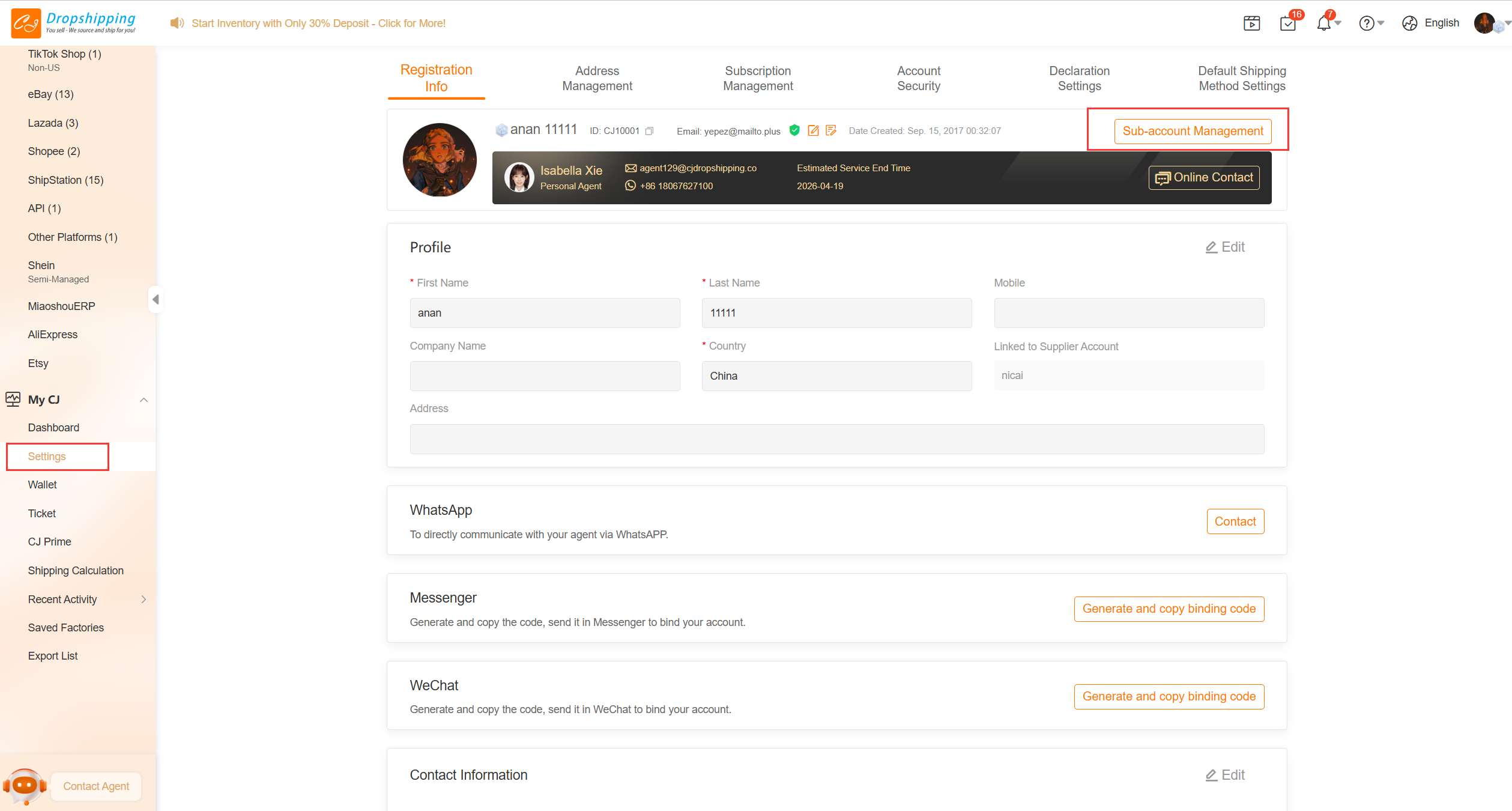 The sub-account management entry has been moved. You can now manage sub-accounts under Settings.