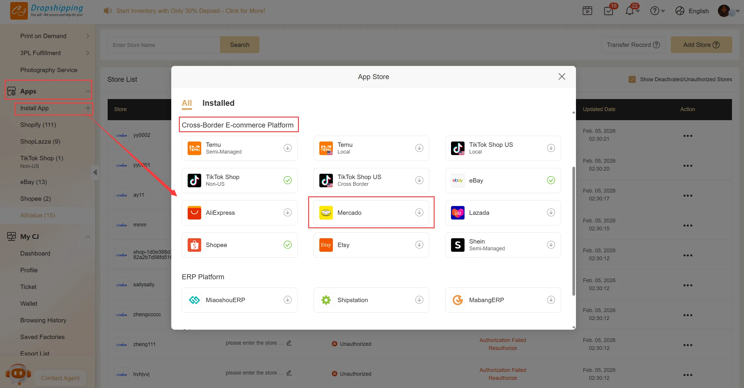 How to Connect Mercadolibre Stores to CJdropshipping?