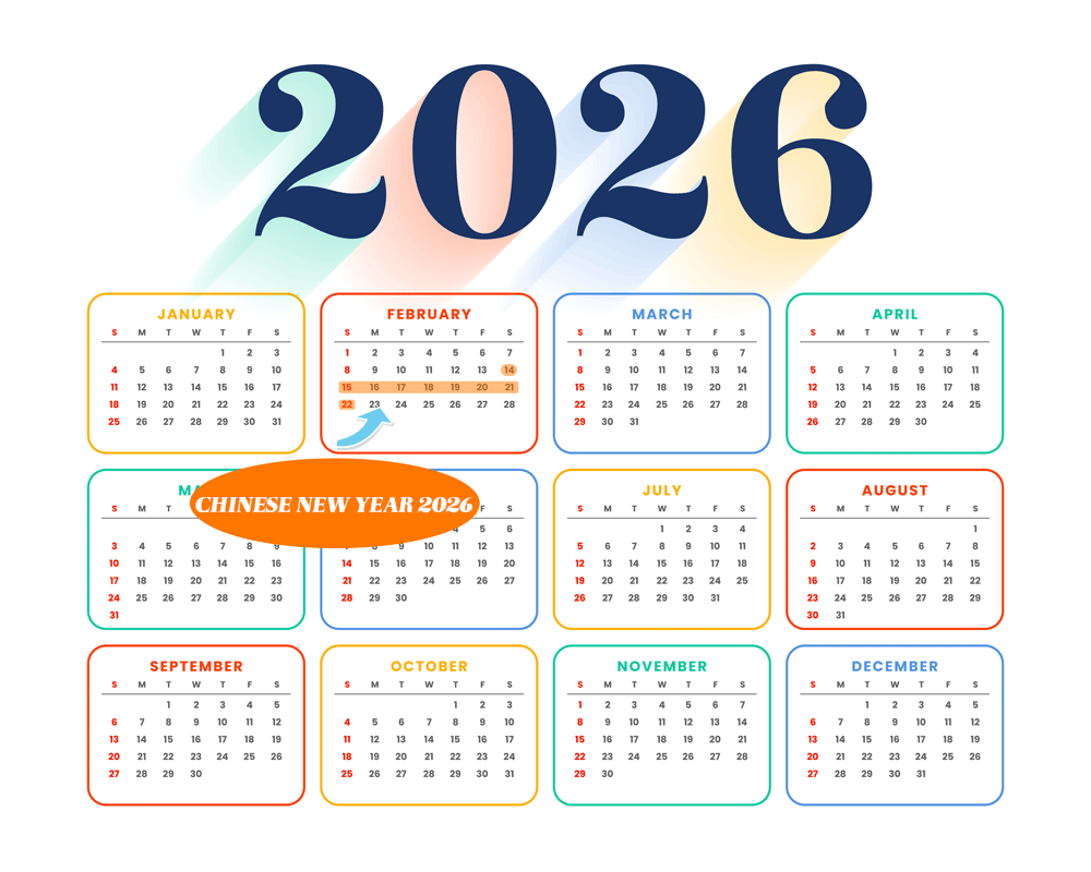 Chinese New Year: February 14, 2026 – February 22, 2026