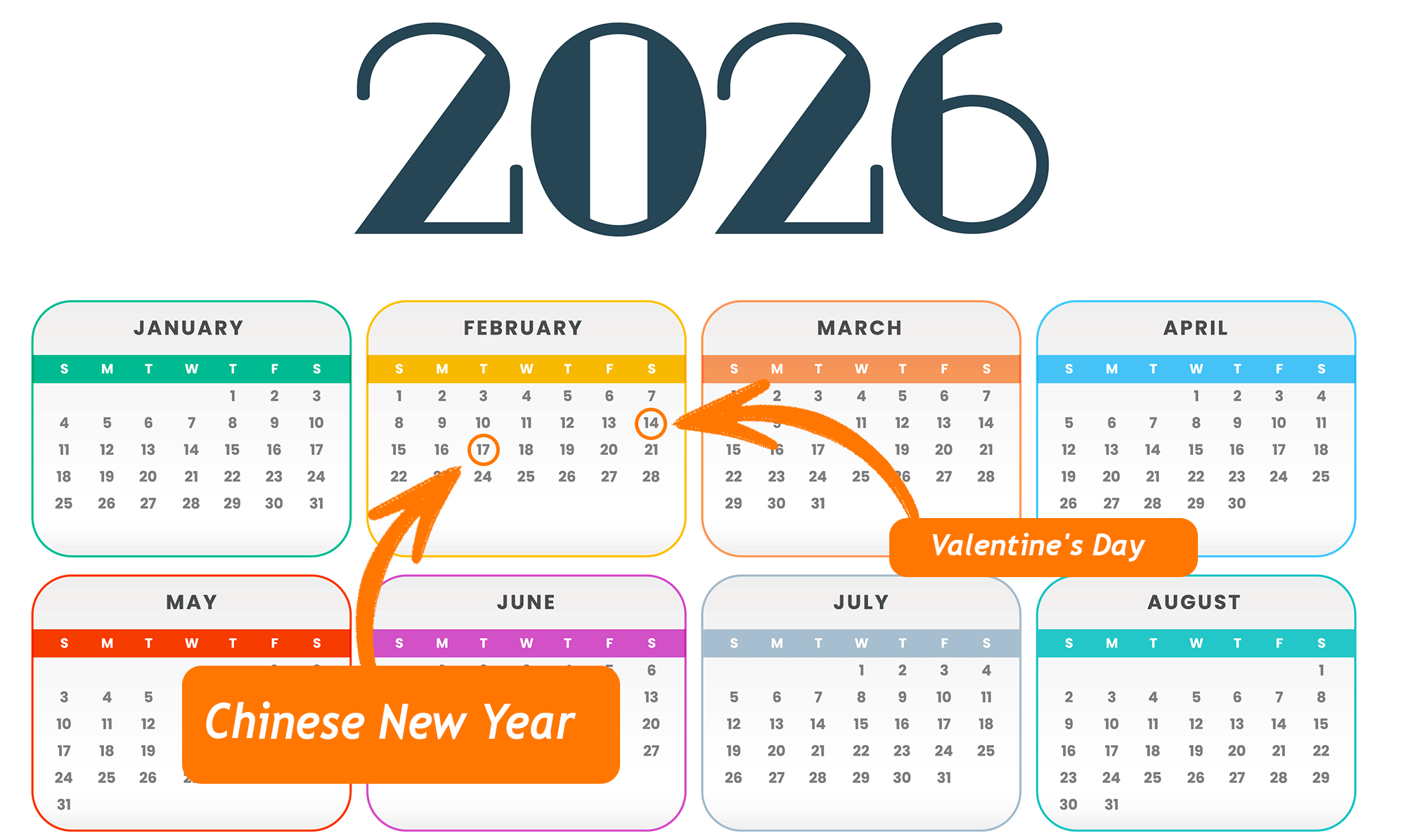 Chinese New Year has a unique impact on supply chains every year, and 2026 will be particularly special. Unlike most years when Valentine’s Day Sale comes after the holiday, in 2026 Valentine’s Day arrives first and Chinese New Year follows shortly afterward. This creates a longer period of continuous demand while many suppliers in China are preparing to close for the holiday.