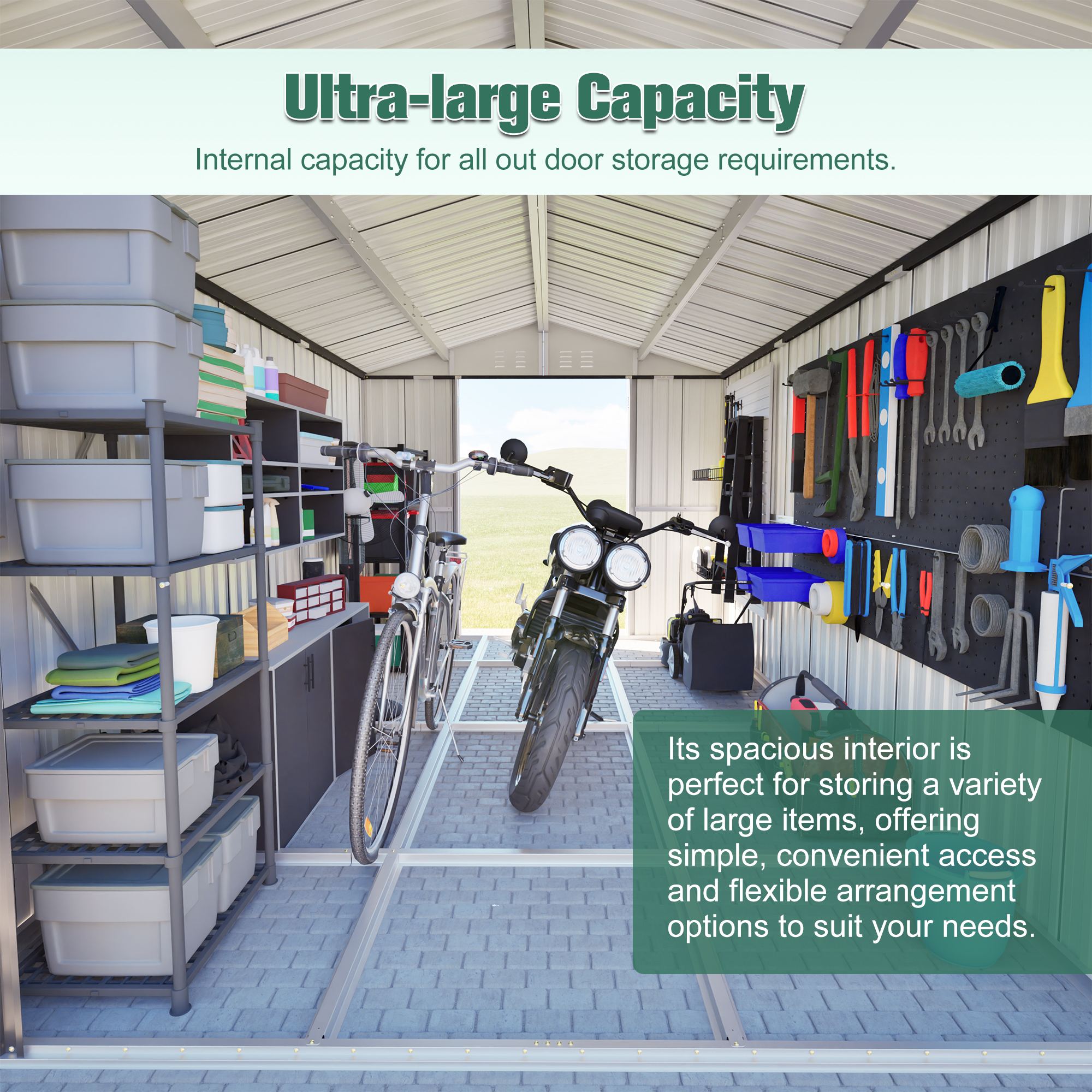 Product Name:Lockable Secure Metal Shed 8x12 FT - Large Outdoor Storage with Aluminum Frame, Durable Garden Tool Shed for Backyard, Patio, Lawn, Grey