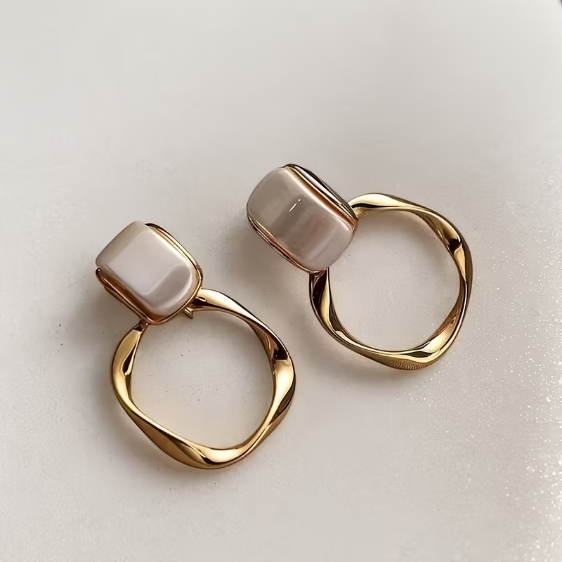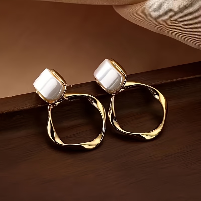 1 Pair Elegant Geometric Metal Hoop Dangle Earrings, Trendy Fashion Accessories, Perfect For Women's Daily & Banquet Wear, Unique Jewelry Gift