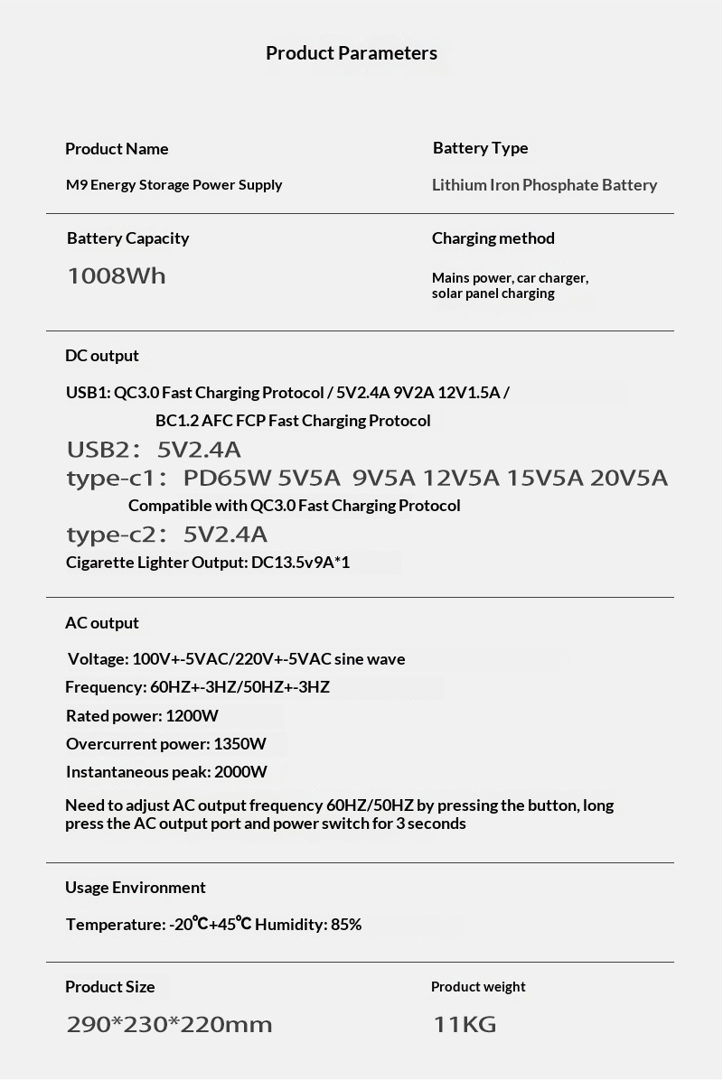 Specifications: 1200W energy storage system European standard, 1200W energy storage system American standard, 1200W energy storage system Japanese standard, 1200W energy storage system national standard