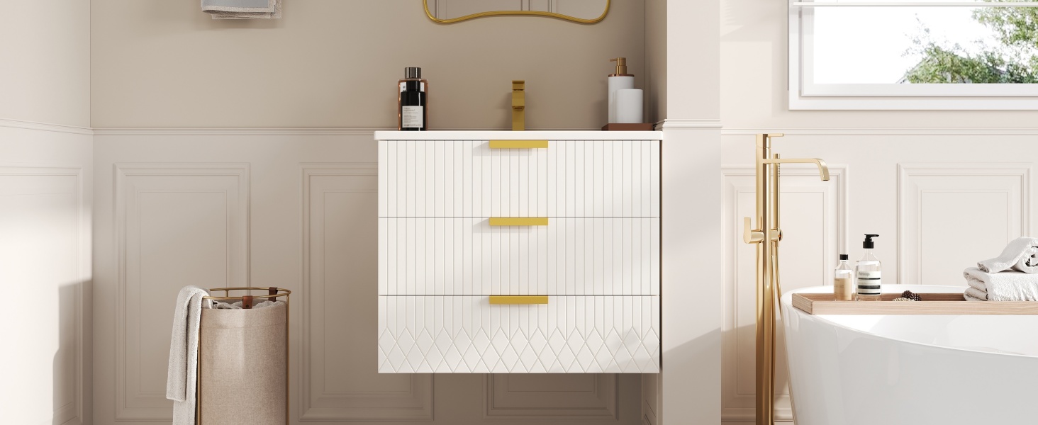 Product Name:24inch Wall Mounted Floating Cabinet w/Double Drawer, Floating Rectangular Vanity Small Bathroom Sink With Single Faucet Hole and Overflow, Modern Bathroom Cabinet with Ceramic Basin Sink