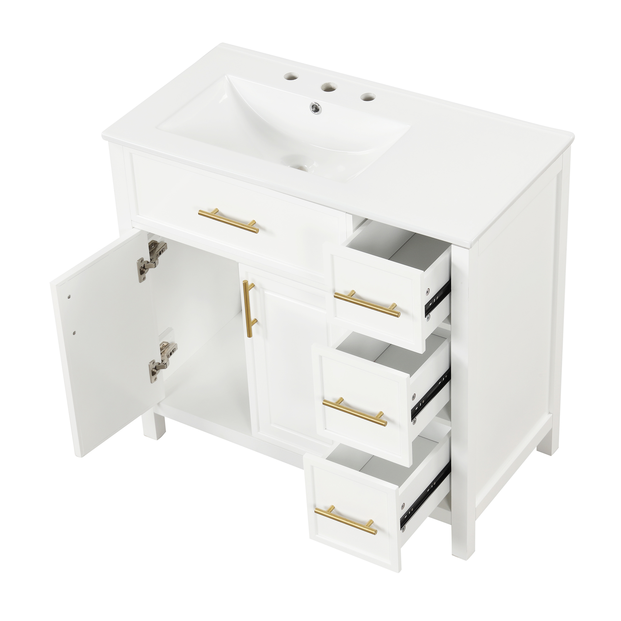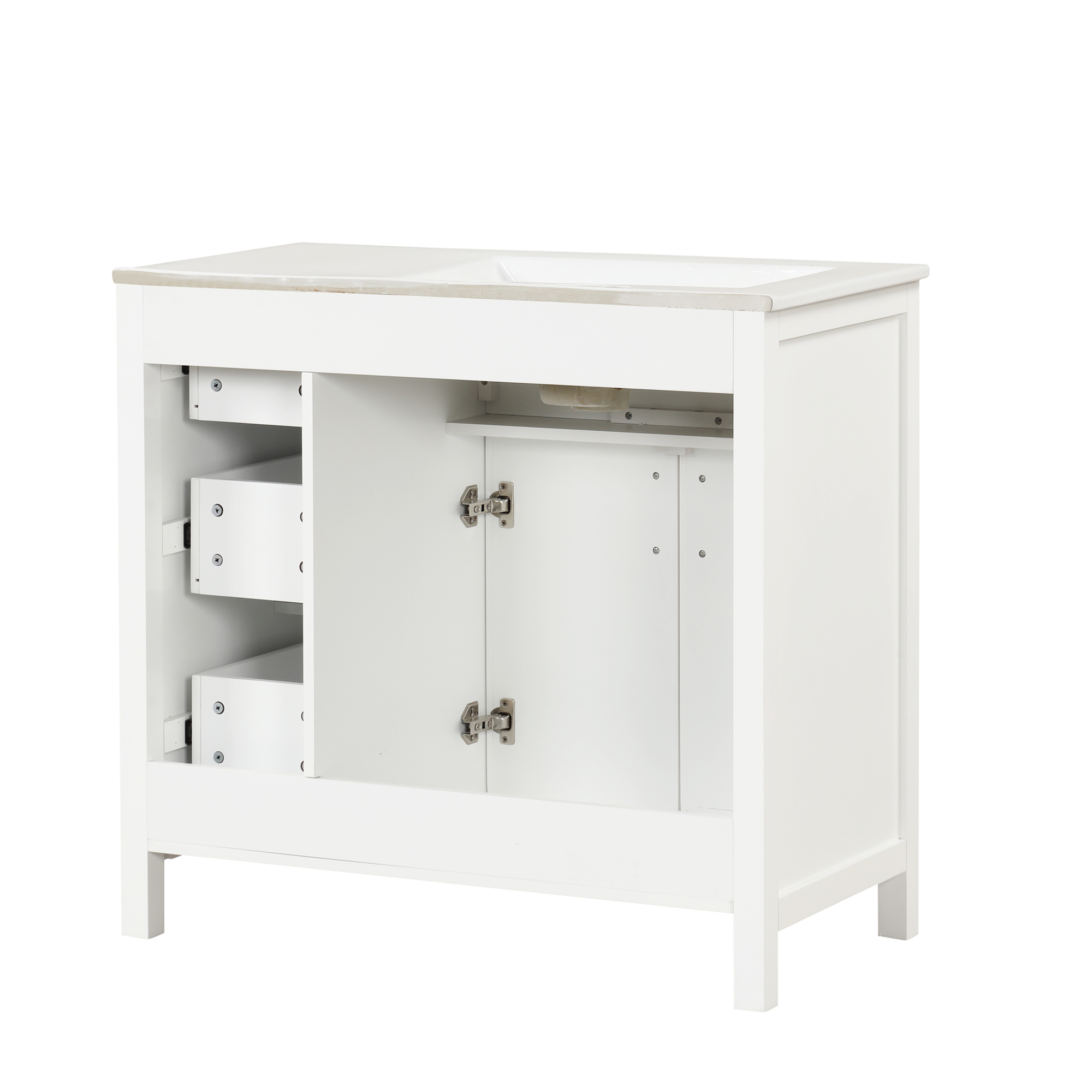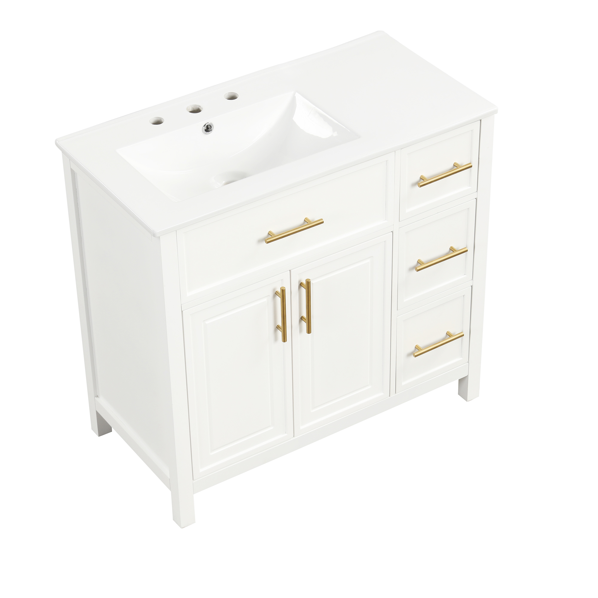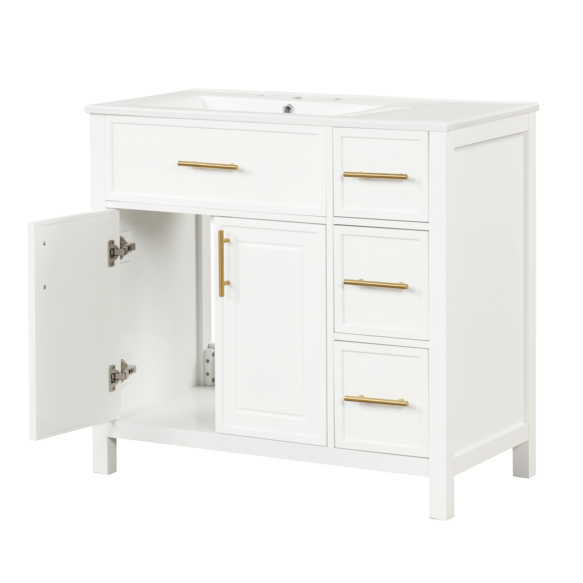 36 Bathroom Vanity With Sink Top, Bathroom Vanity Cabinet With Two Doors And Three Drawers, Solid Wood , MDF Boards ,One Package, White