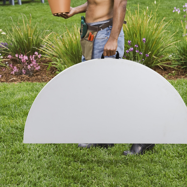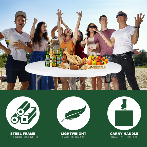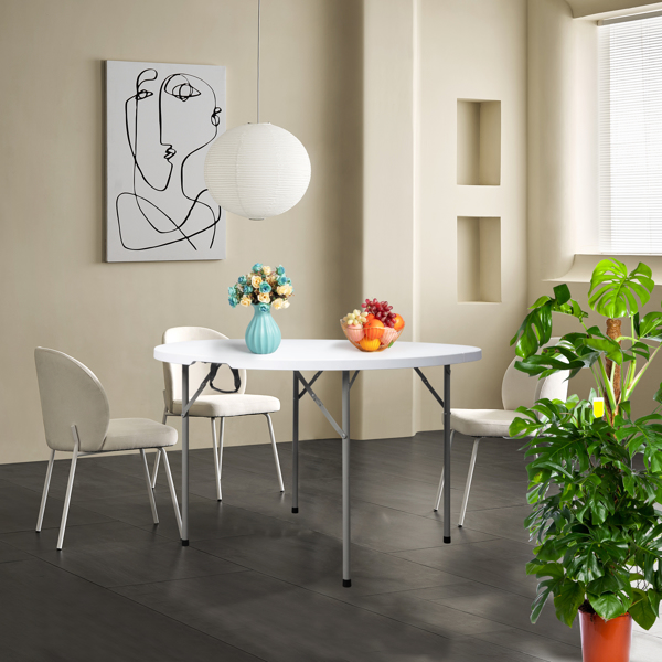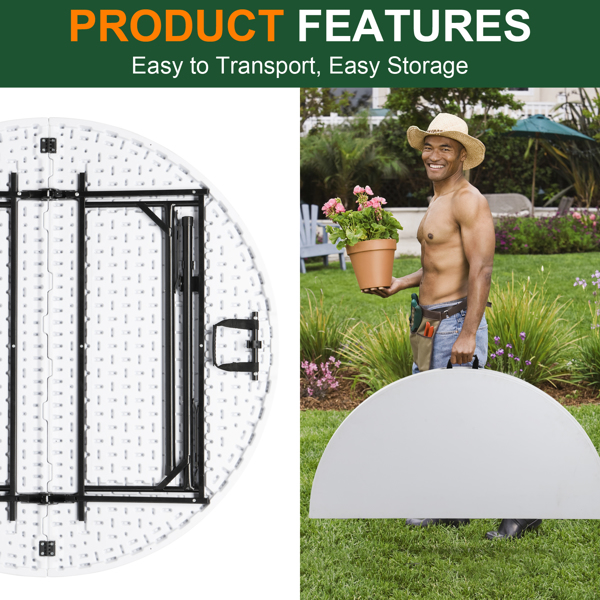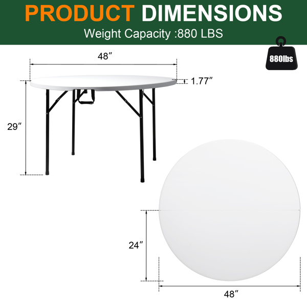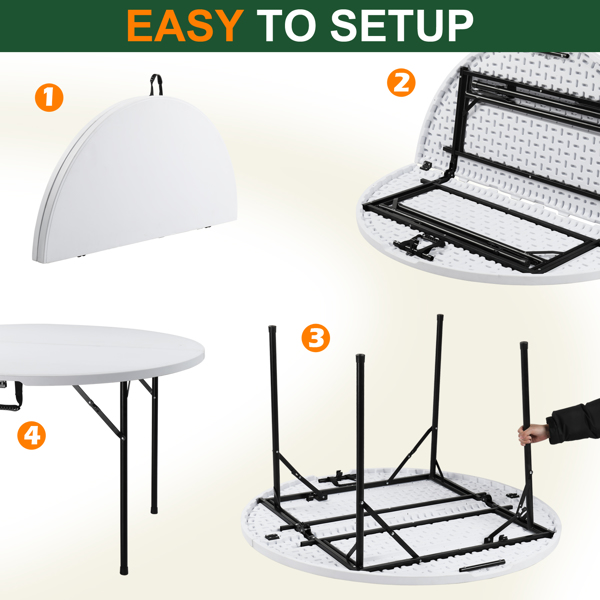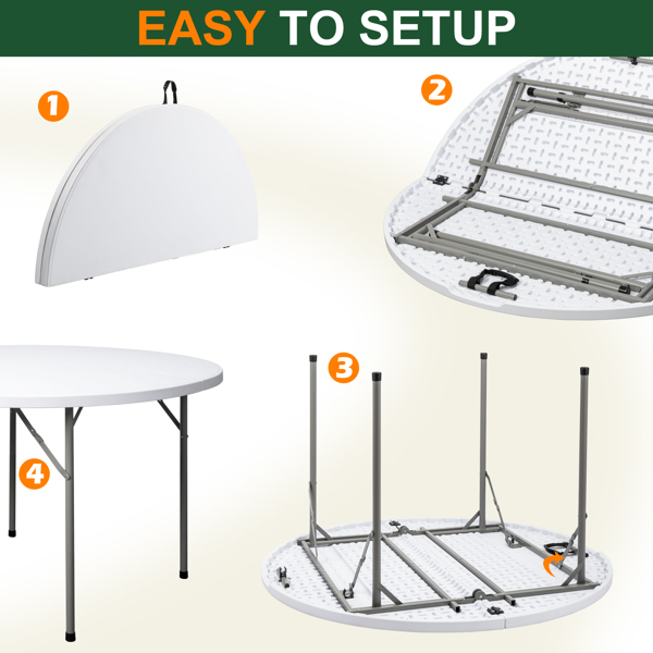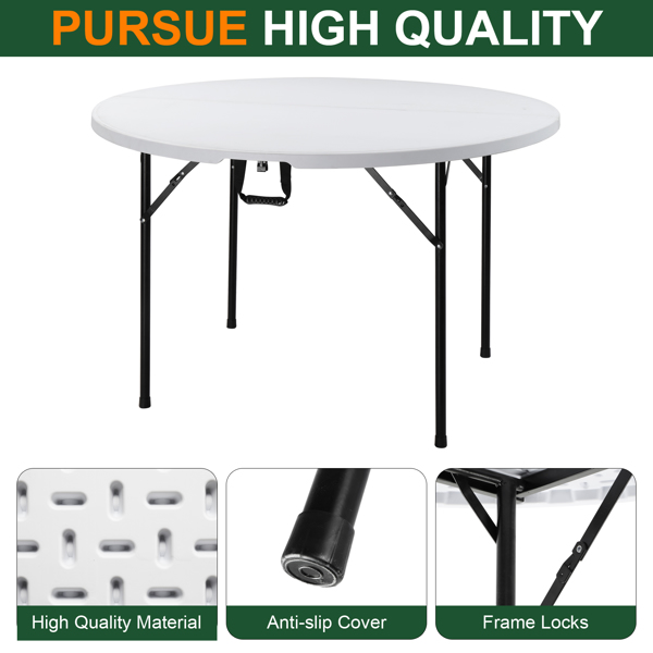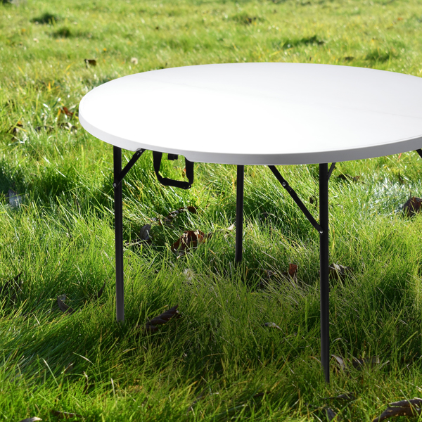 The 48inch Round Folding Table Outdoor Folding Utility Table is a best choice for you. The table is made from HDPE and the leg is made of steel. It's of great outdoor leisure furniture. This table has small size and light weight so that it's easy to be fitted with your guard. This is a best useful furniture for you. It's structure simple and practical. You can put it in your garden or in your guard. You will like it so what are you still waiting for?
