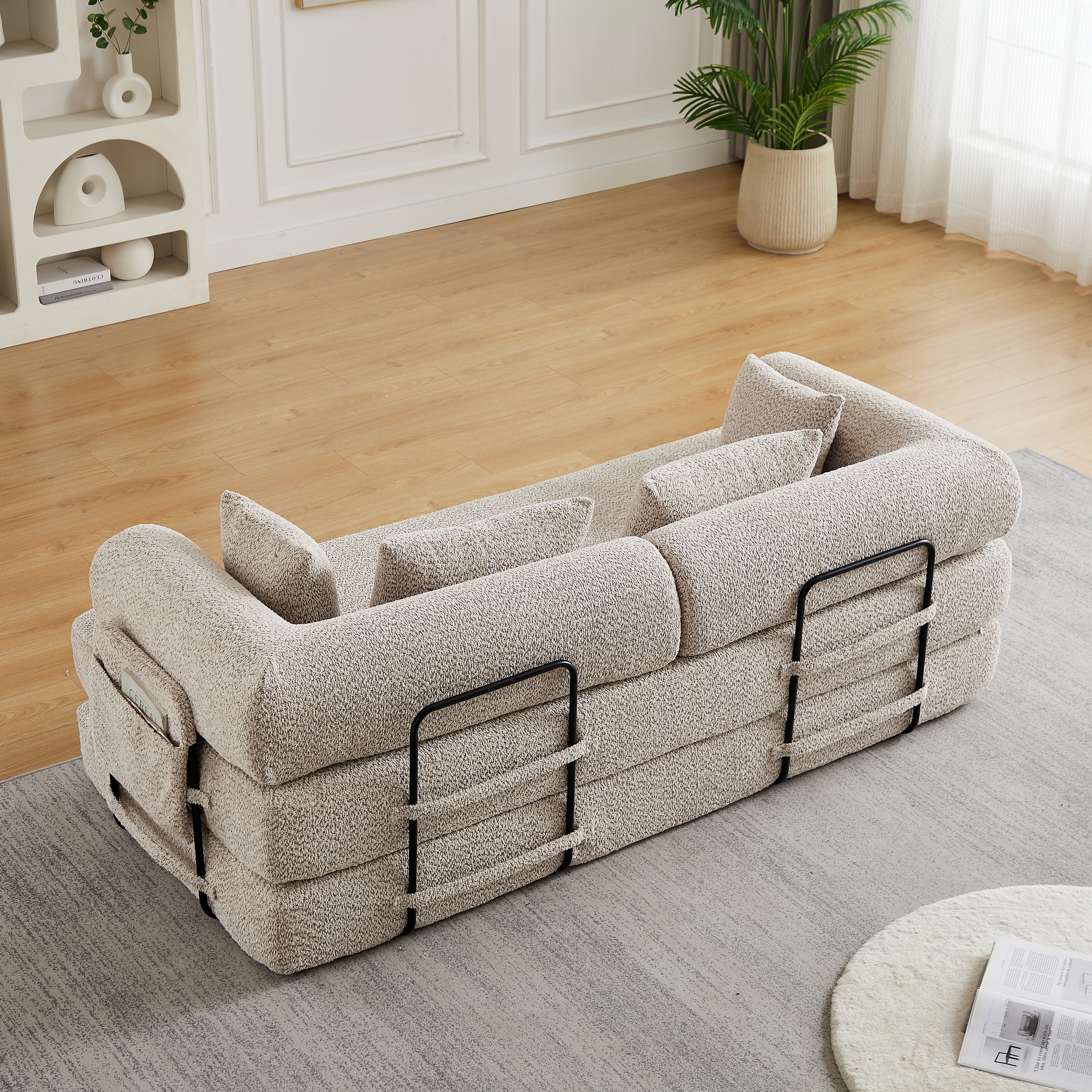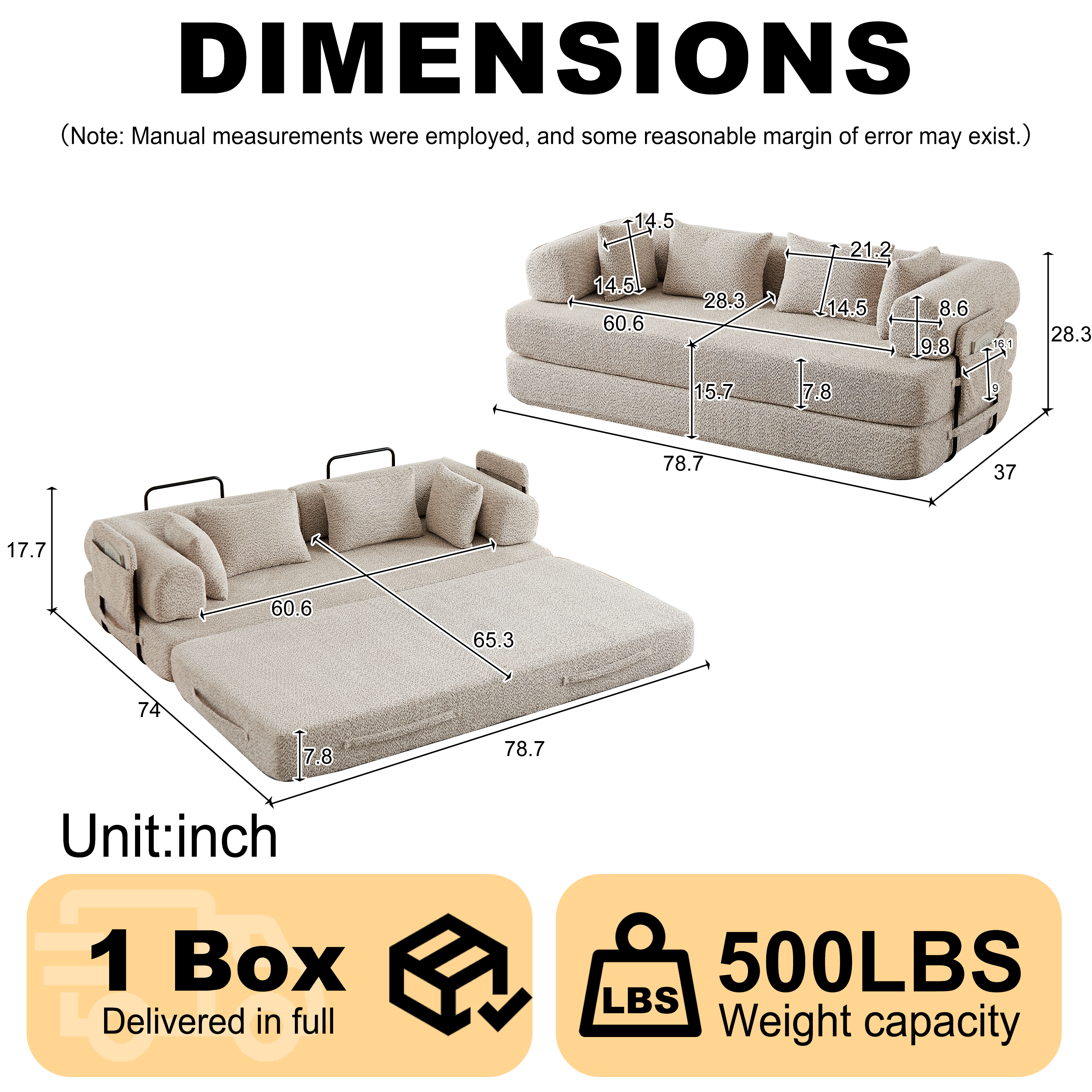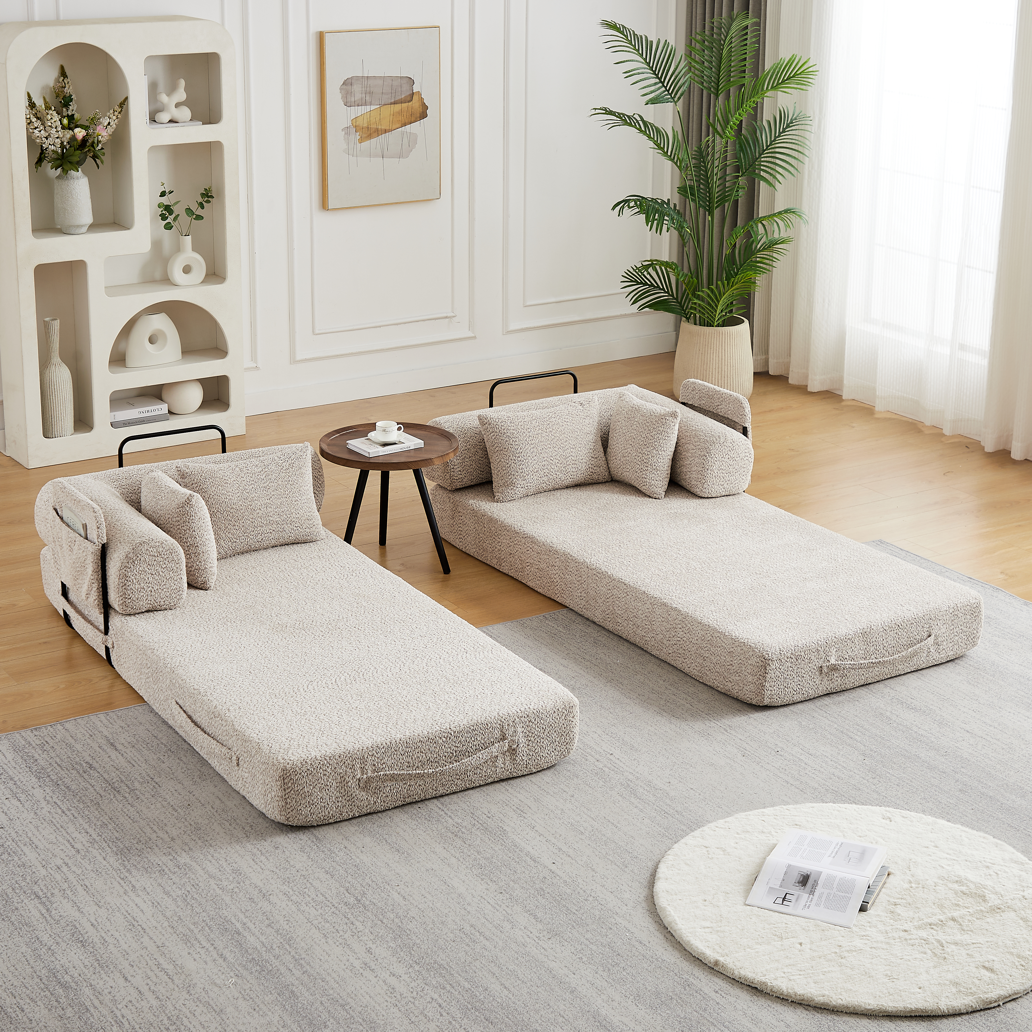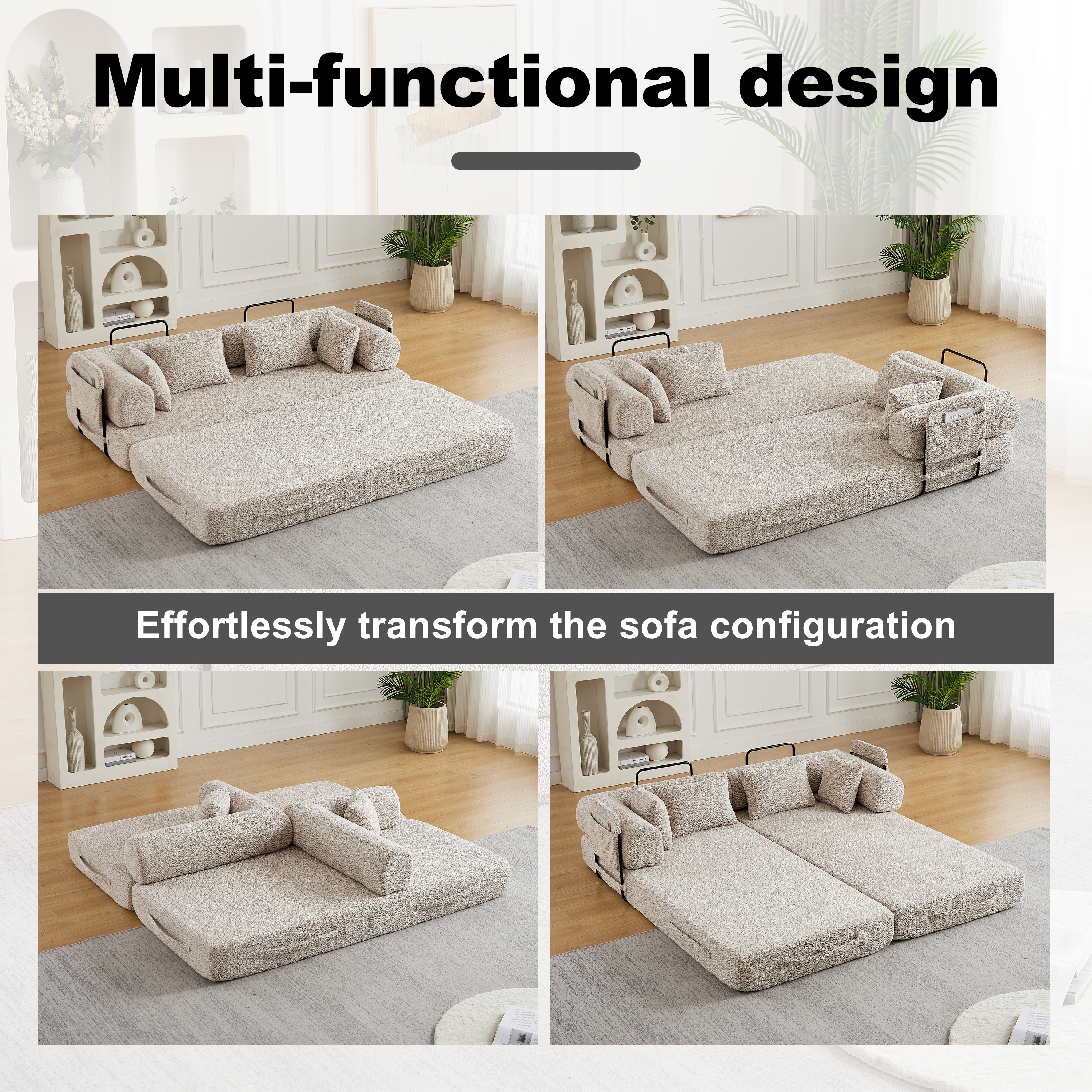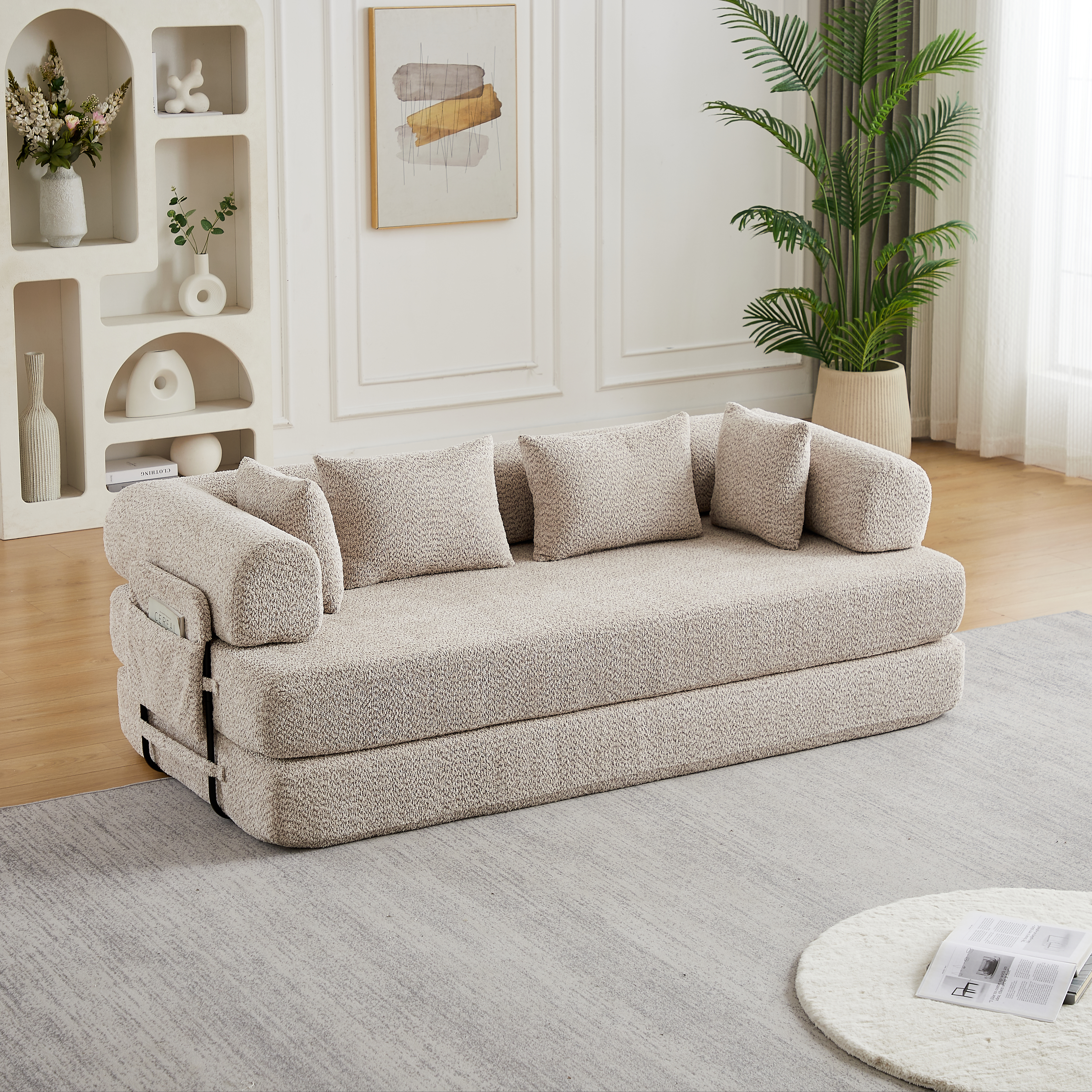Product Name:78.7-Inch Convertible Sleeper Sofa Bed with Cylindrical Pillow, Chenille Folding Mattress Couch with ,Folding Sofa Bed with Side Pocket, Floor Sofa Lounge Couch for Living Room Bedroom Lounge Studio