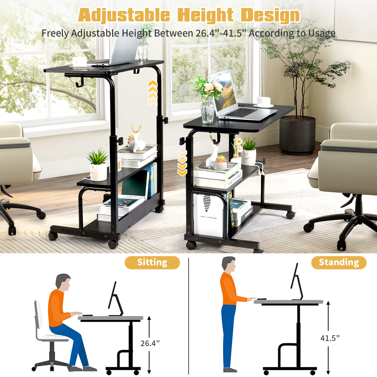 •Adjustable Height: Designed with an adjustable mechanism, allowing users to customize the height of the desk to suit their needs, promoting ergonomic comfort.
