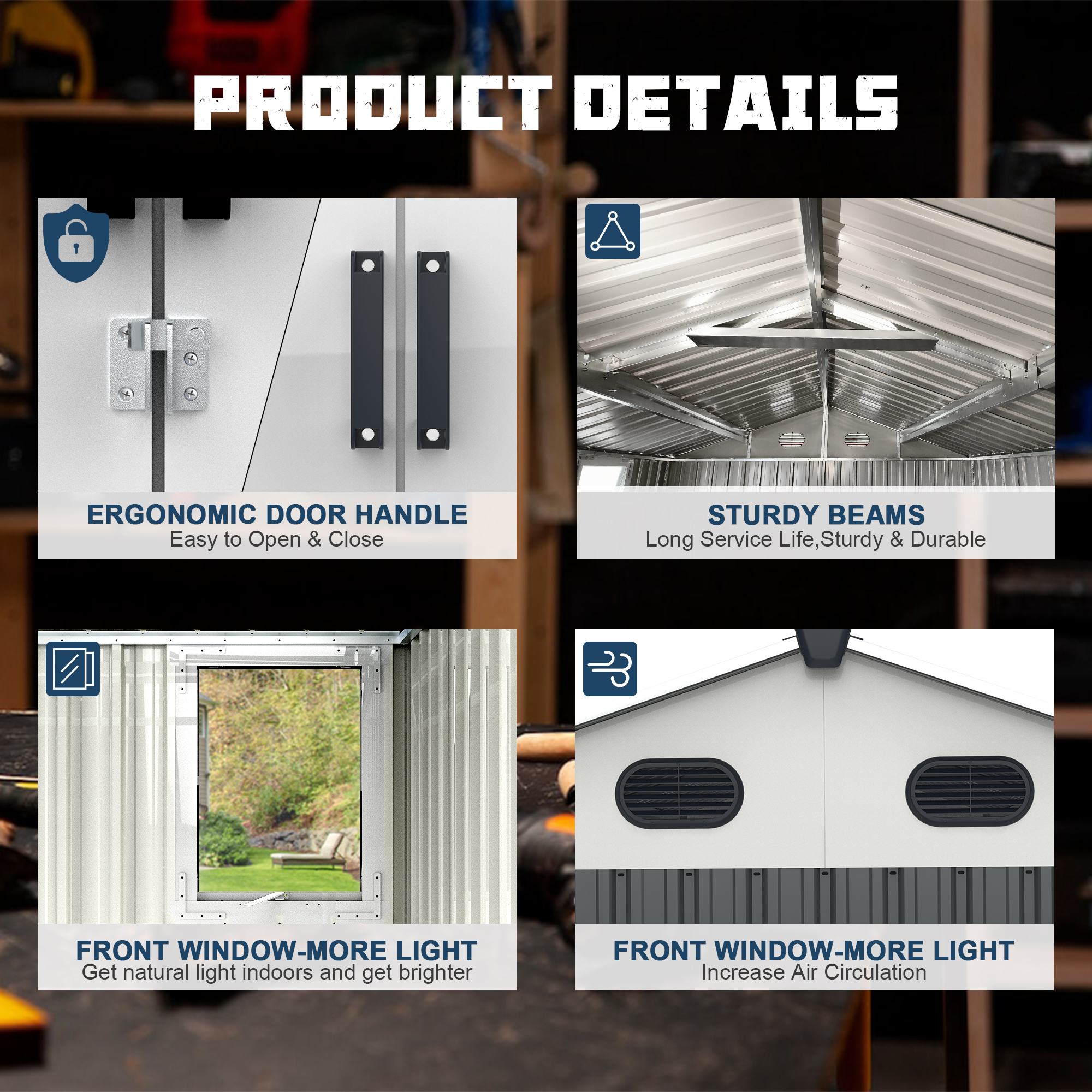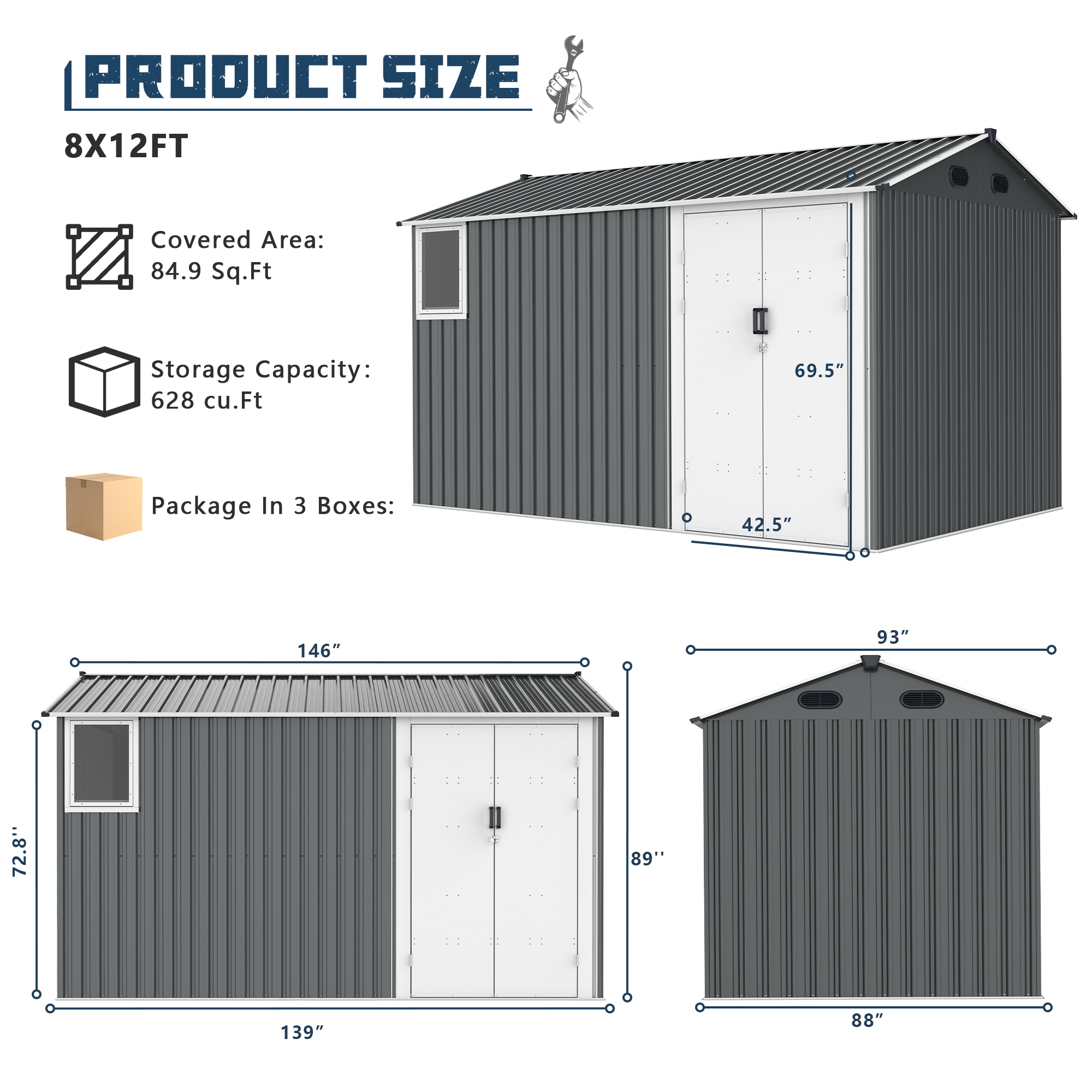 Product Name:8x12 Ft Metal Outdoor Storage Shed with Window, Floor Base, Air Vents and Double Hinged Door