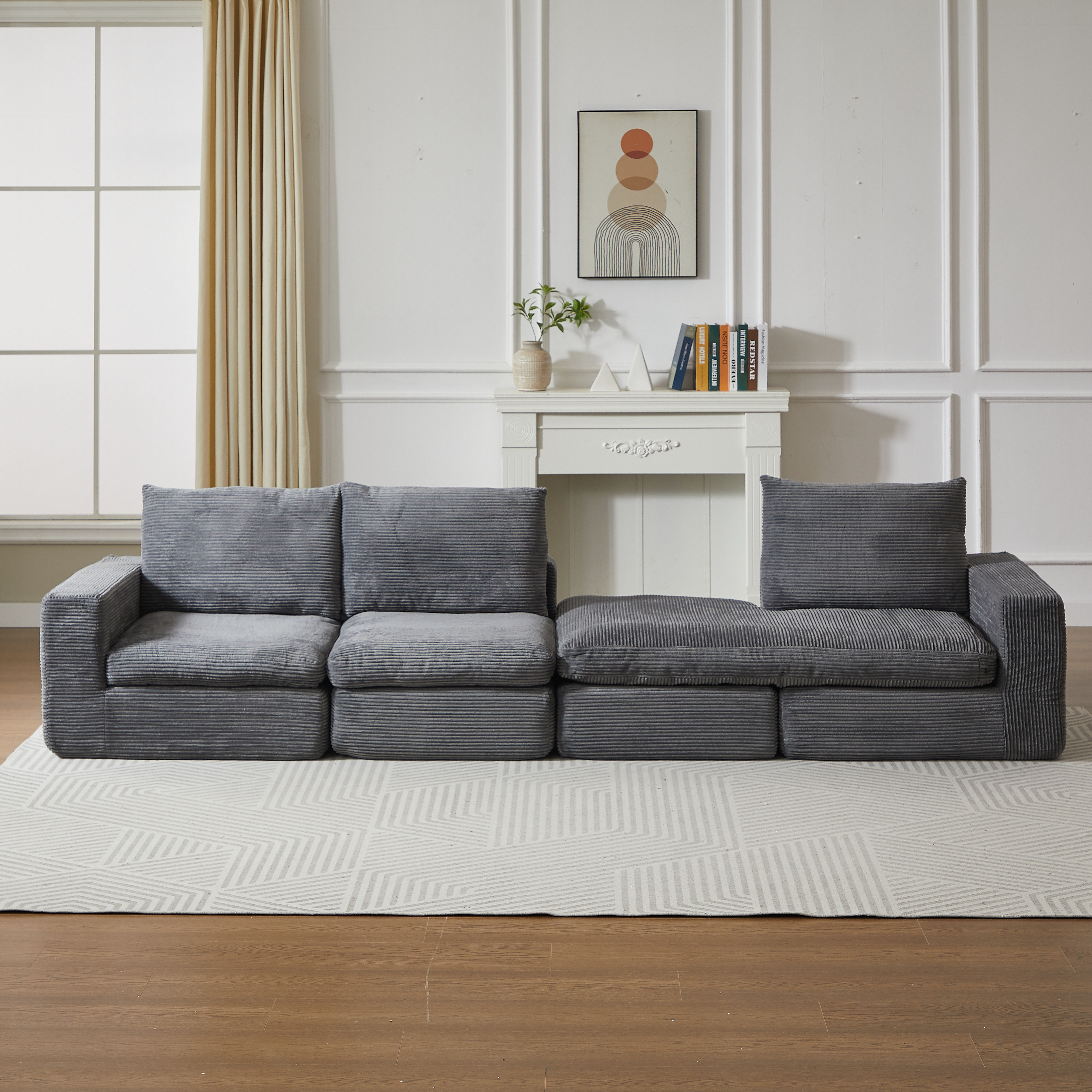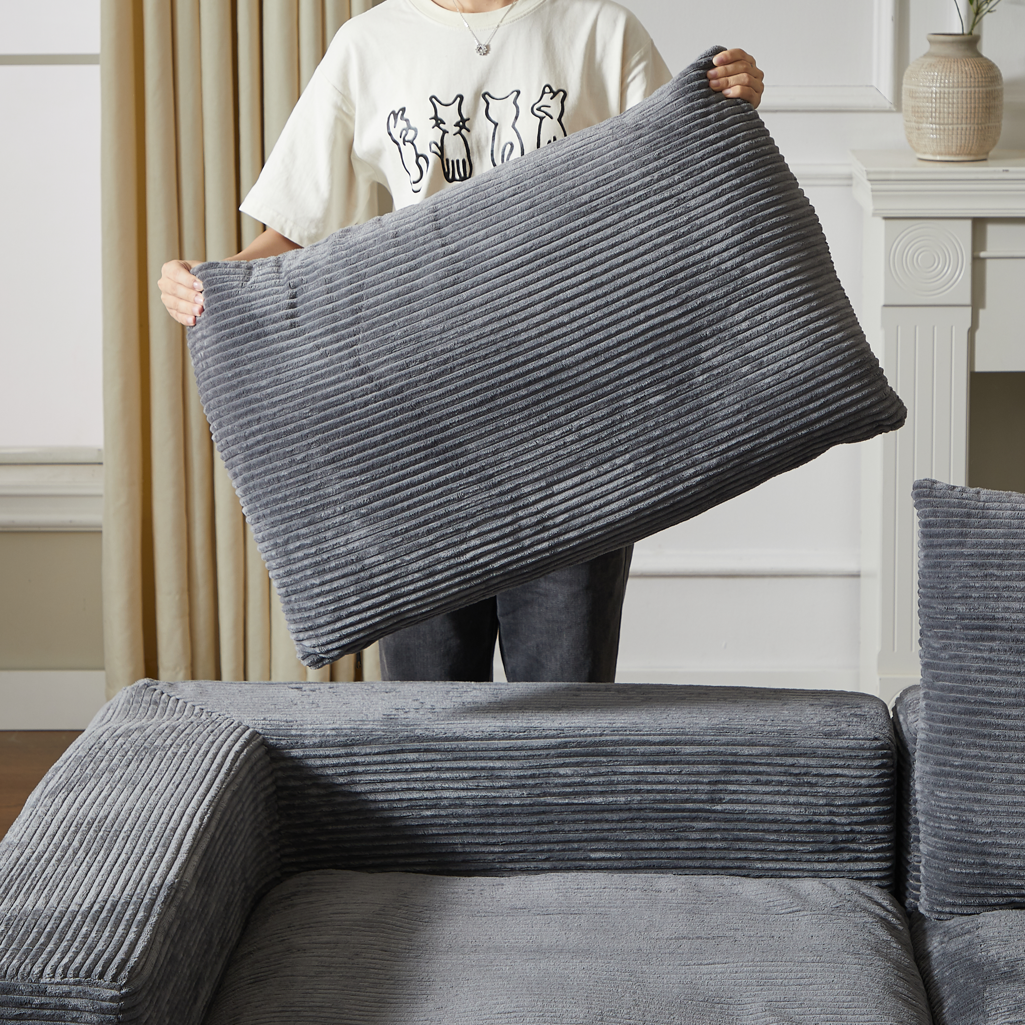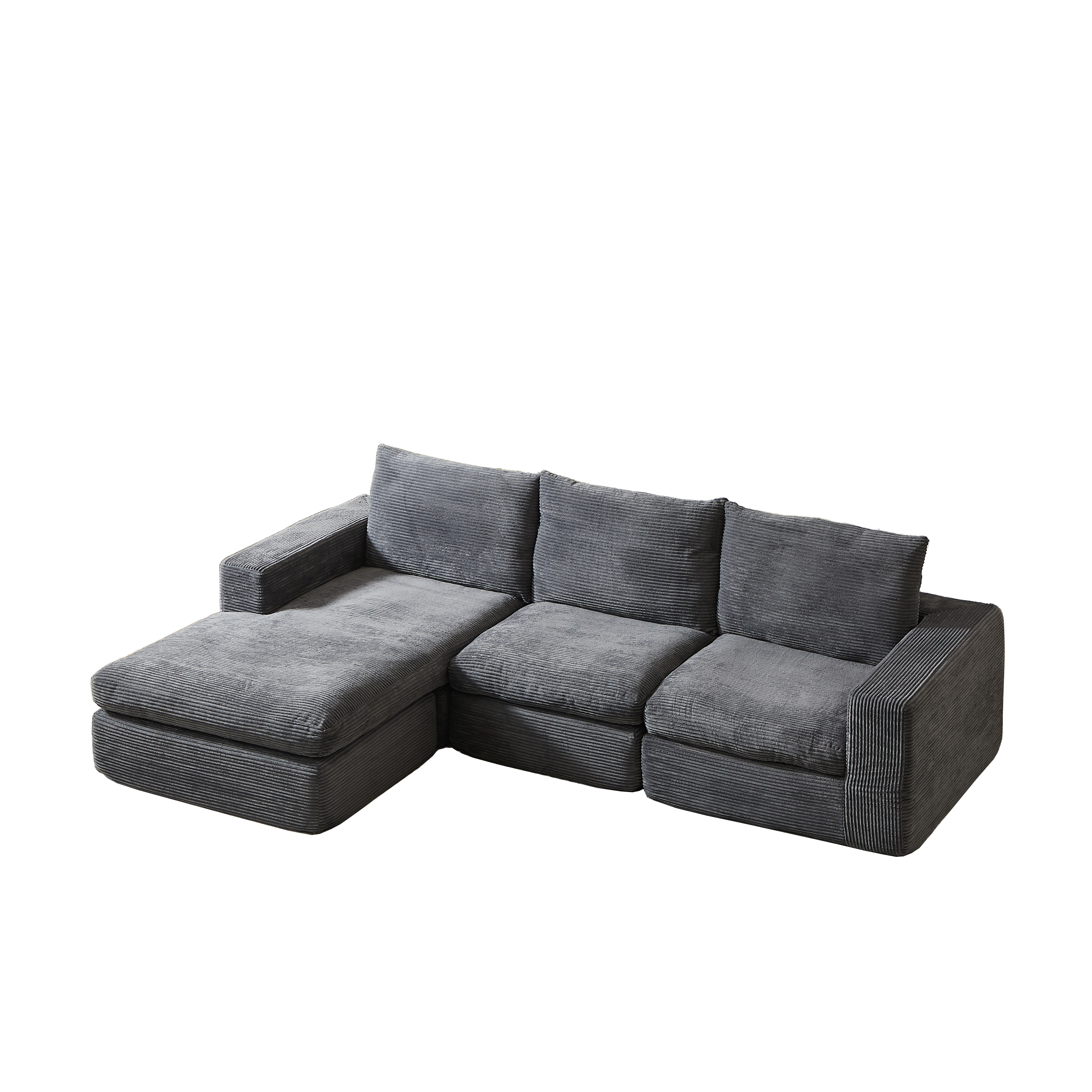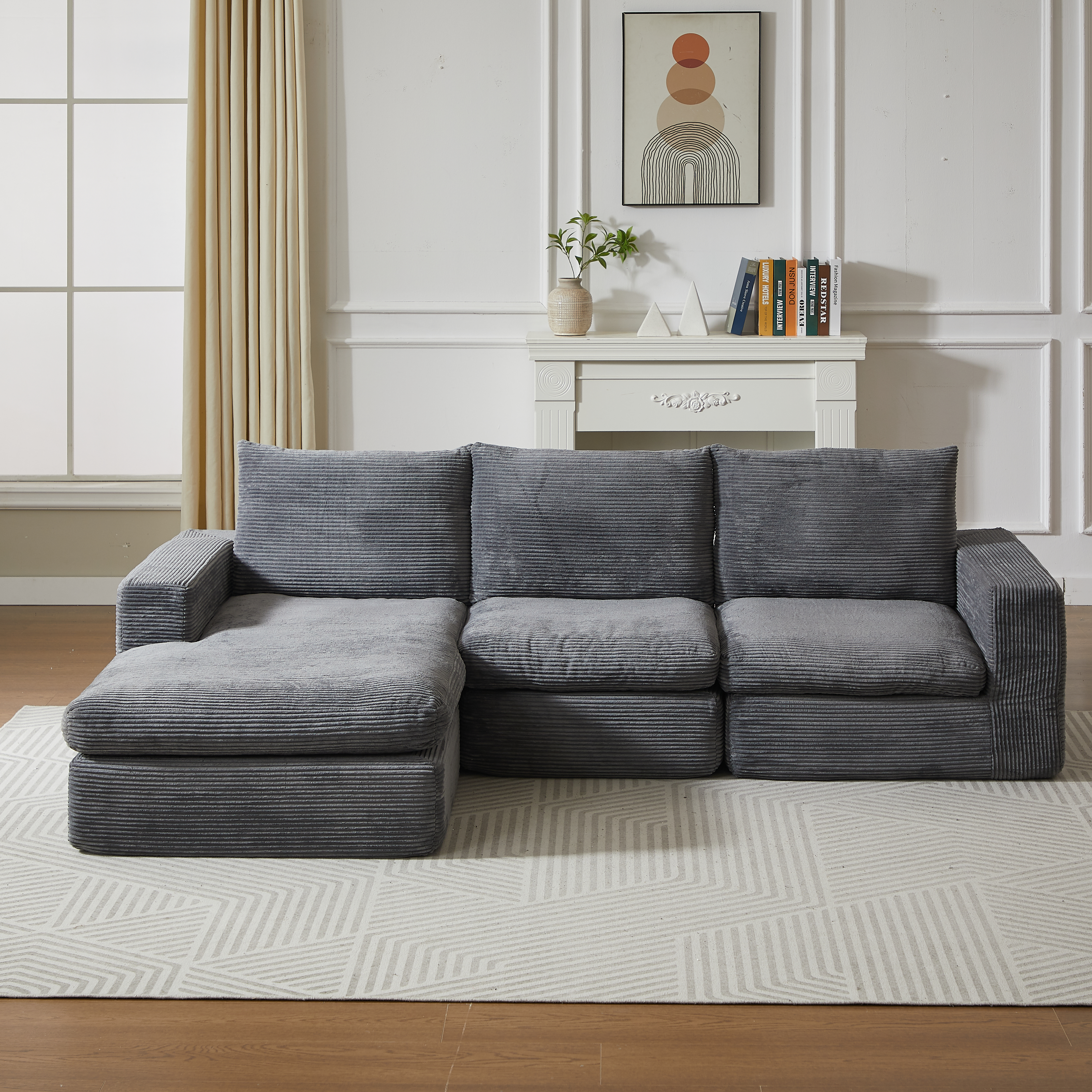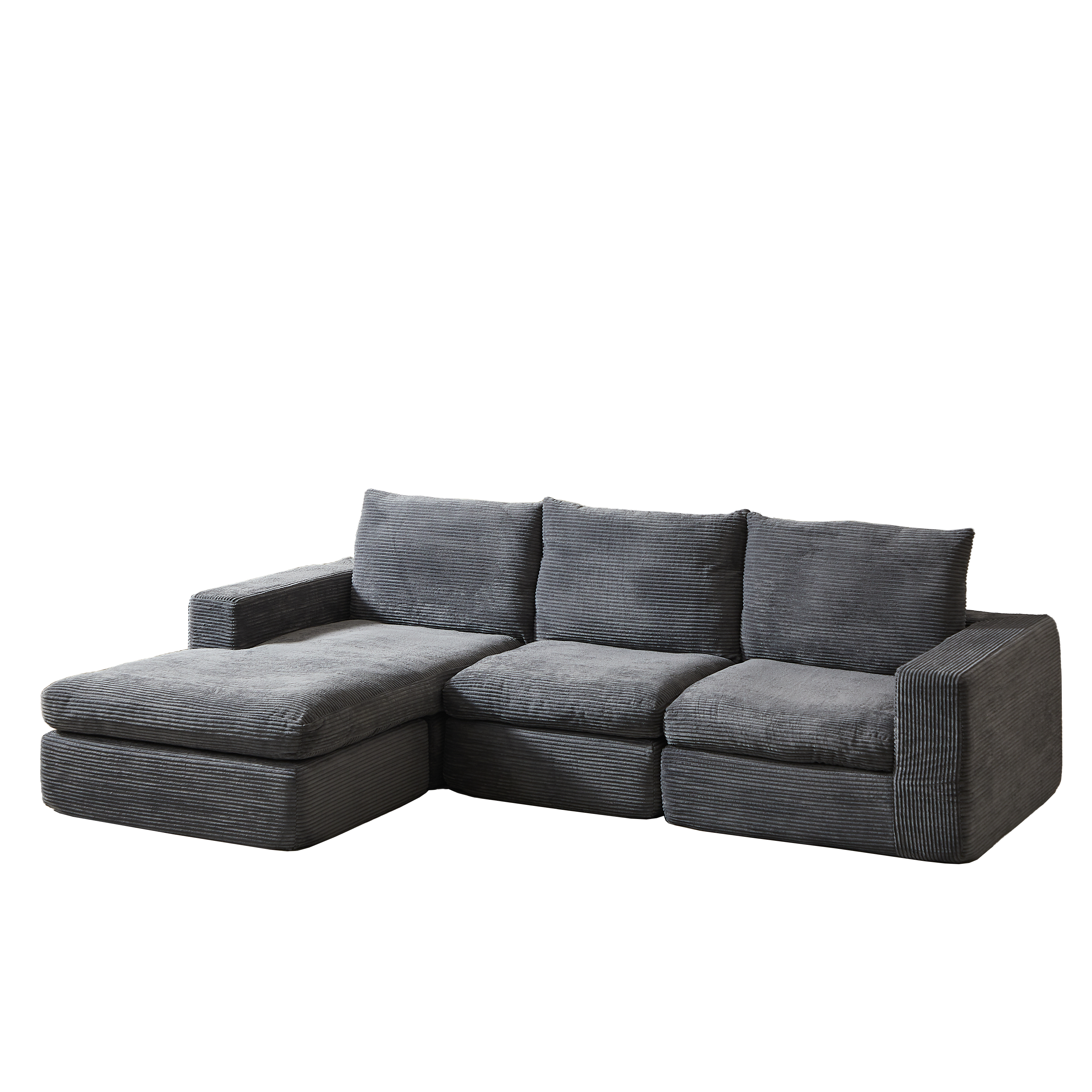 Product Name:99-Inch Boneless Couch with Chaise, L-Shaped Modern Upholstered Sectional Sofa with Three pillows, Corduroy Sectional Sofa for Living Room and Bedroom, No Assembly Required