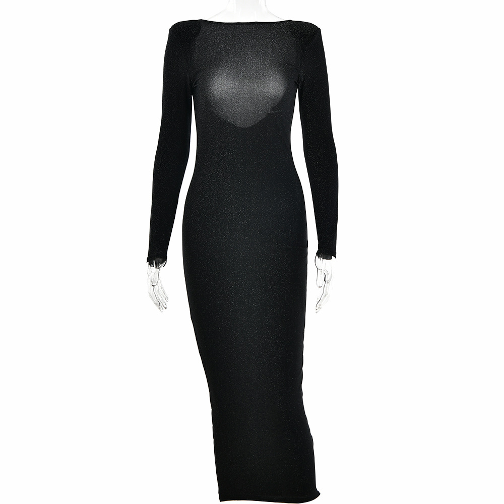 A Line Neck Bright Silk Dress European And American Party Style Sexy Spice Girls Show Back Slim-fit One-step Dress