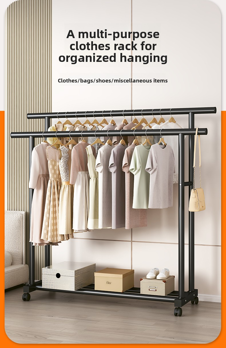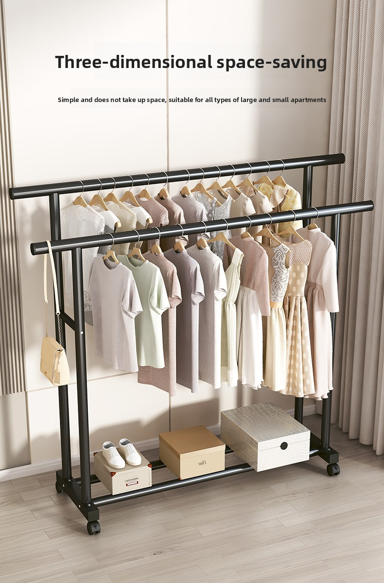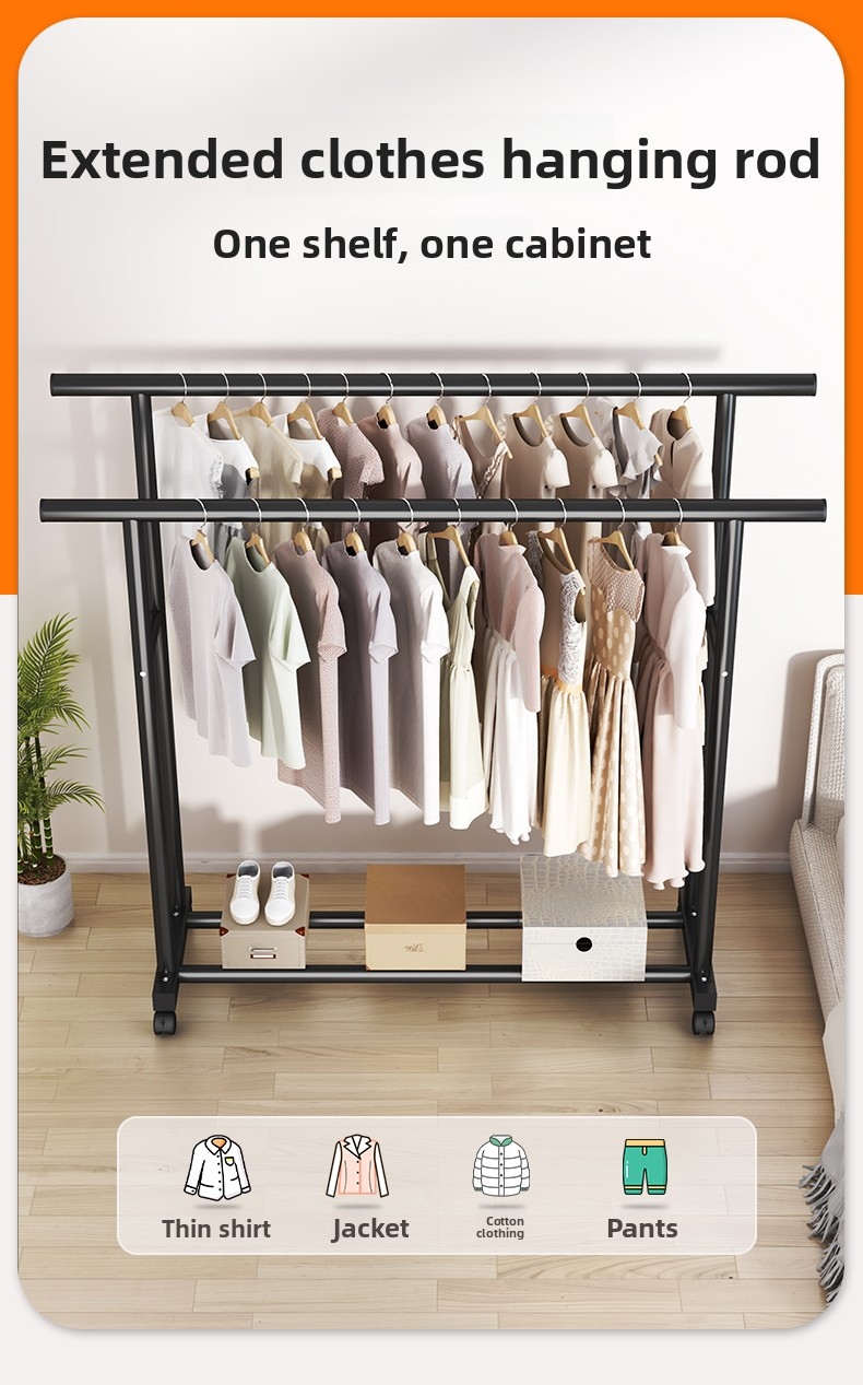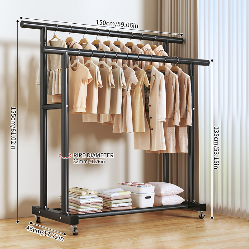 BF28H-32 Round Straight Rod Hanger Double Rod 1.5m Black+Caster