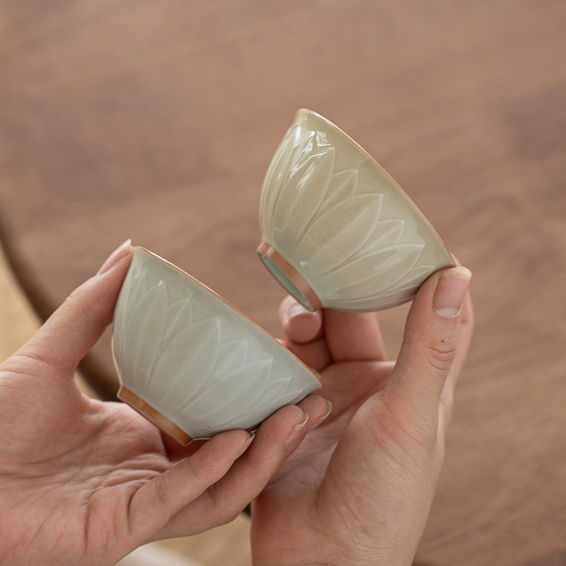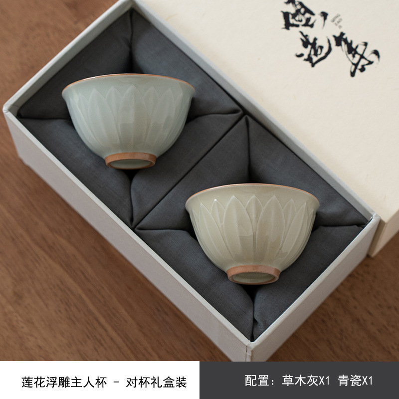 Color classification: antique brass embossed tea cup-lotus petal, grass gray embossed tea cup-lotus petal, antique brass embossed tea cup-gift box-lotus petal, grass gray embossed tea cup-gift box-lotus petal, embossed tea cup-pair Cup-lotus petal