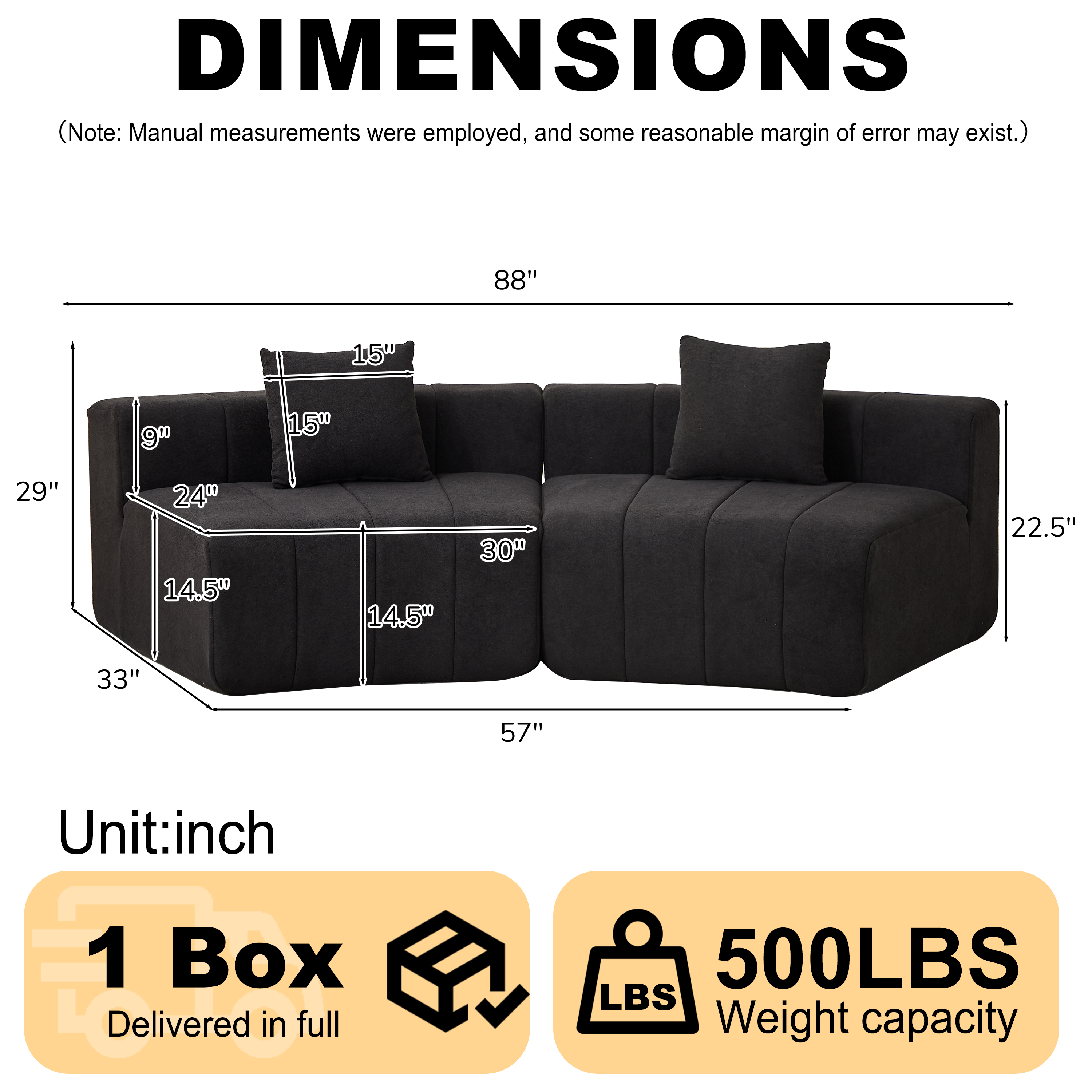 • No Assembly Required:The sofa is made entirely of foam and corduroy fabric.With our modular cloud sofa, you don't have to worry about installing furniture anymore. Simply unpack all the pieces and enhance their elasticity by patting and organizing them. Full recovery may take up to 72 hours or so. Enjoy the easy nirvana of no assembly required!