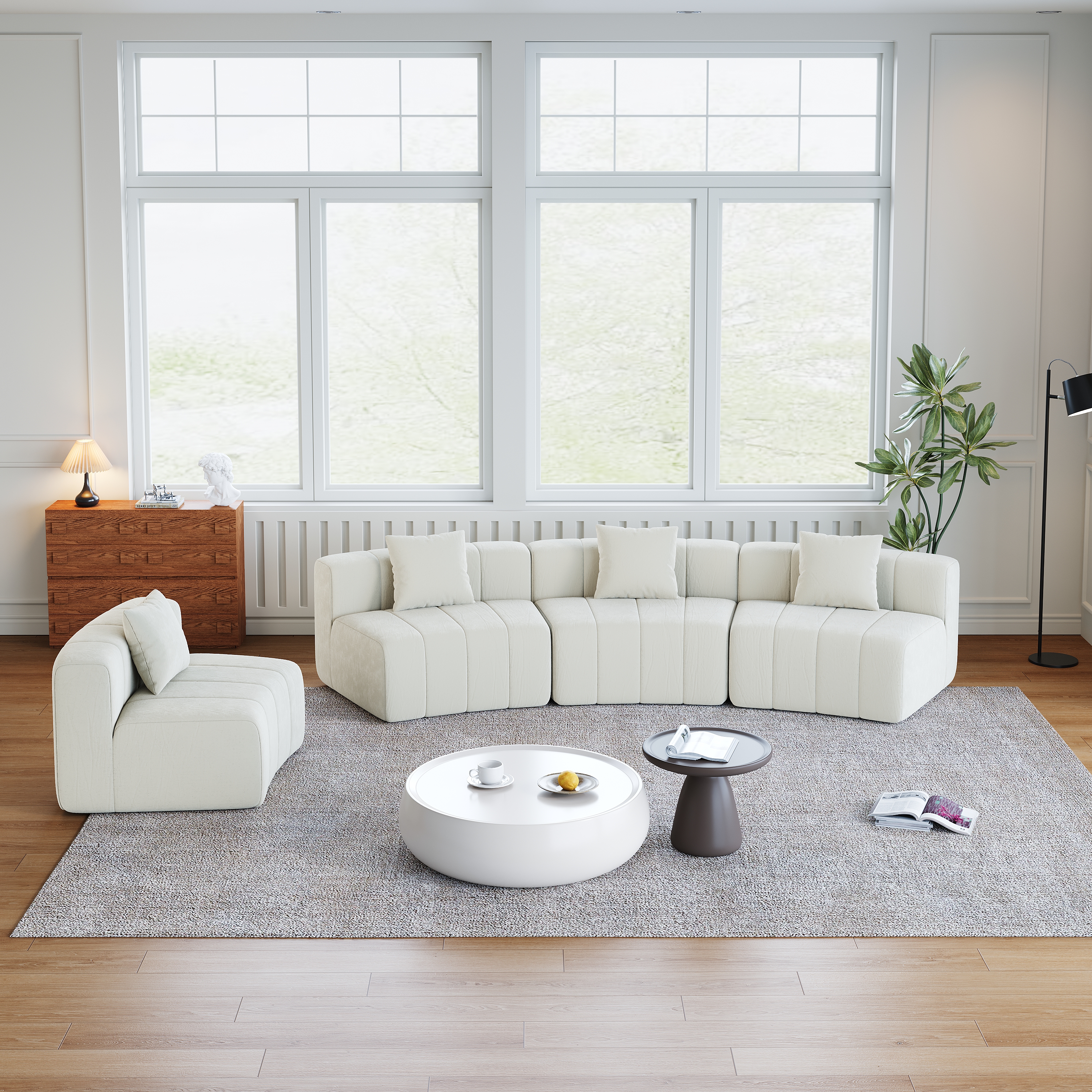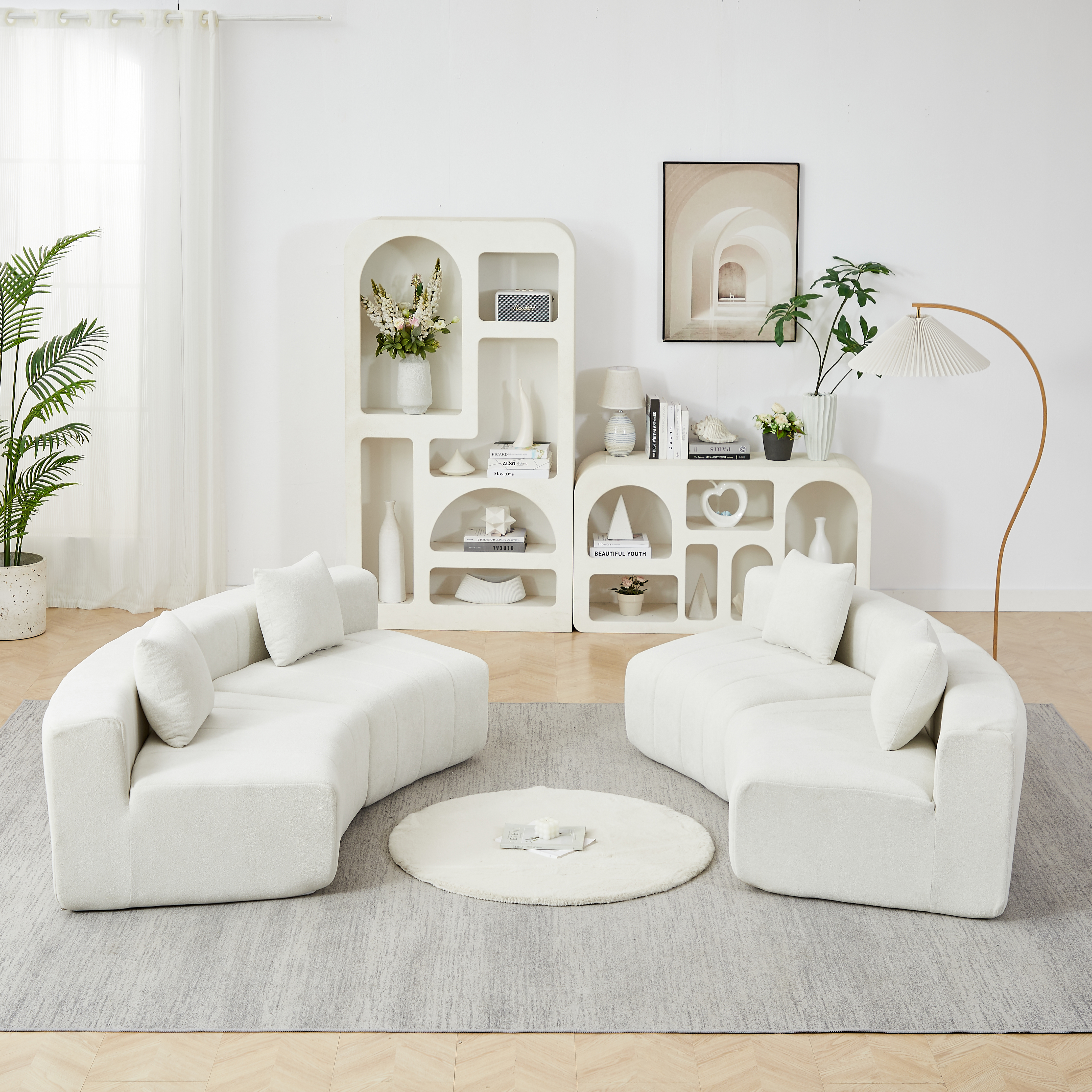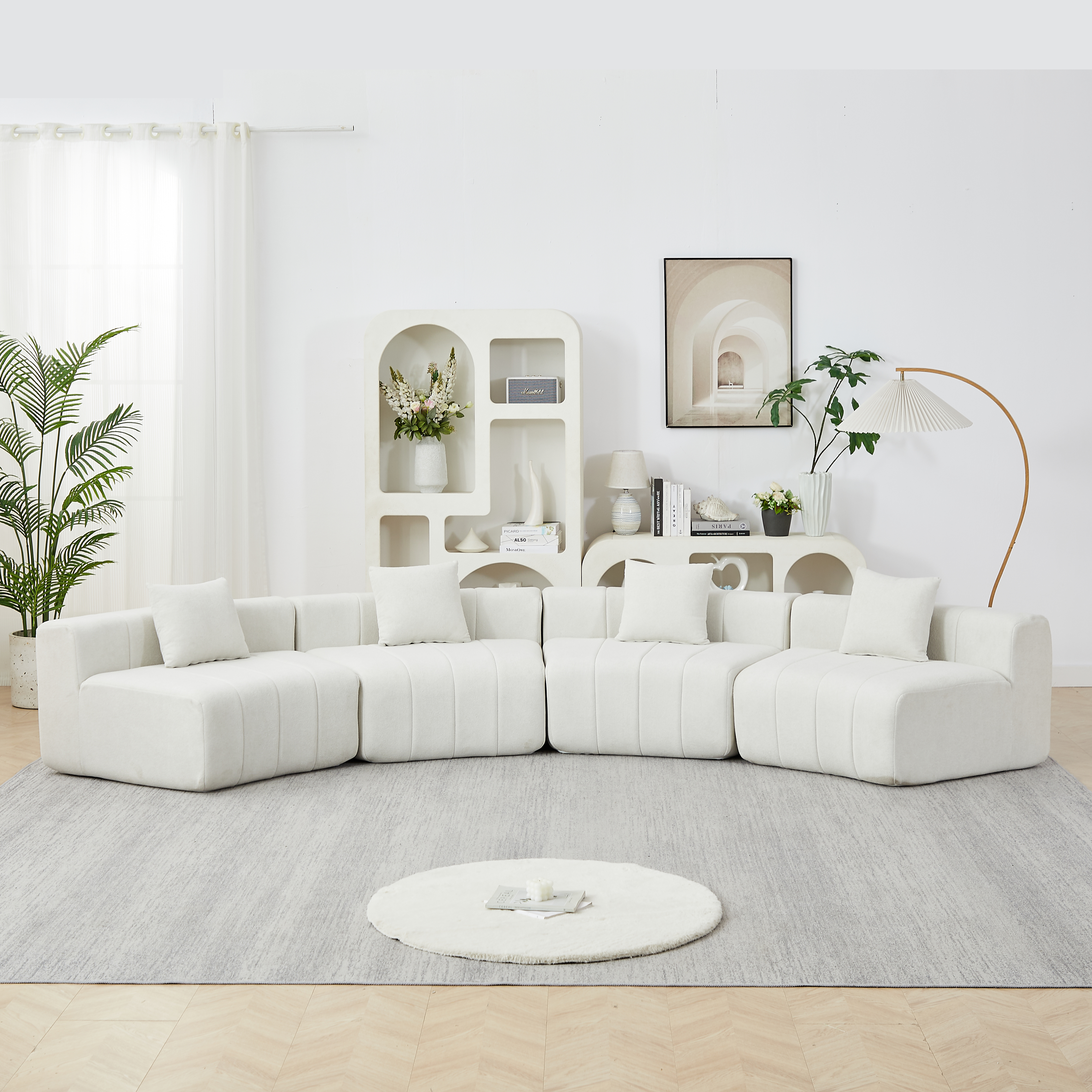 Product Name:Chenille curved sectional sofa with 4 pillows,Curved Symmetrical Modular Semi Circular Sofa Sectional for bedroom, living room, office for leisure or nap, reading room, and lobby