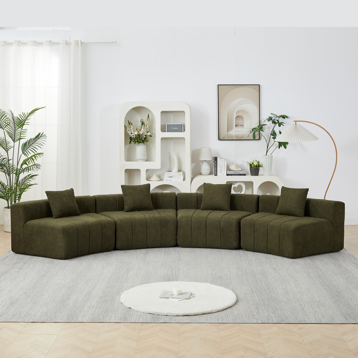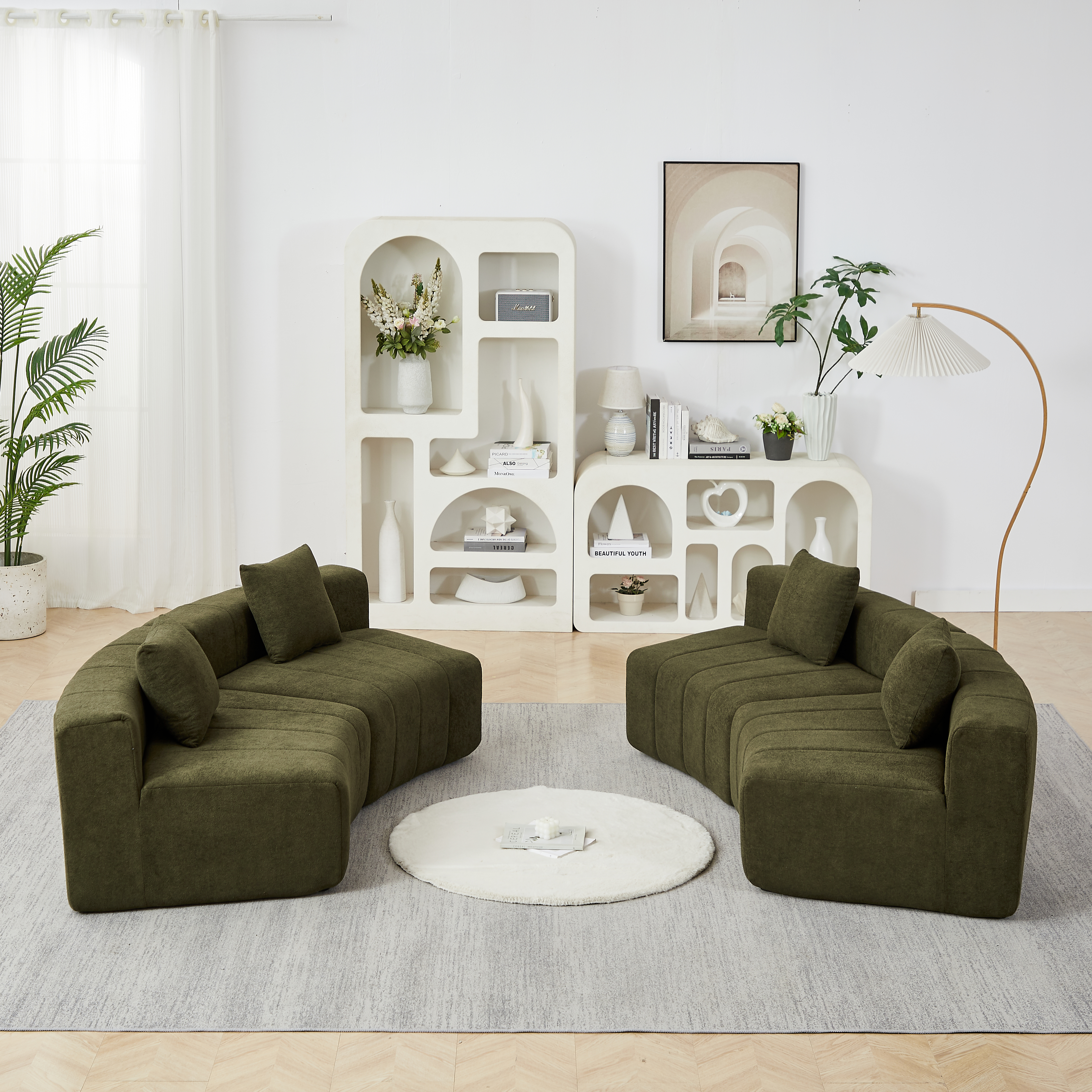 Product Name:Chenille curved sectional sofa with 4 pillows,Curved Symmetrical Modular Semi Circular Sofa Sectional for bedroom, living room, office for leisure or nap, reading room, and lobby