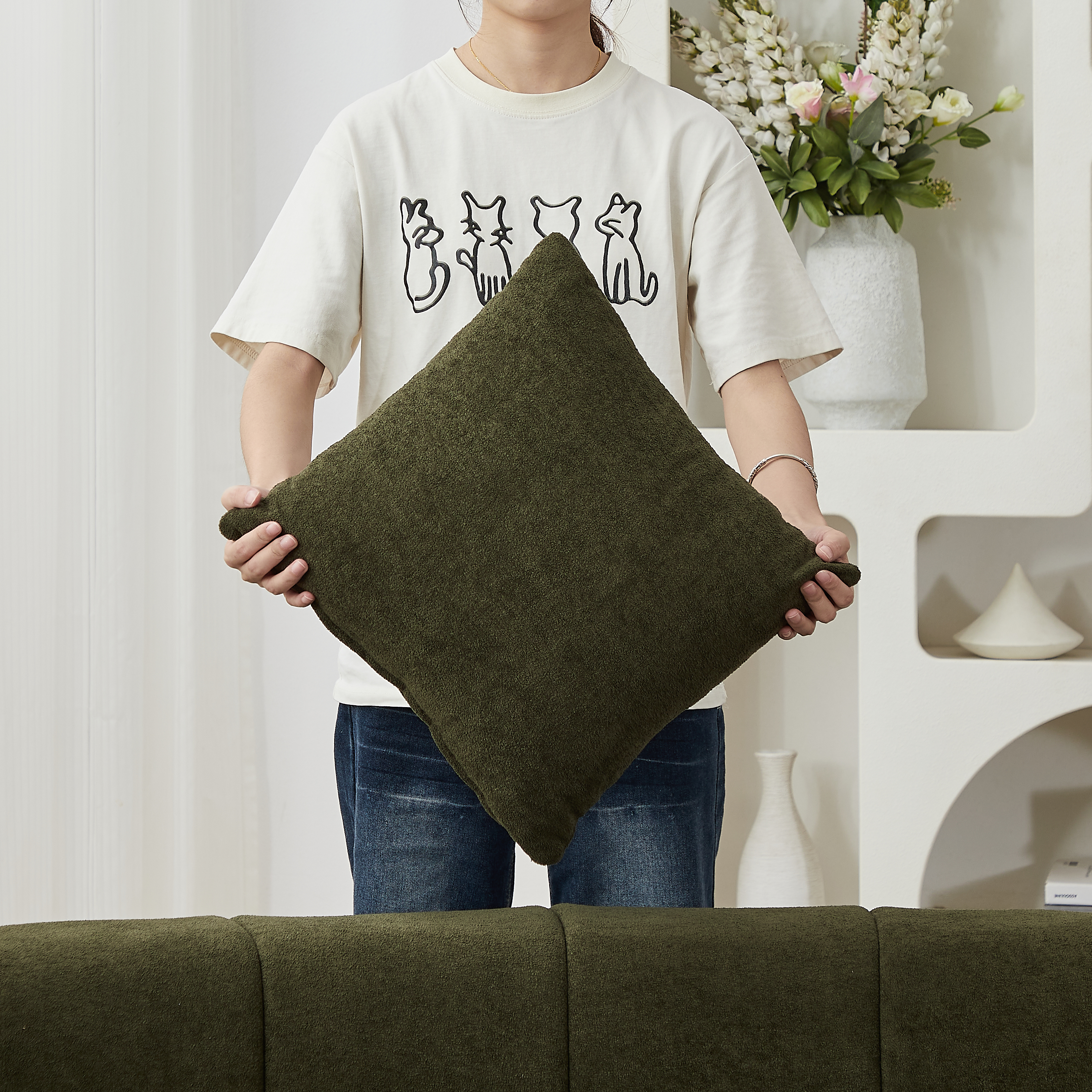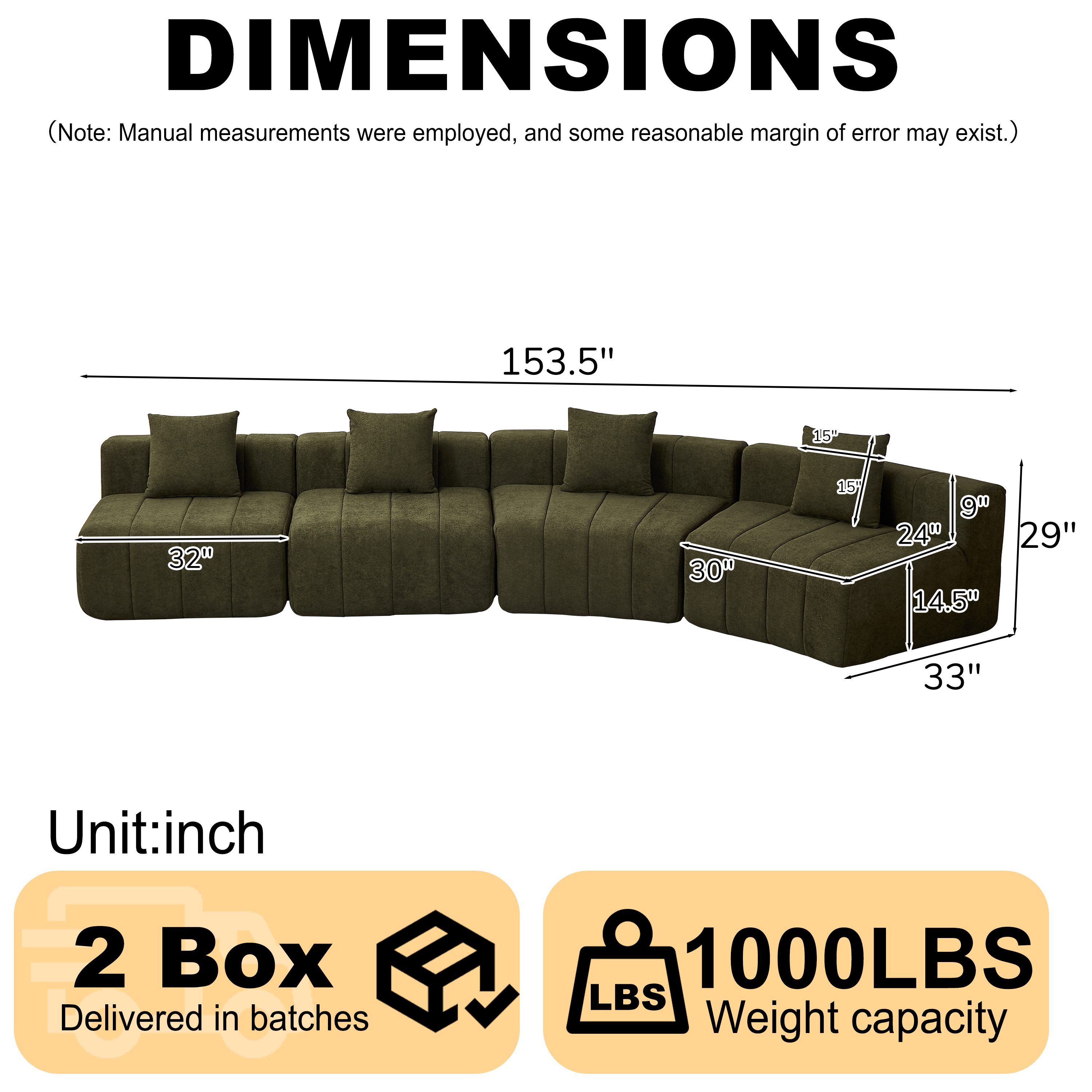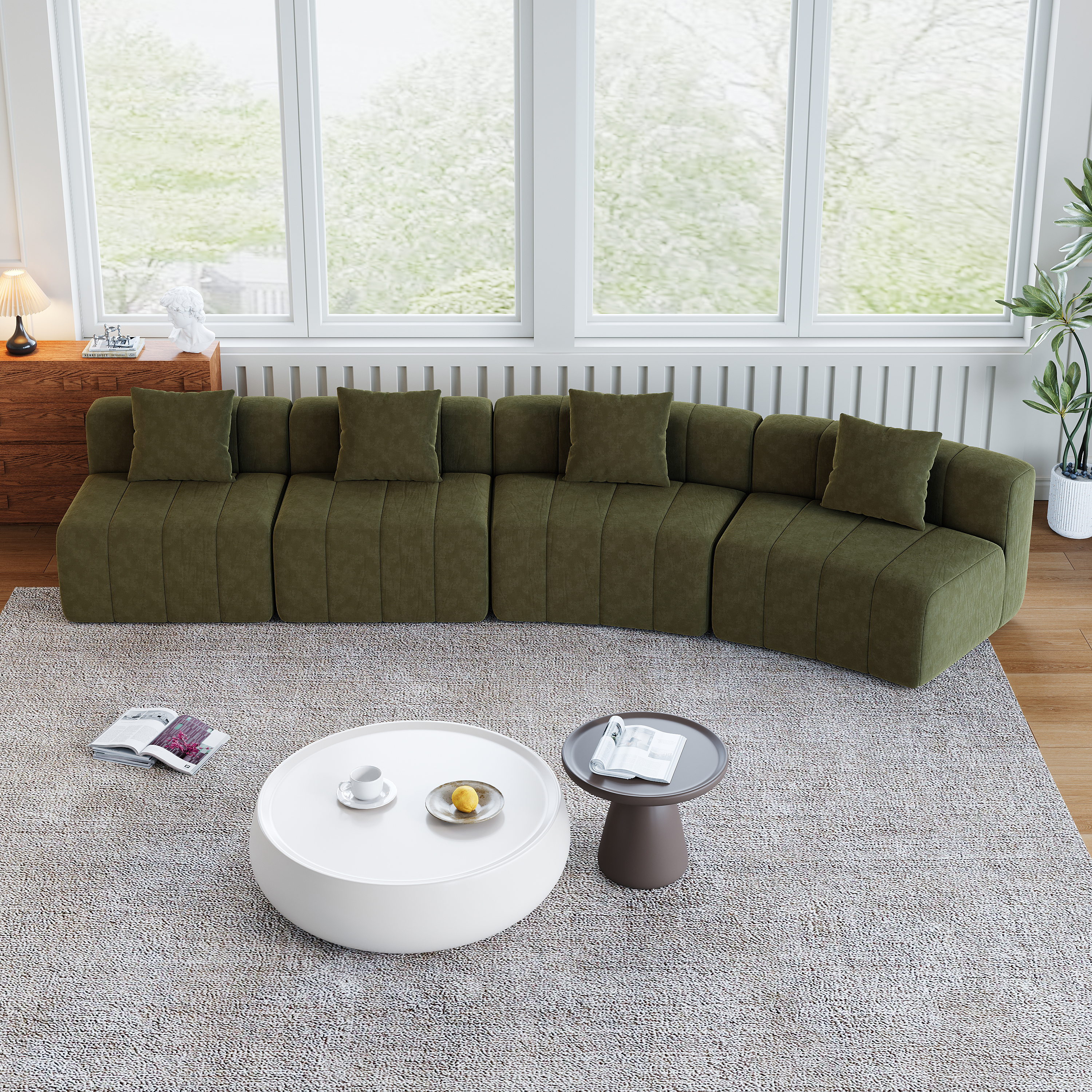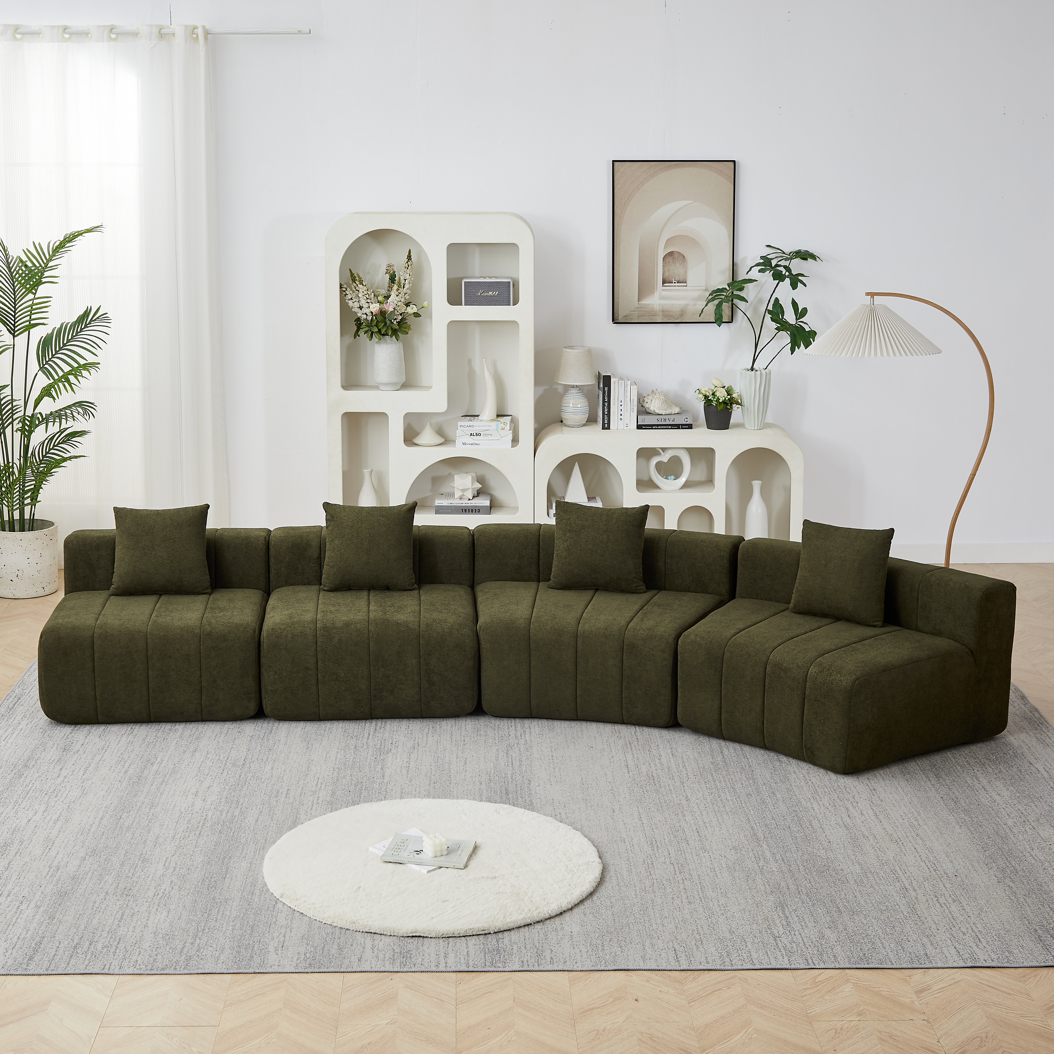 Product Name:Chenille curved sectional sofa with 4 pillows,Curved Symmetrical Modular Sofa Sectional ,Two curved seats and two single seats,Two curved seats and two single seats