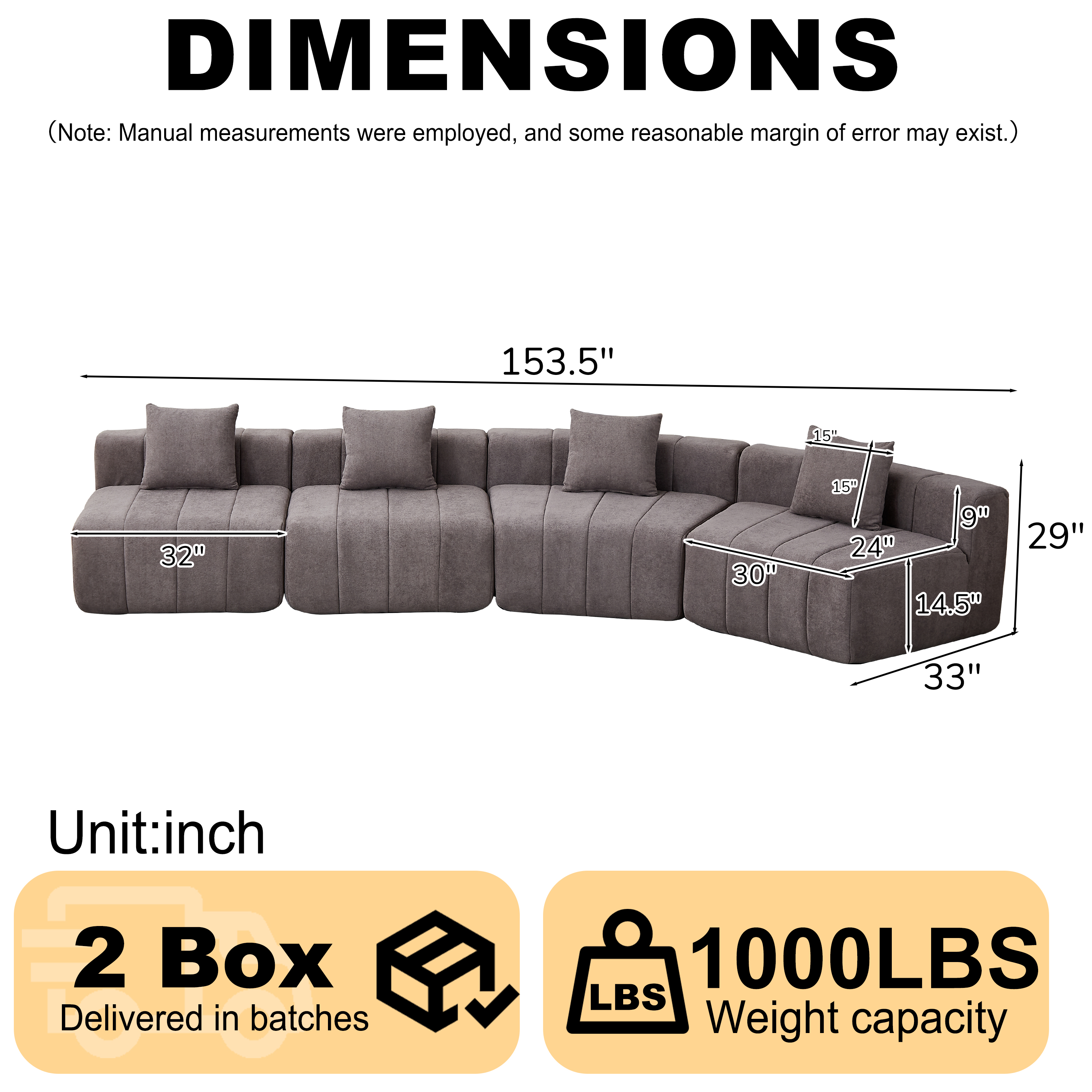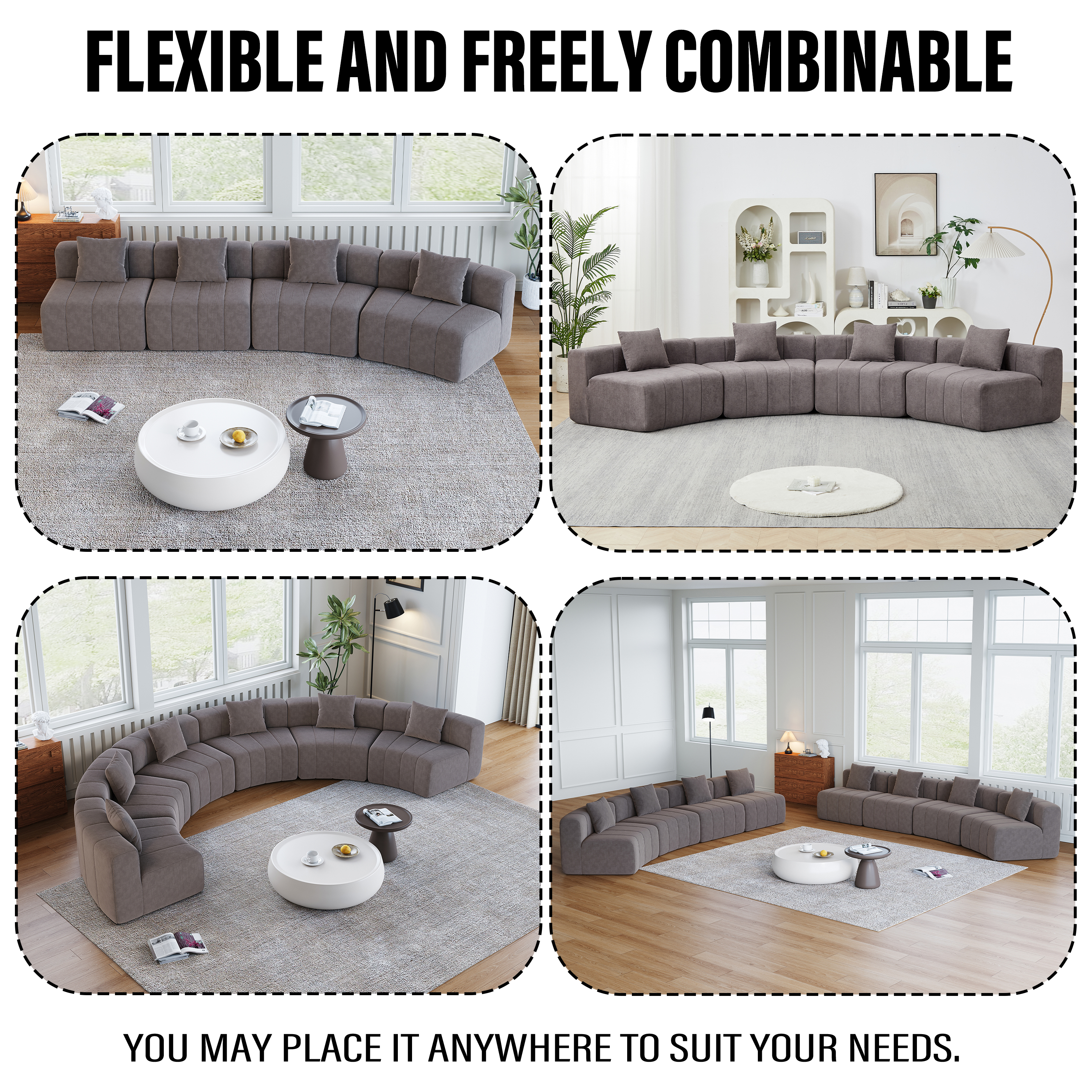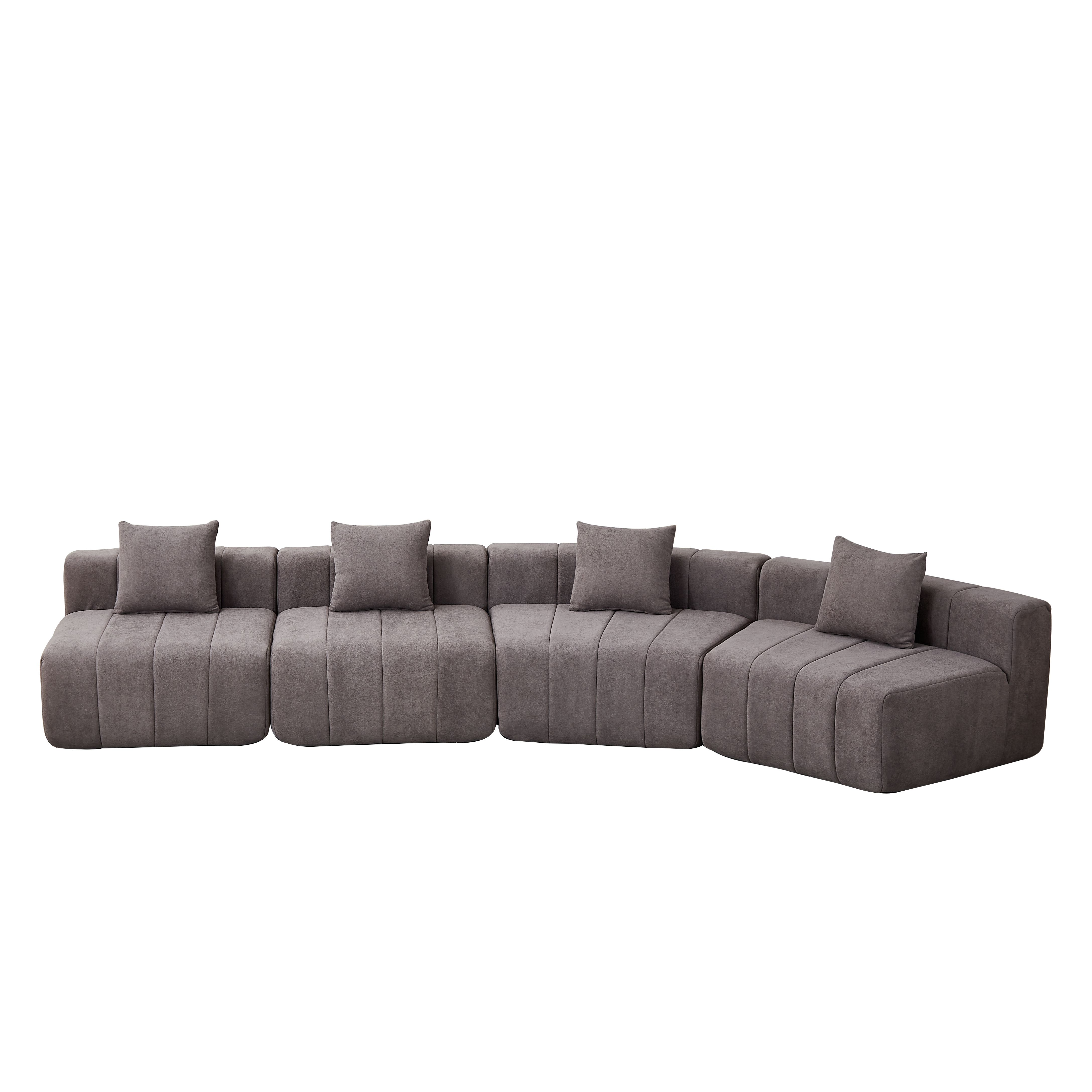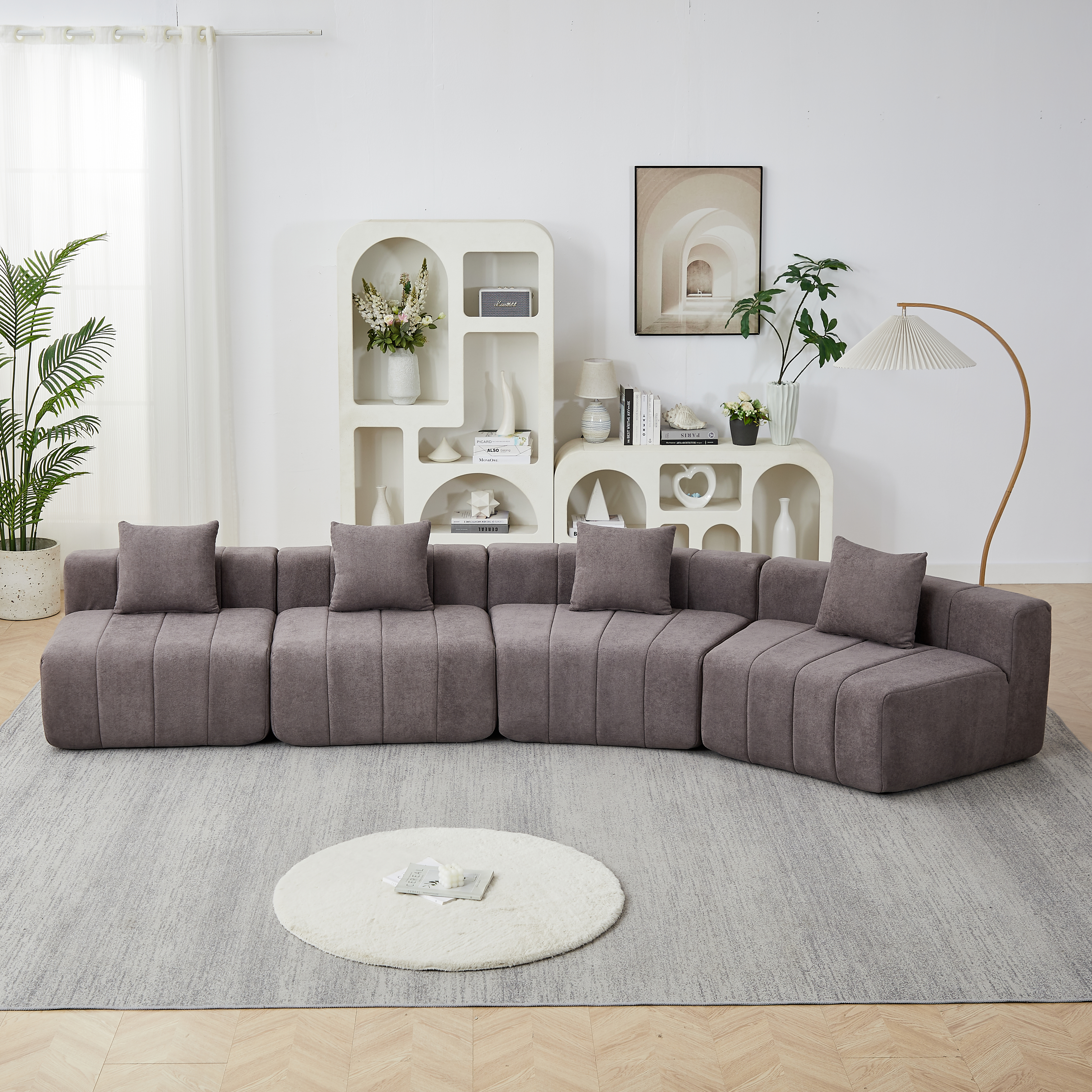 Chenille Curved Sectional Sofa With 4 Pillows,Curved Symmetrical Modular Sofa Sectional ,Two Curved Seats And Two Single Seats,Two Curved Seats And Two Single Seats