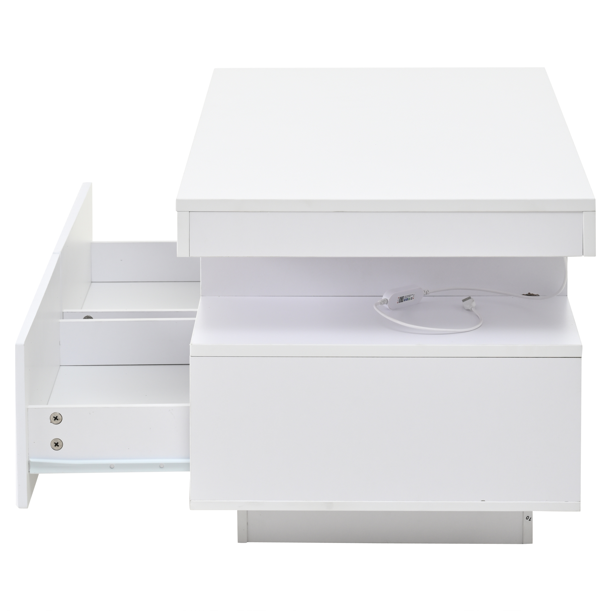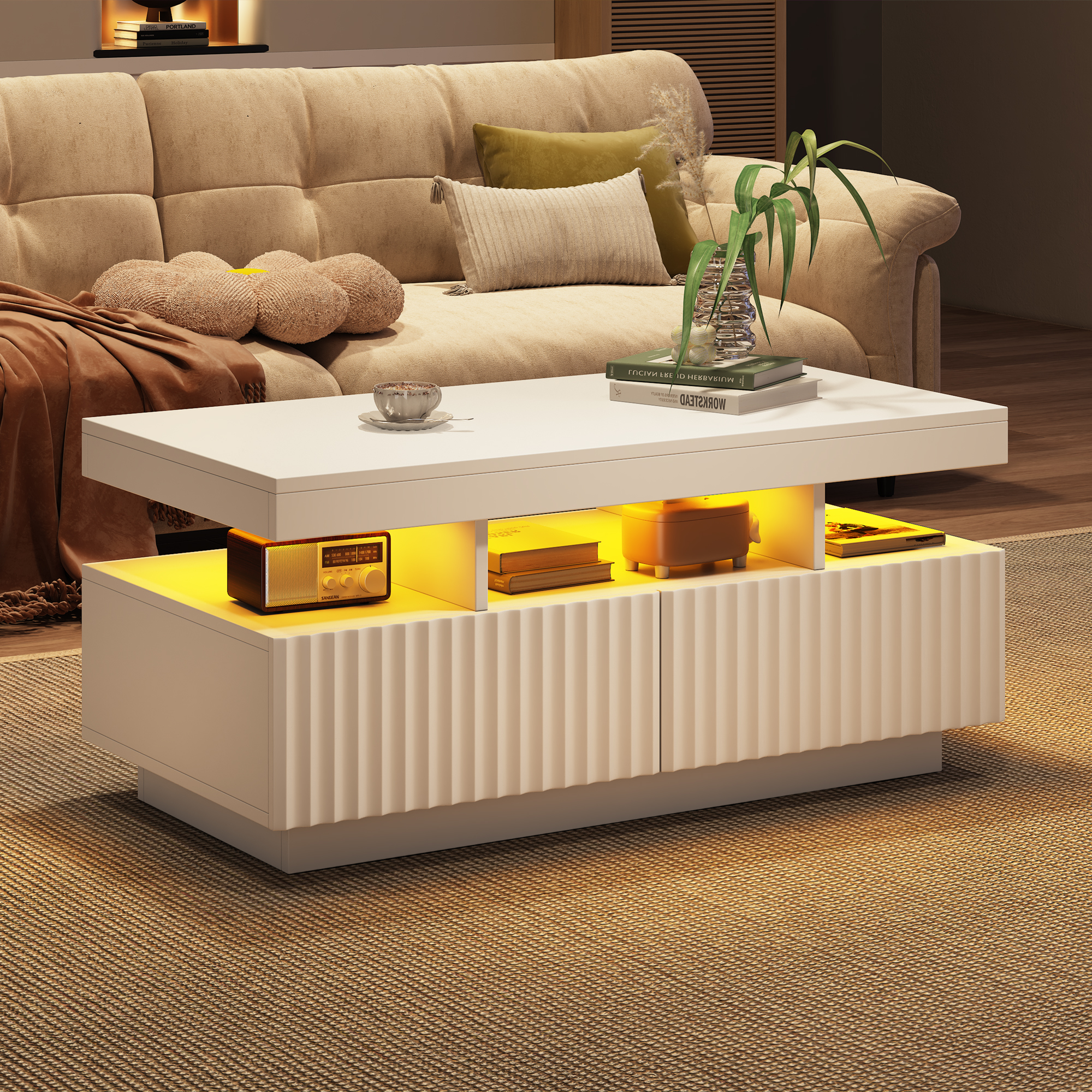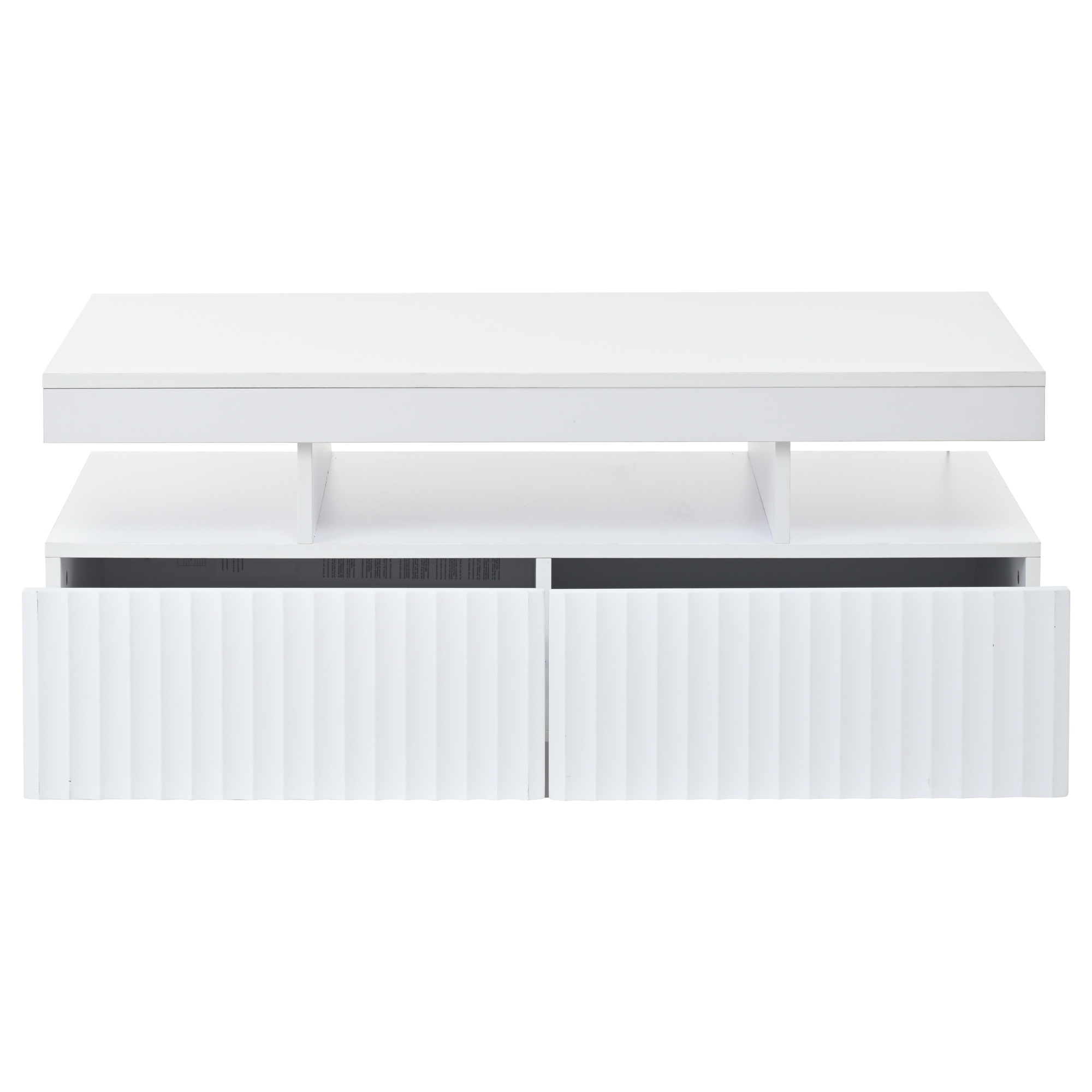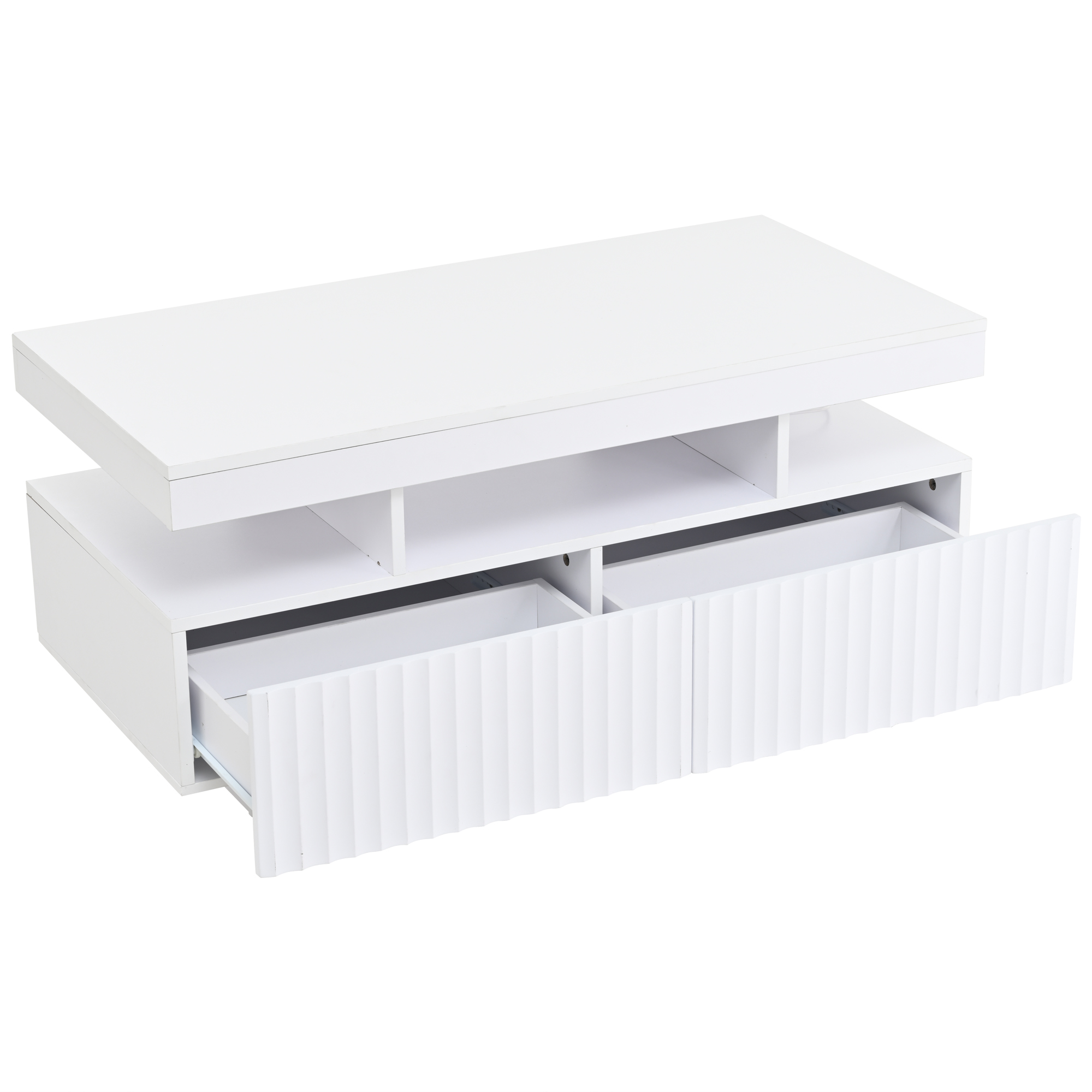 Product Name:Coffee Table with LED lights, 2drawers, Ribbed Decorative Centre Table, Sofa Side Table, Rectangle Coffee End Table for Living Room, Office, 100*50*45cm, white, Particleboard
