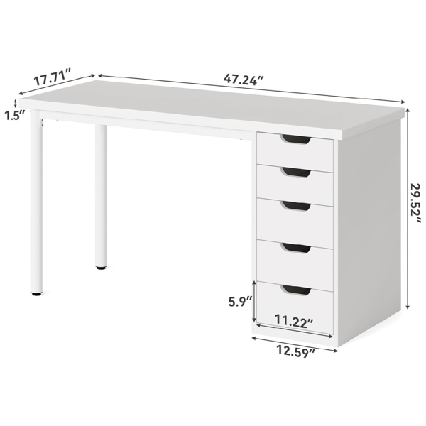 Functional Design - The desk features five white drawers with smooth, metal rail systems for an organized workspace.