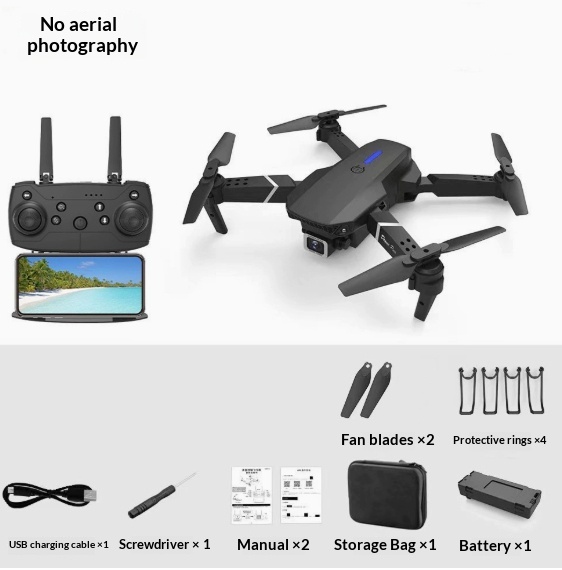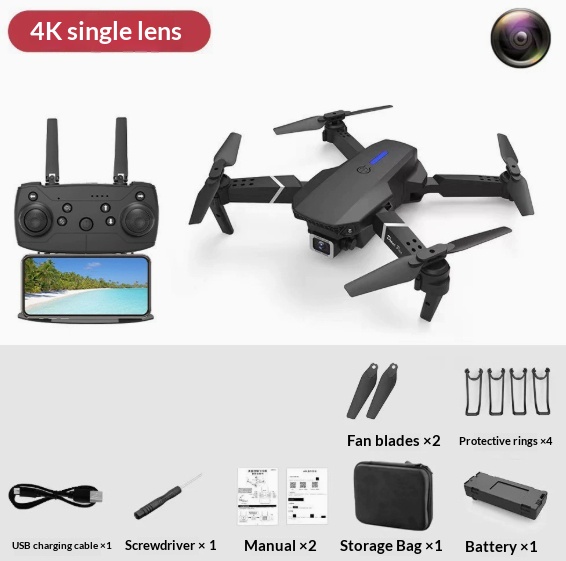 Function: Up/down, Forward/backward, Turn left/right, Sideward flight, 3-level flight speed, LED Light, Headless Mode, One Key Automatic Return, Altitude Hold Mode, WiFi FPV, Trajectory Flight, Camera/Video