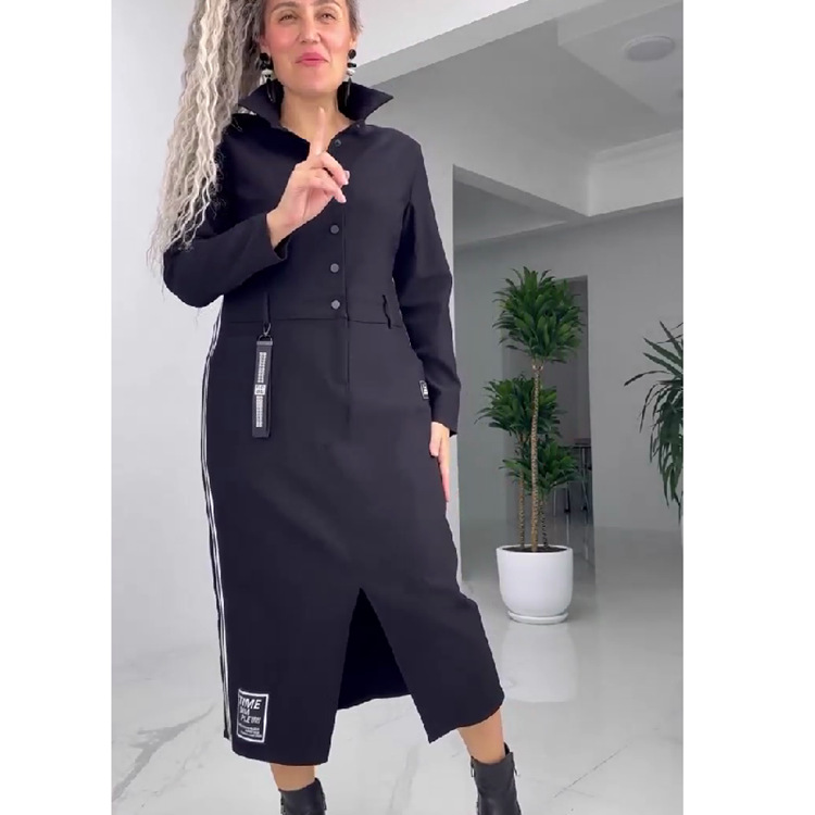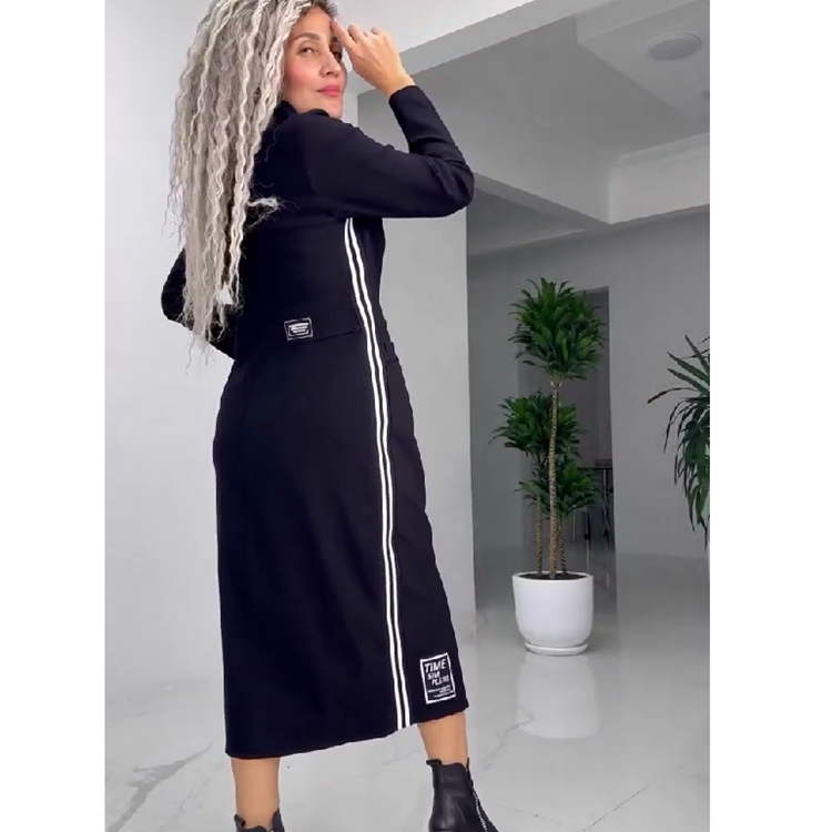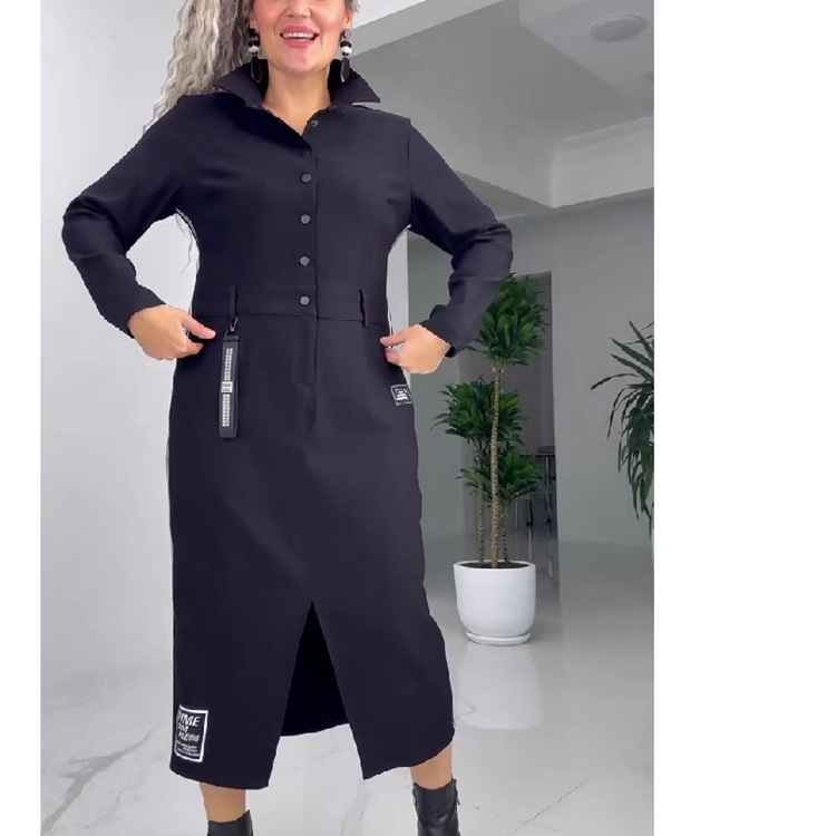 European And American Leisure Fashion Solid Color Long Sleeve Dress
