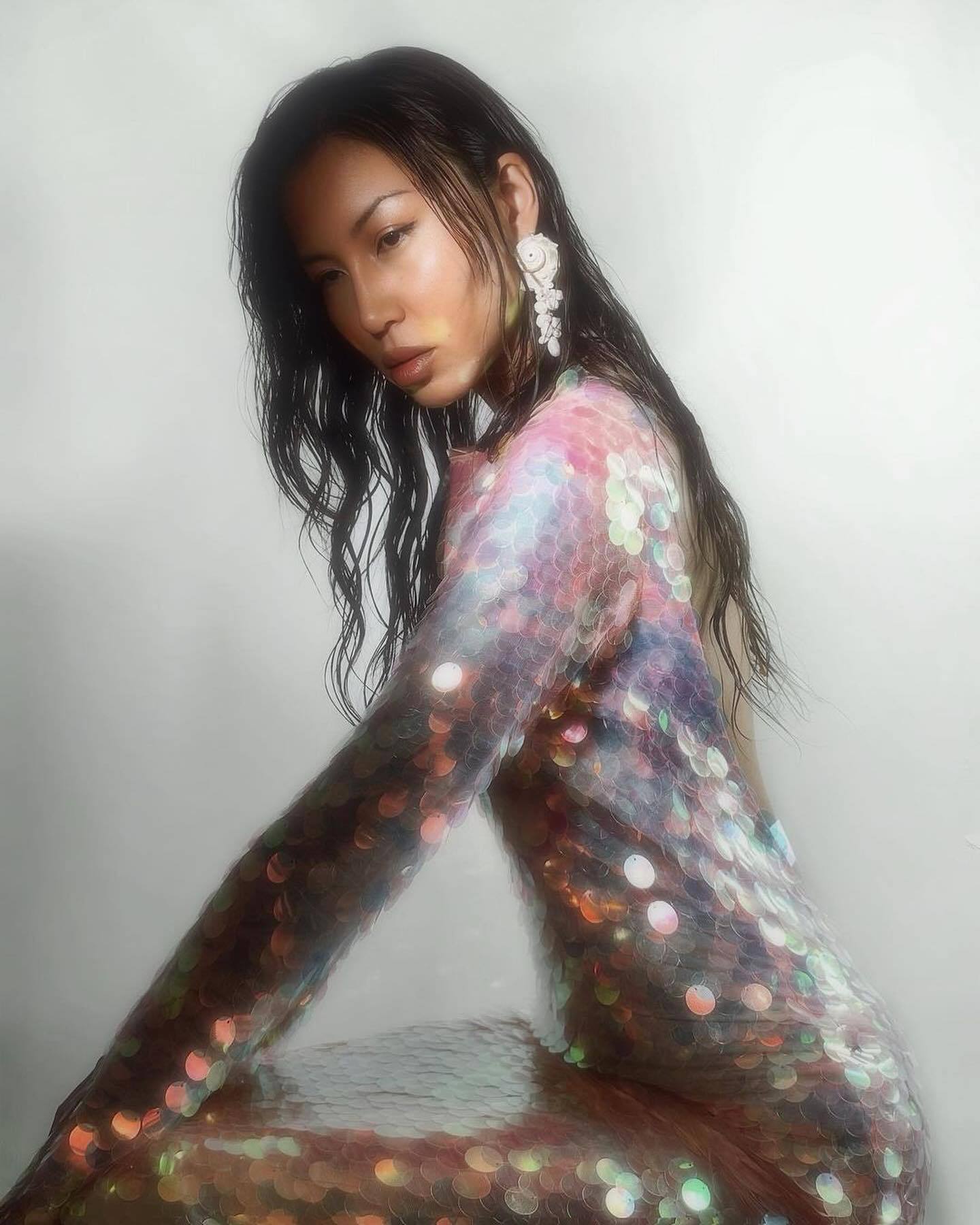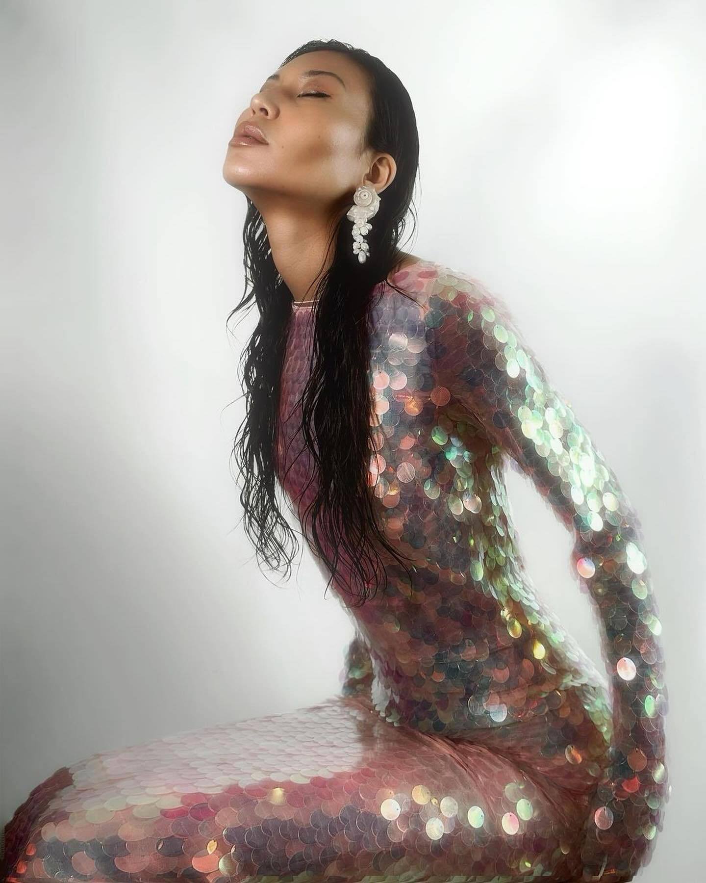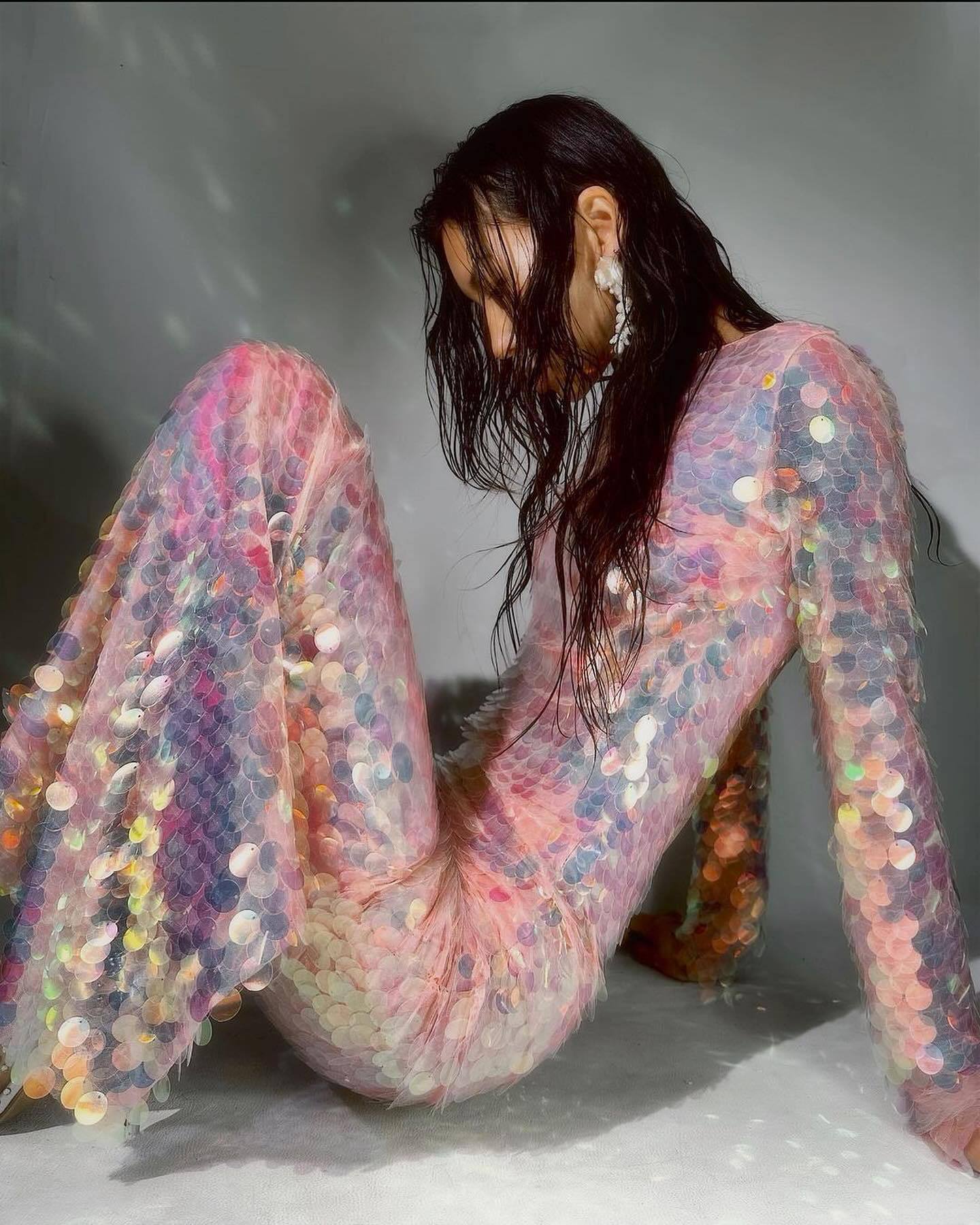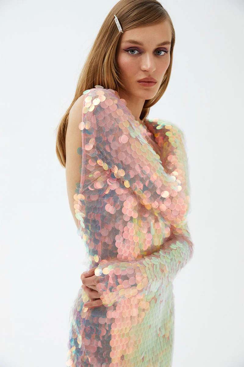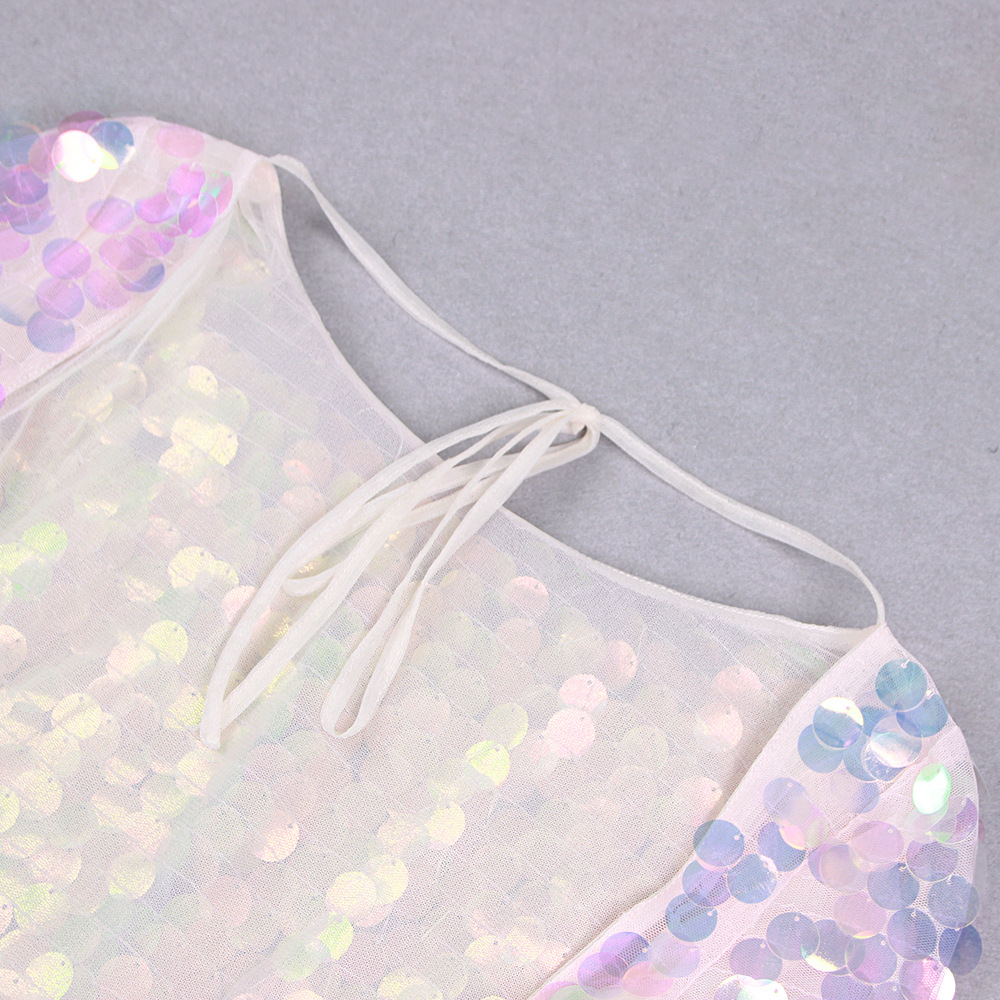 Fashion Elegant Sexy Backless Mesh Sequined Long Sleeve Long