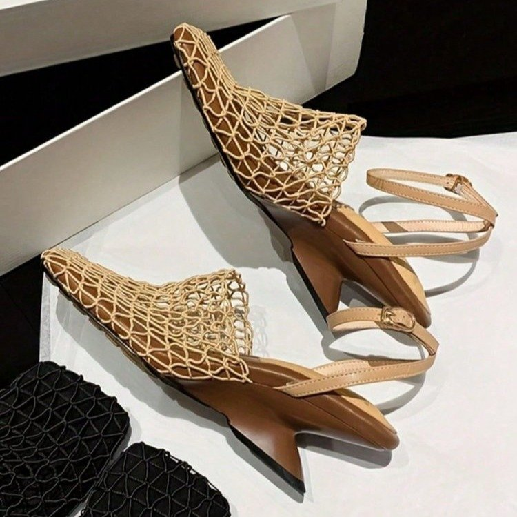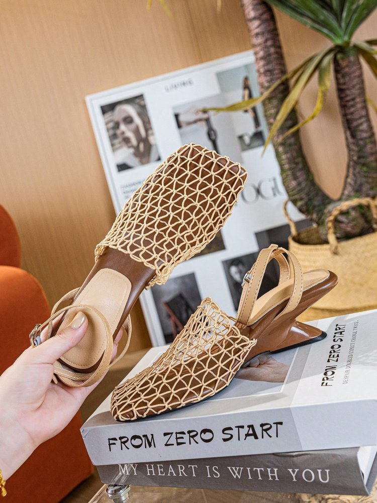 Elevate your summer style with these unique designer woven mesh wedge sandals. Featuring a vintage square toe, a breathable fishnet hollow upper, and a sleek wedge heel, these backless one-strap sandals blend retro charm with modern edge. Perfect for adding a statement-making touch to beach outings, weekend brunches, or casual street-style looks.