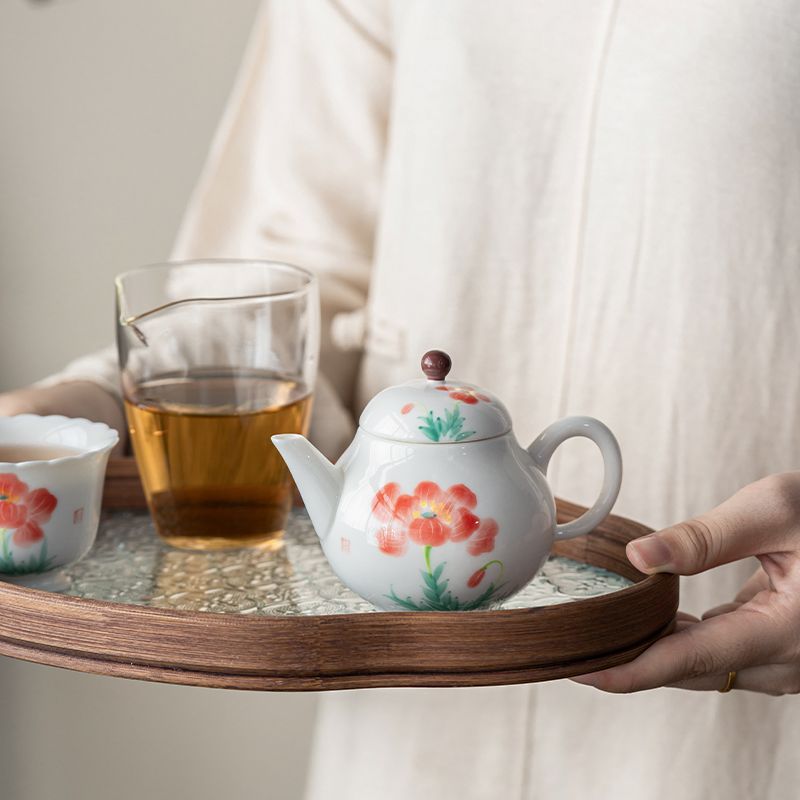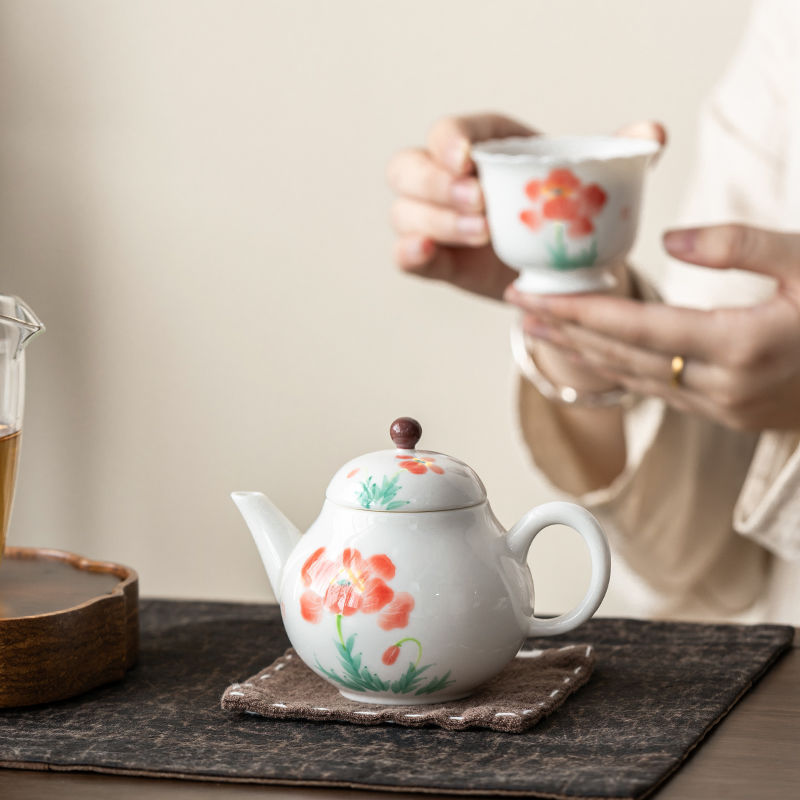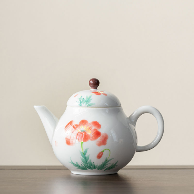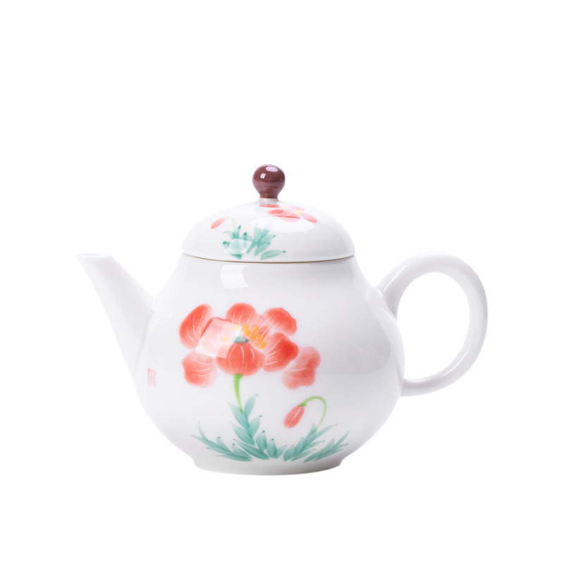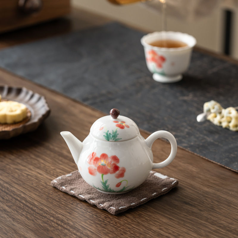 Color: white porcelain hand drawn hibiscus rose teapot