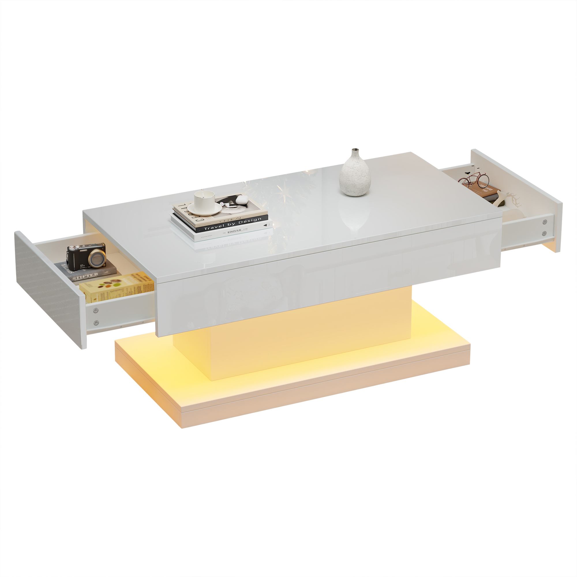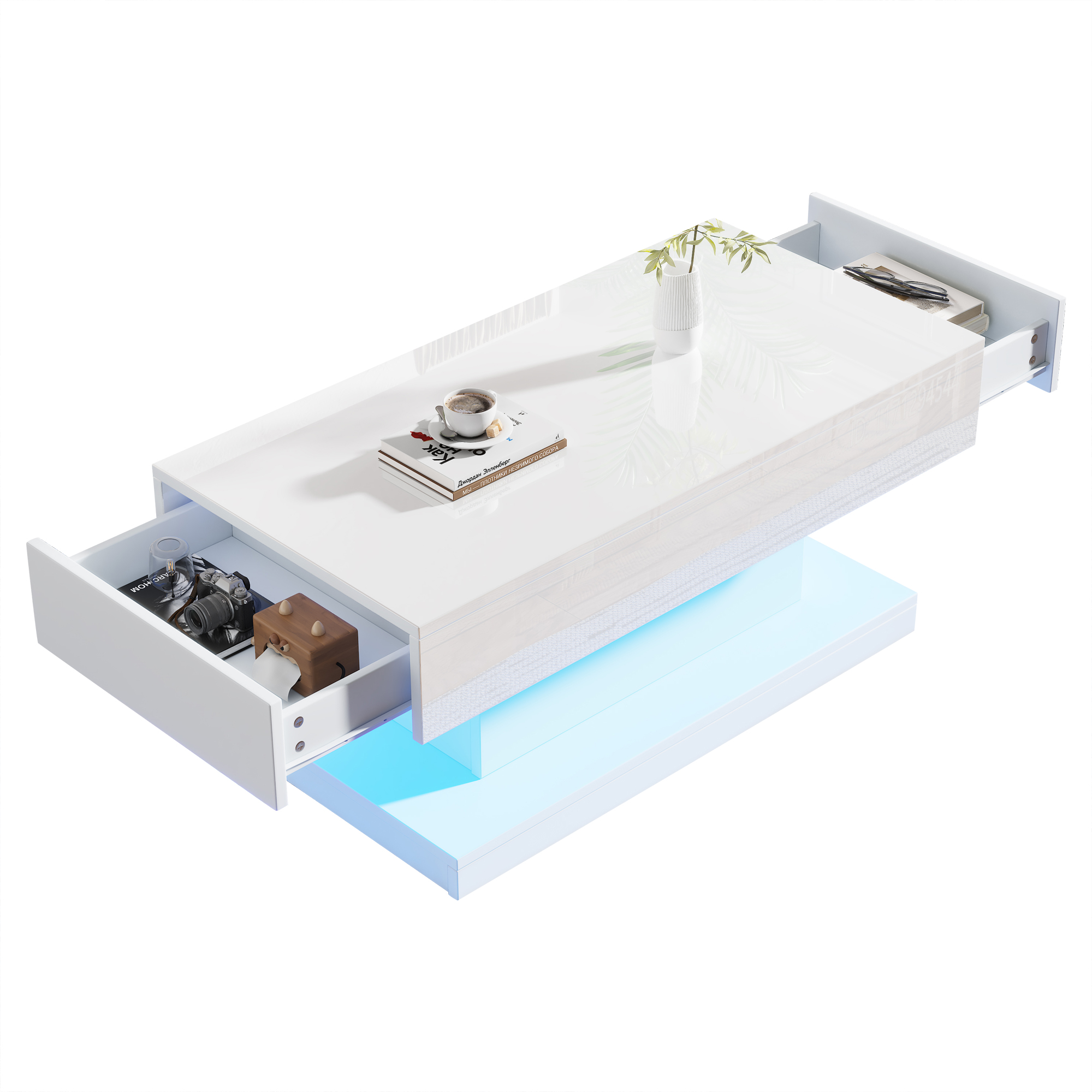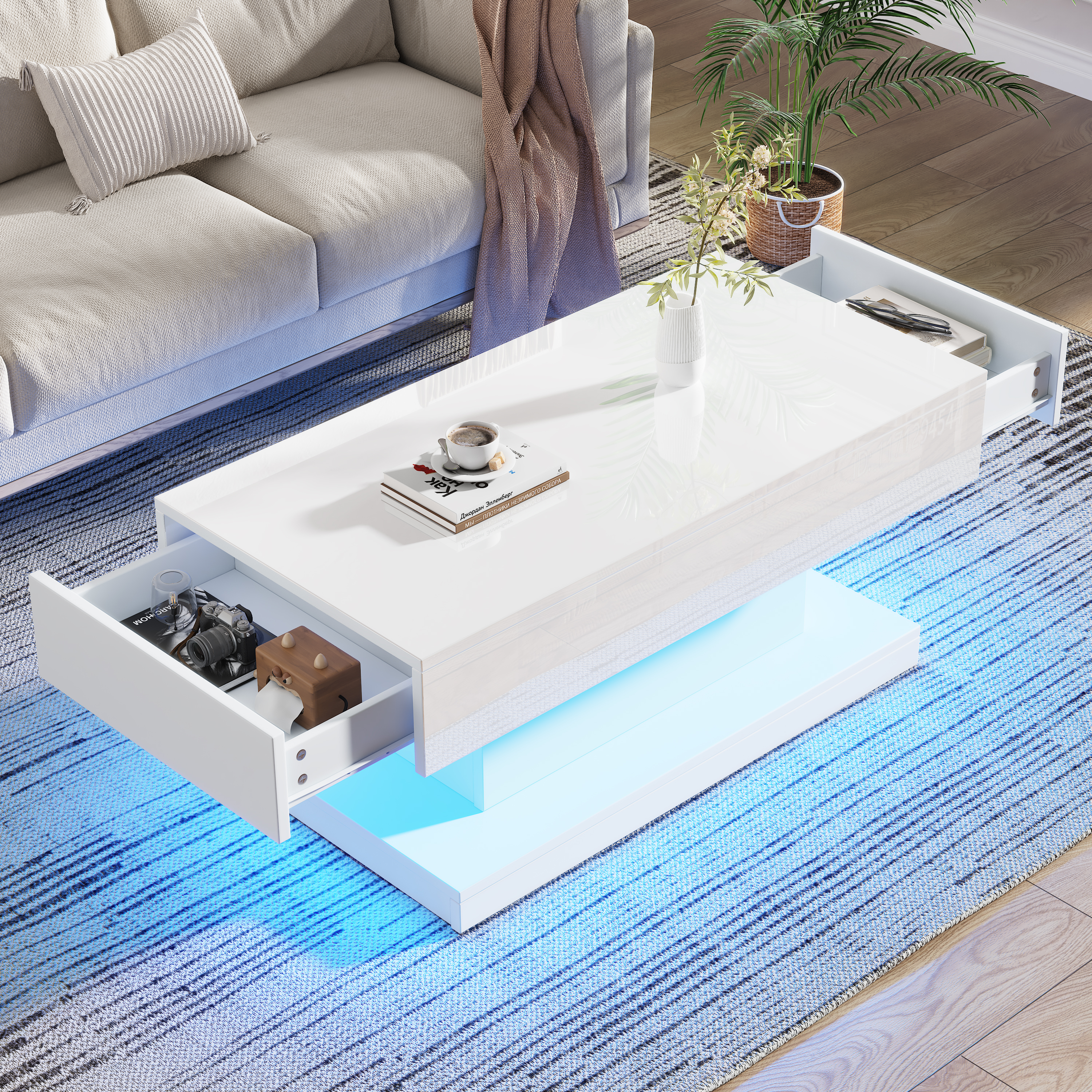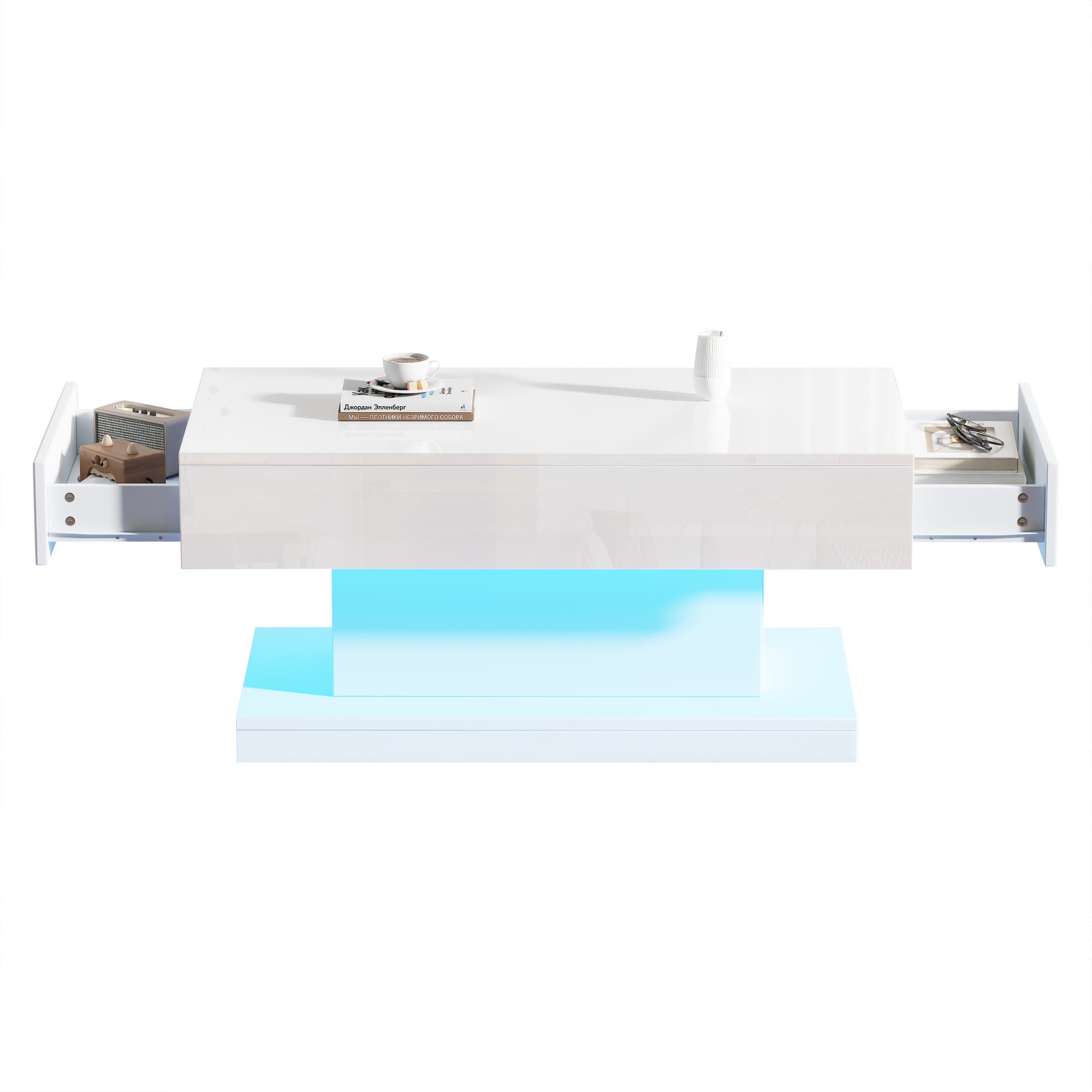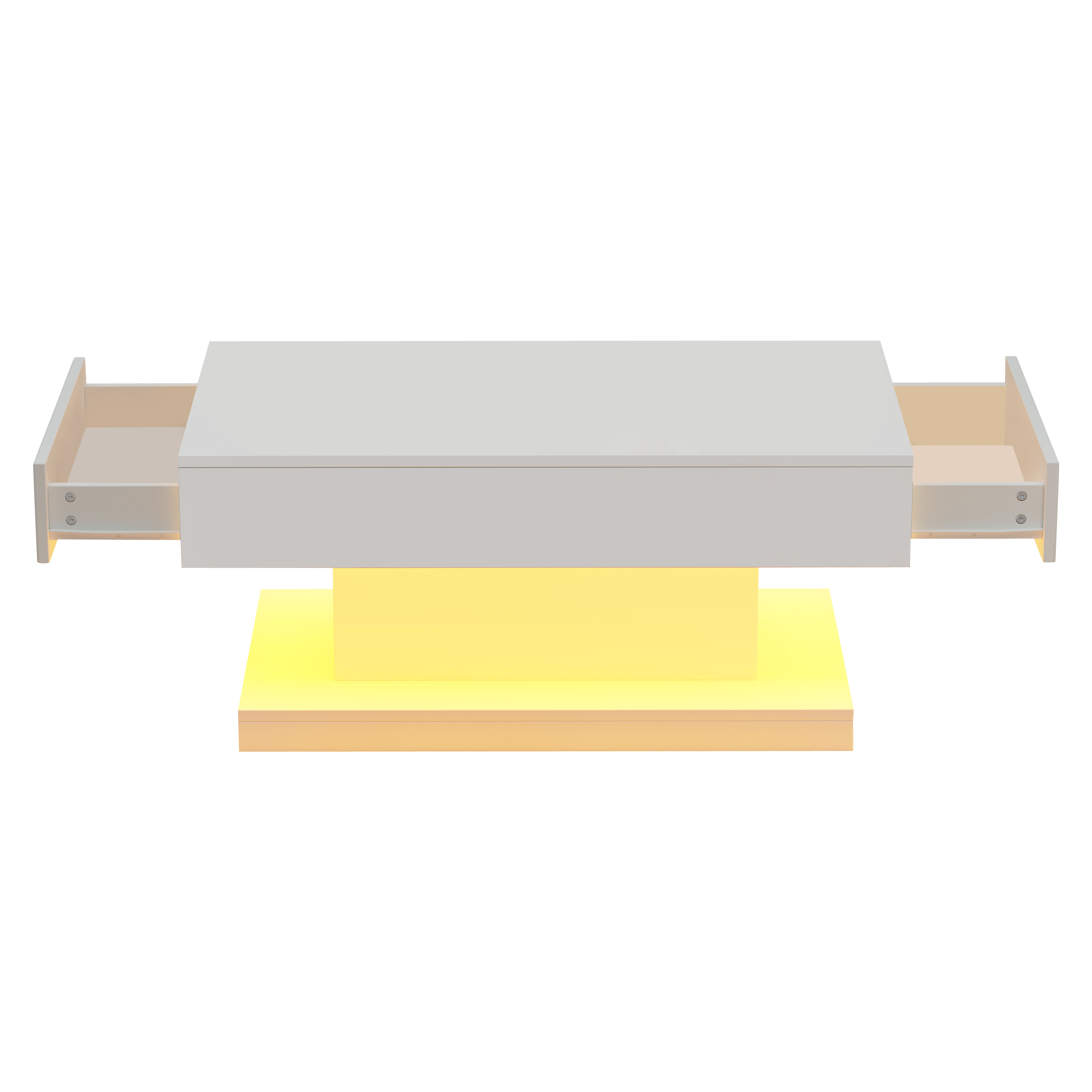 Product Name:High-gloss Coffee Table with 2 drawers, LED lights, Modern Centre Table, Sofa Side Table, Tea Table for Living Room, Office, 100*50*45cm, White