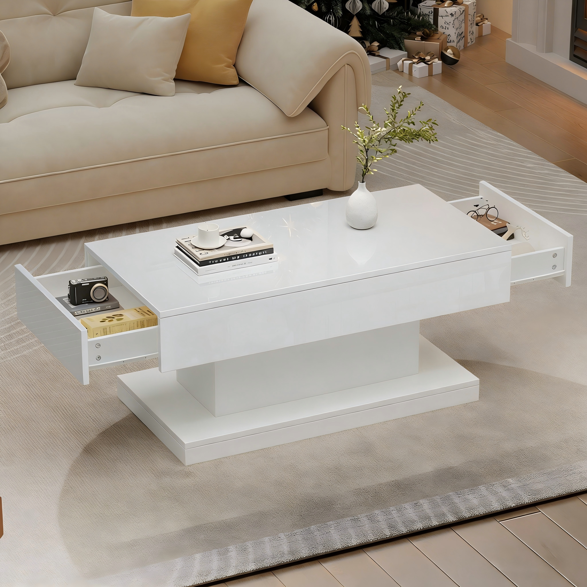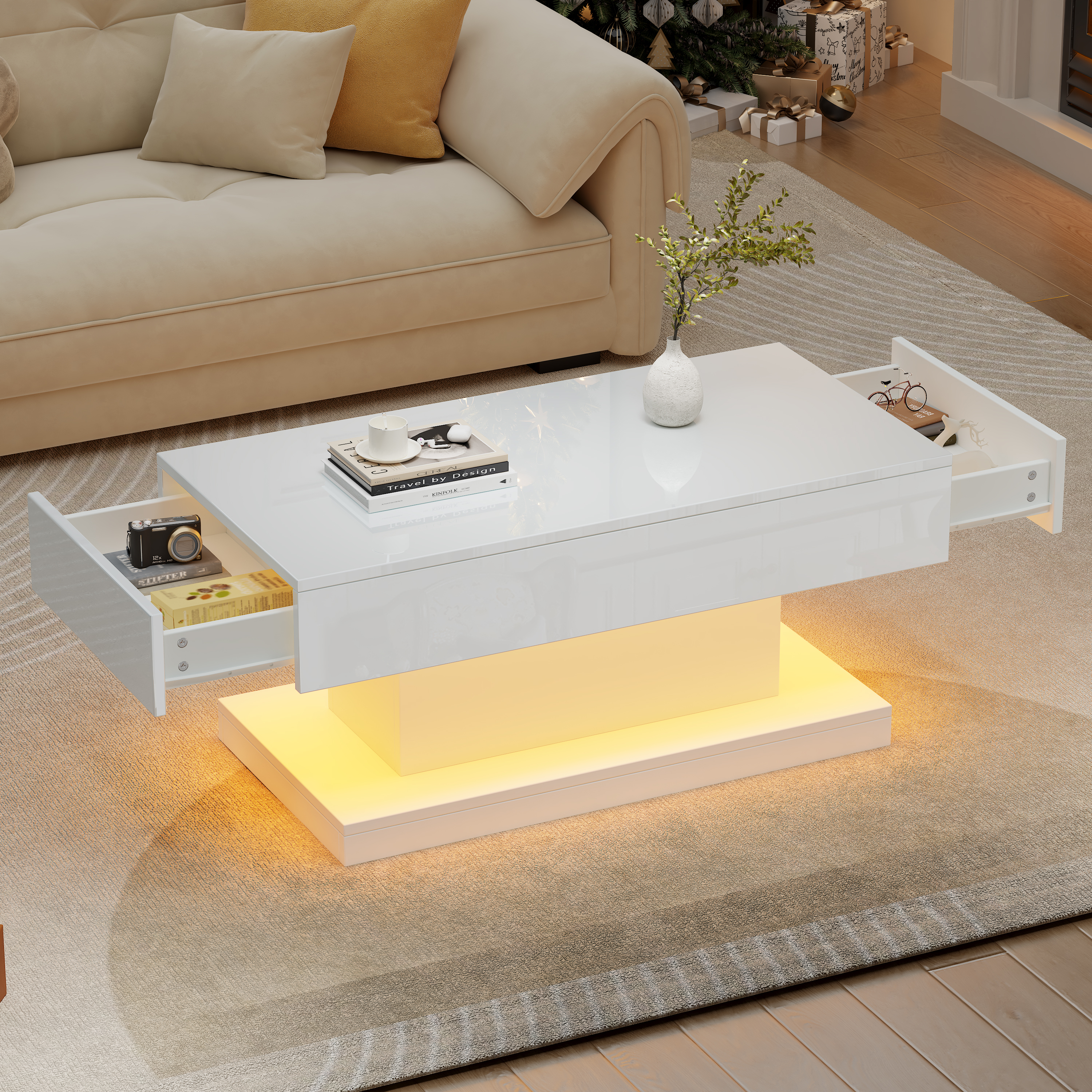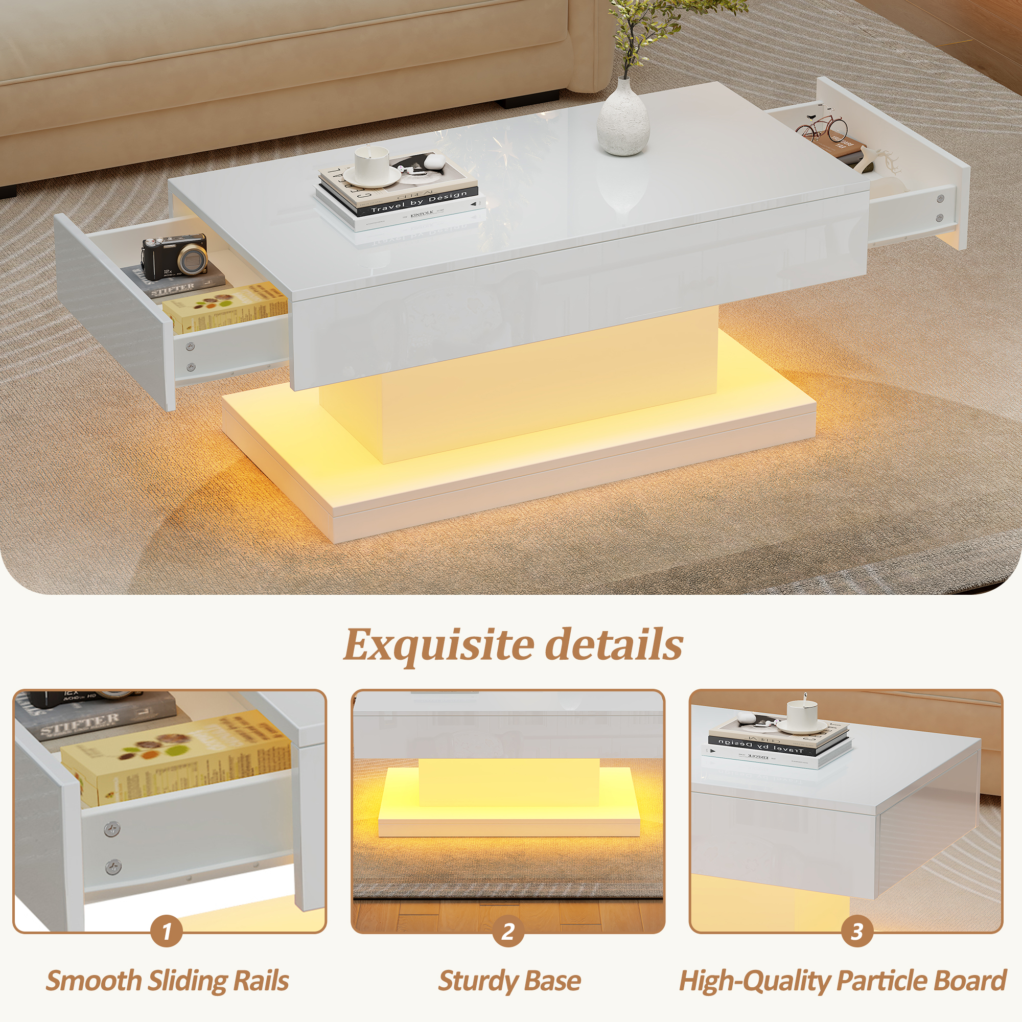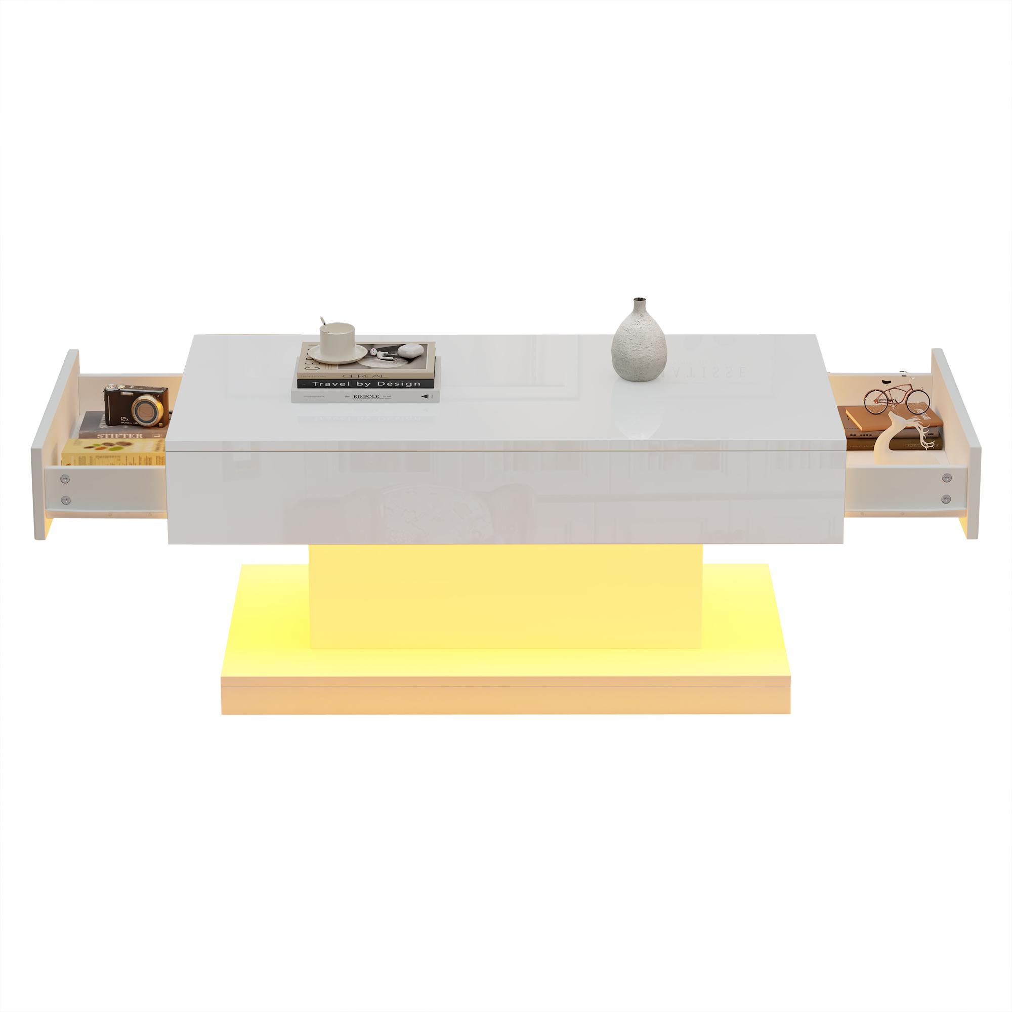 Product Name:High-gloss Coffee Table with 2 drawers, LED lights, Modern Centre Table, Sofa Side Table, Tea Table for Living Room, Office, 100*50*45cm, White