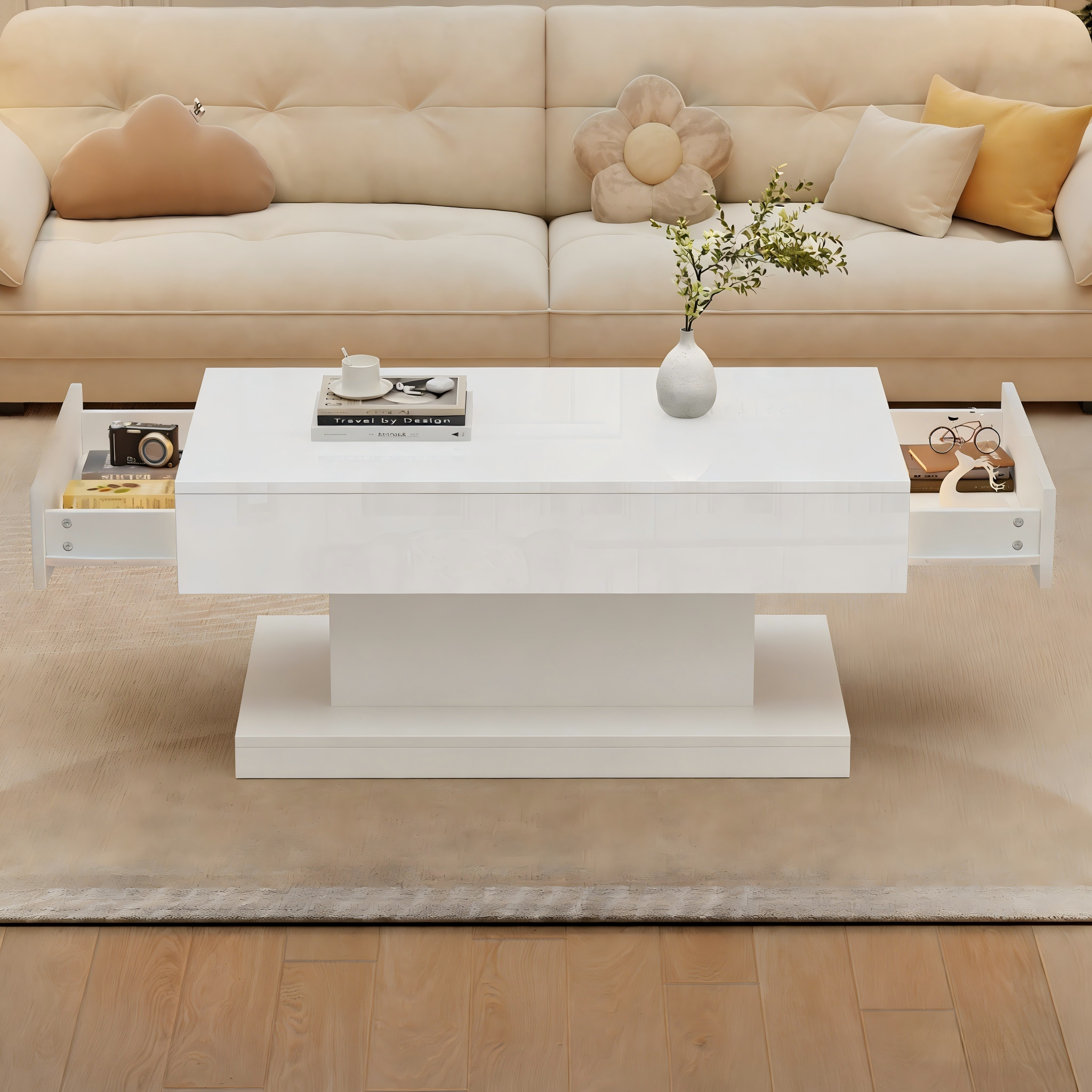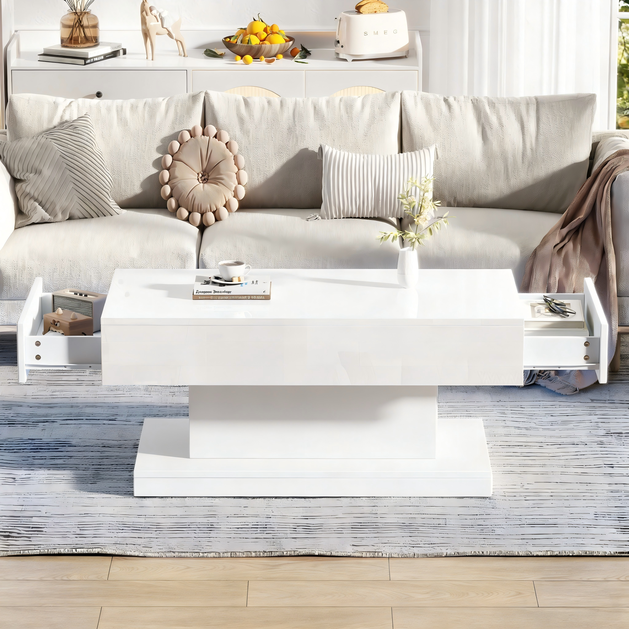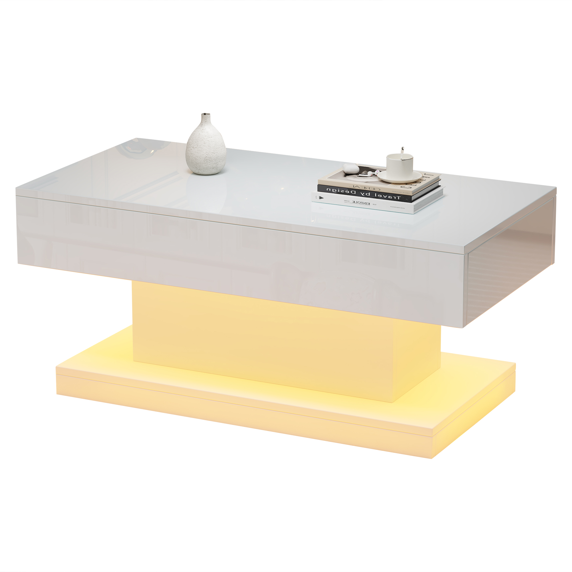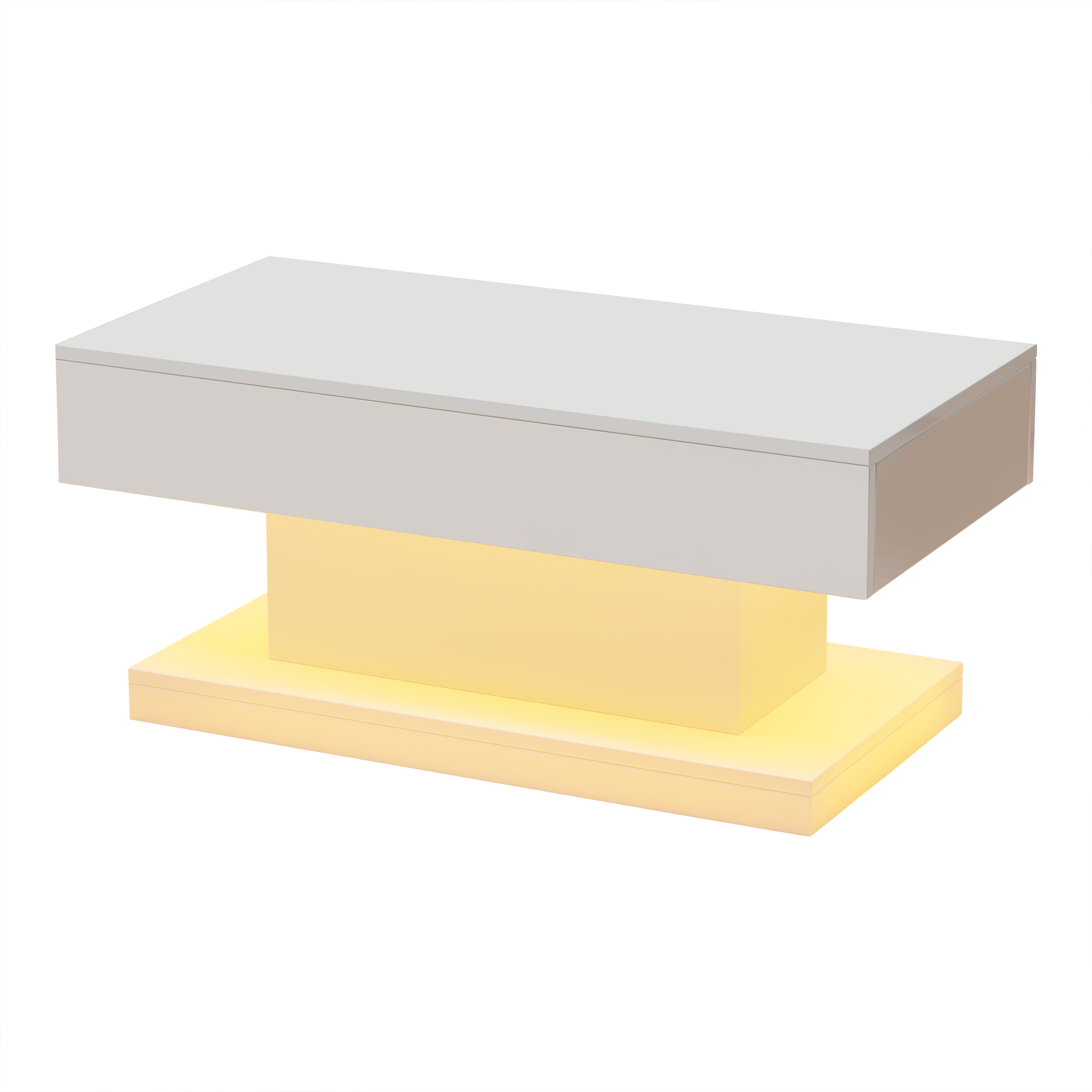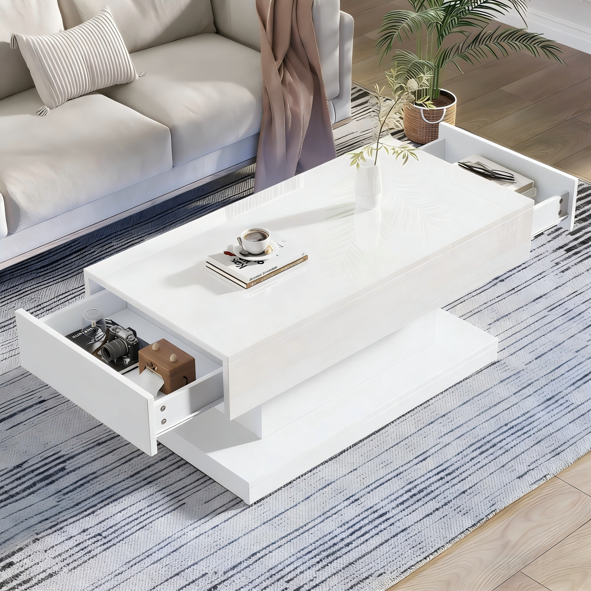 Product Name:High-gloss Coffee Table with 2 drawers, LED lights, Modern Centre Table, Sofa Side Table, Tea Table for Living Room, Office, 100*50*45cm, White