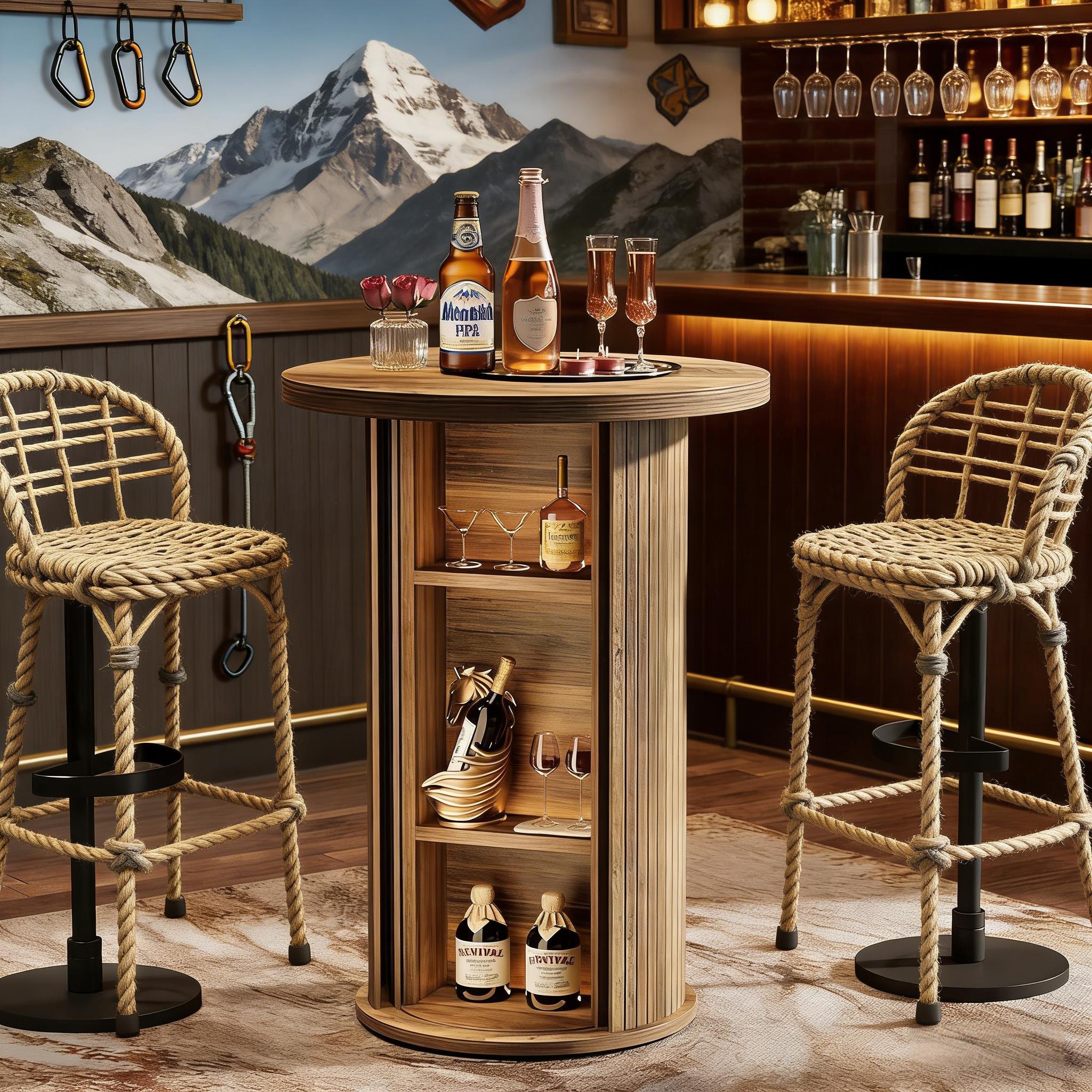 Important Reminder!!! 1) Attention: All products in our store do not support Canada self pickup ordering. Please do not create shipping labels for Canada. Our American products do not support self pickup to Canada 2)We do not ship to Alaska, Hawaii, US protectorates (e.g., Puerto Rico), P.O. boxes, or APO/FPO addresse 3)We don’t accept non-defective remorse returns Practical 3-Tier Storage for Gatherings - Keep your party going with built-in shelves designed to hold wine bottles, glasses, and all your barware essentials. Everything you need is within easy reach, ensuring a clutter-free, stylish setting. Sleek, Timeless Elegance - This bistro pub table boasts a graceful wood grain finish and refined fluted detailing. It's a sophisticated addition that seamlessly integrates with your home decor. Balancing Comfort and Stability - Standing at 35.4'' tall, this cocktail table is ideal for use with stools or for standing discussions. The tabletop can support up to 66 lbs, each storage shelf holds 44 lbs, and the table has a total capacity of 220 lbs. Durable Quality Craftsmanship - Made from reinforced engineered wood, this round cocktail table marries strength with elegance. The thickened top is water and scratch-resistant, ensuring its refined appearance is easy to maintain. Multipurpose Design - Ideal for kitchens, dining rooms, cafes, or bar corners, this 23.23'' high bar table brings stylish functionality without taking up extra room. It easily transitions from home bars to commercial pubs. Easy-to-Assemble Design - This table comes with clearly labeled parts and instructions for swift setup. Its smooth surfaces are easy to wipe clean, saving you time on routine care.