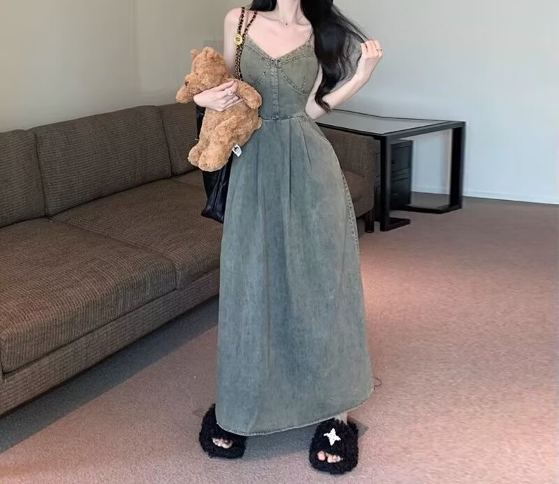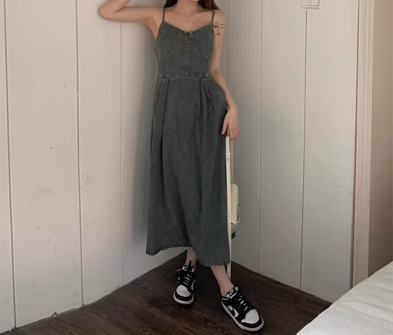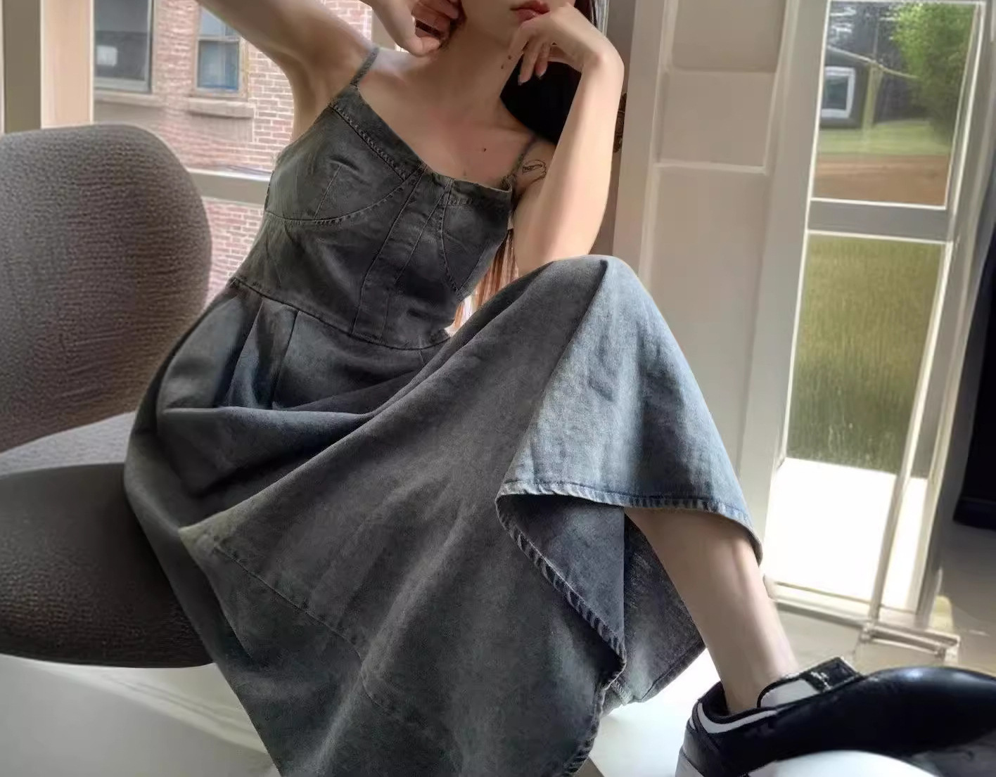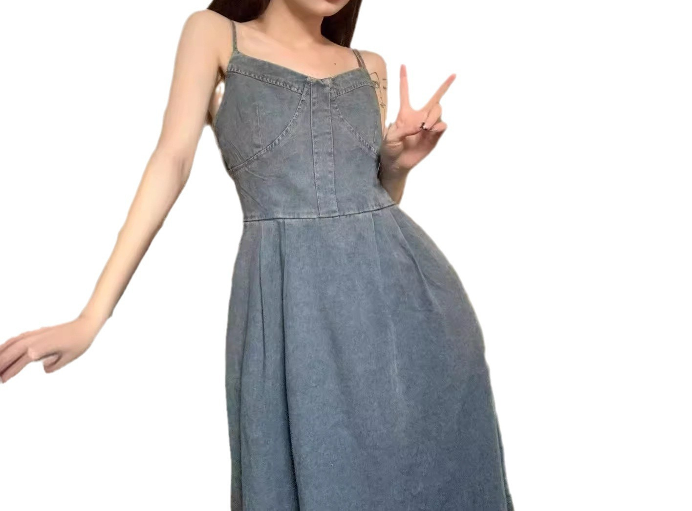 Hot Girl Retro Denim Sling Dress Women's Clothing