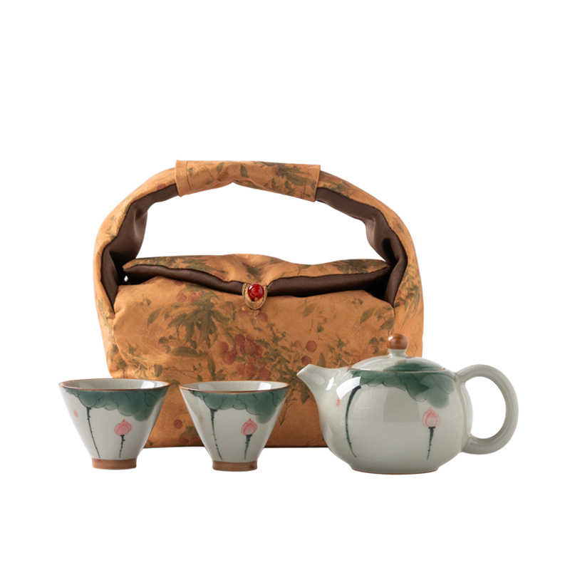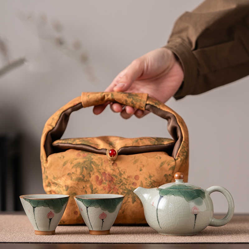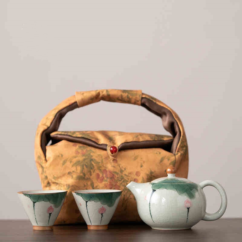Color classification: gracked glaze lotus one pot two cups gracked glaze lotus one pot two cups cloth bag gracked glaze lotus one pot two cups tea tray