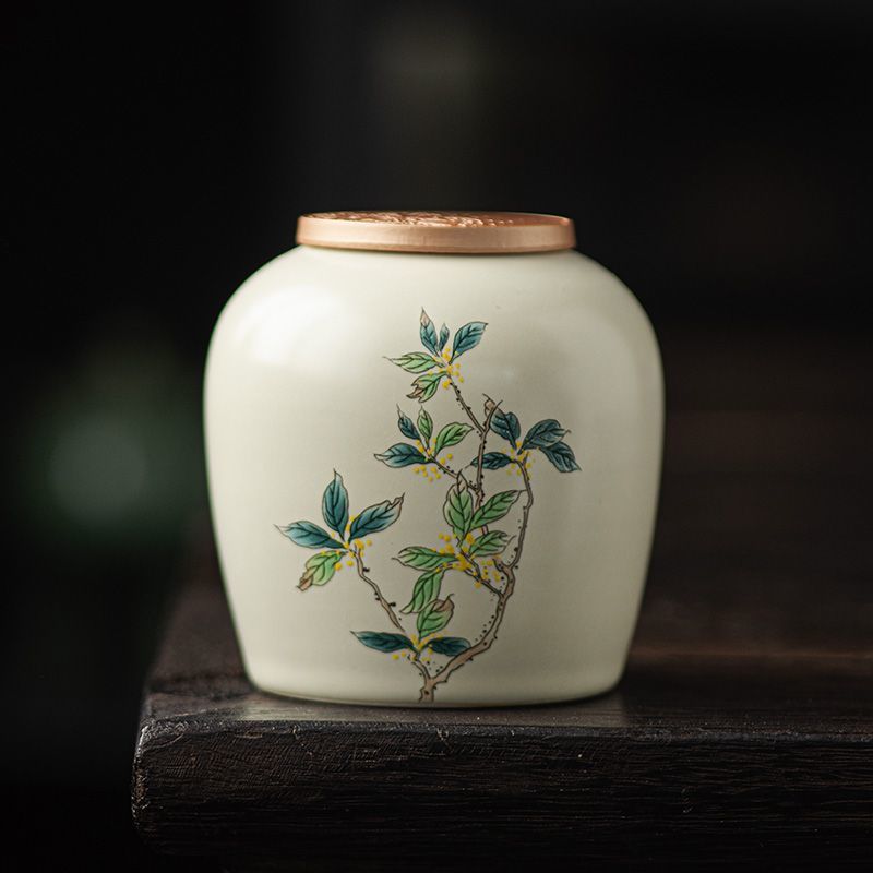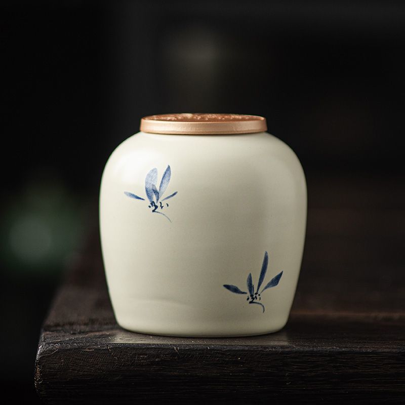 Metal Cover Non-woven Fabric Breathable Small Tea Leaf Jar Ceramic Sealed Can