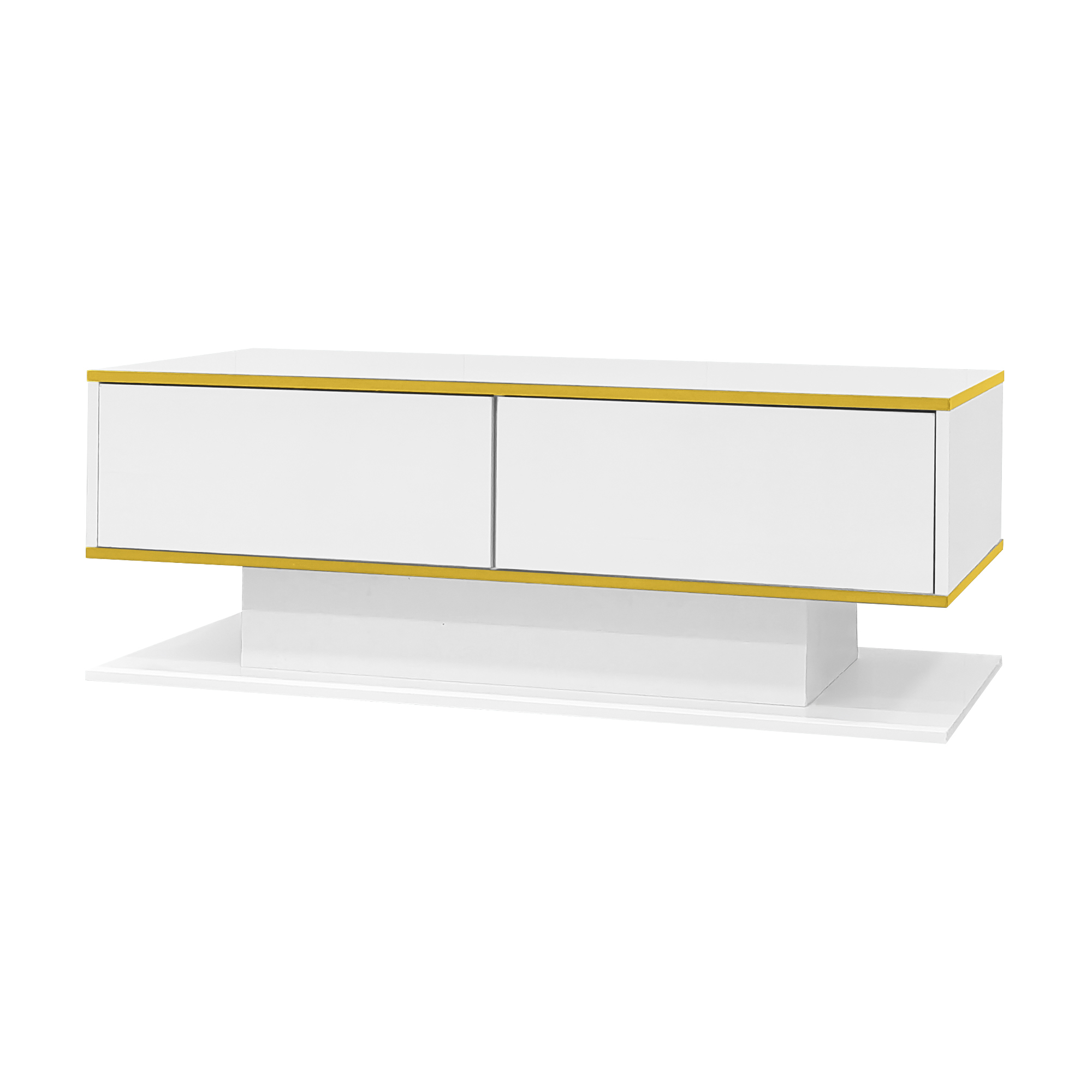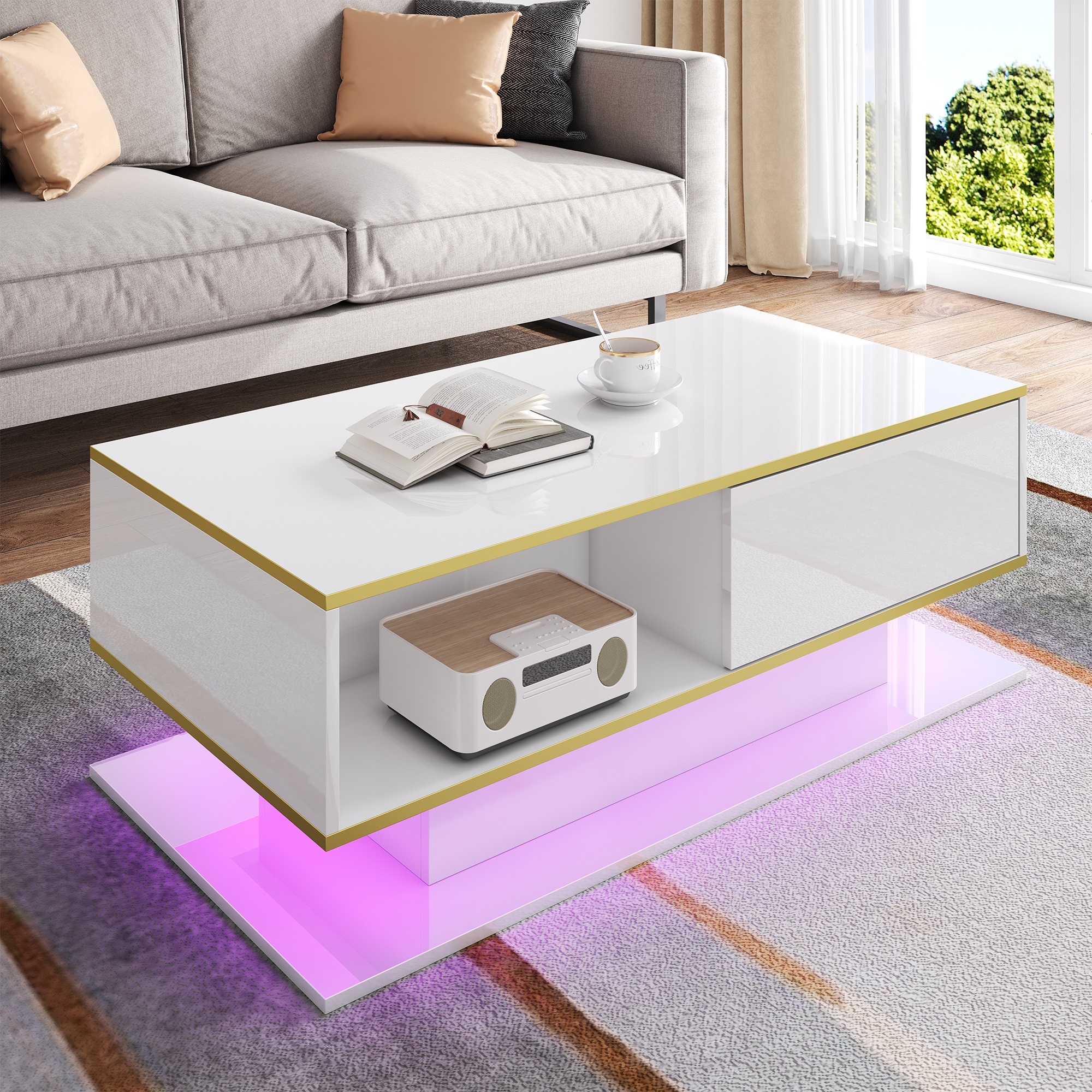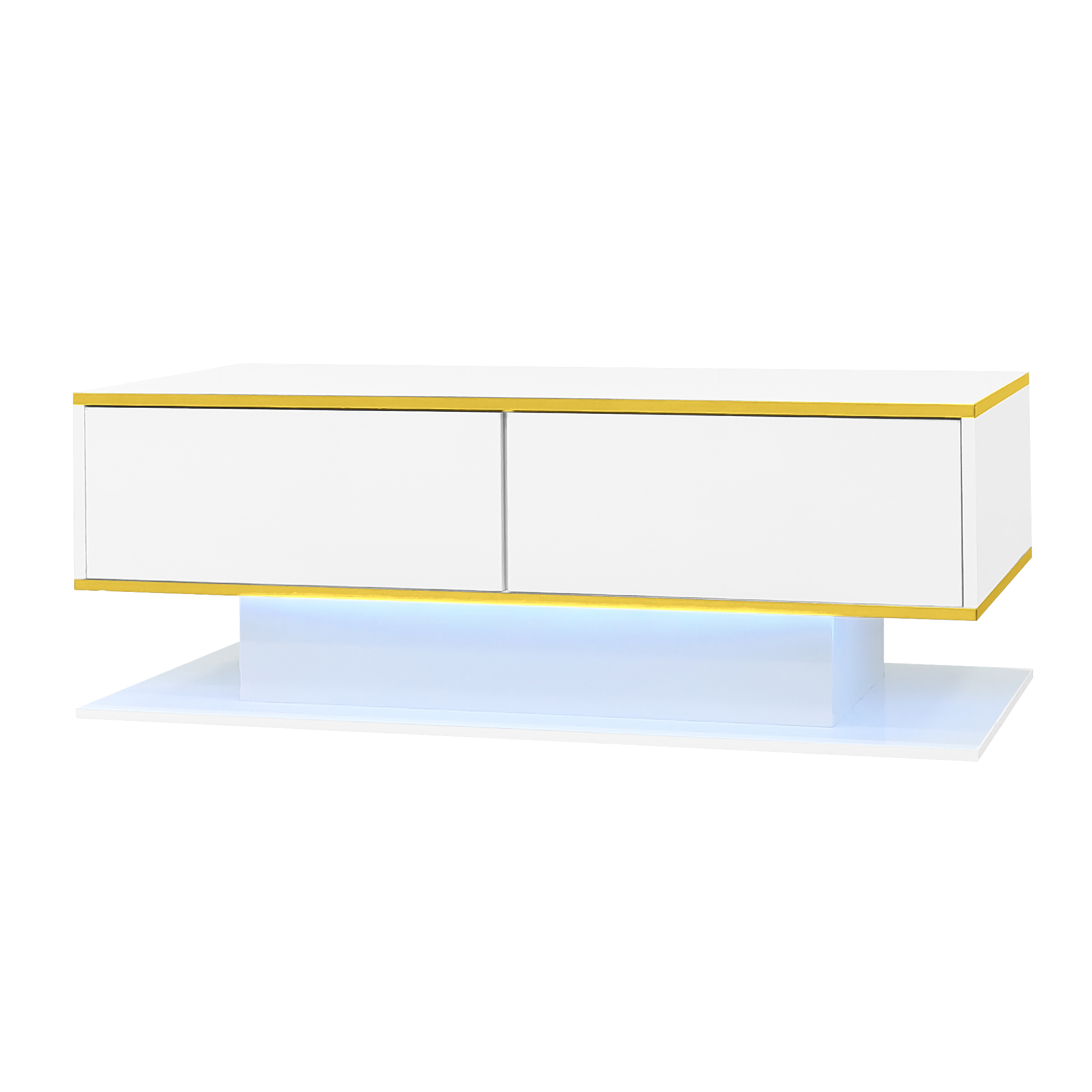 Product Name:Modern LED Coffee Table with High-Gloss Finish, 100 cm Length, Gold Accents, 3 Drawers & USB LED Light Strip (Adapter/Power Bank Required)