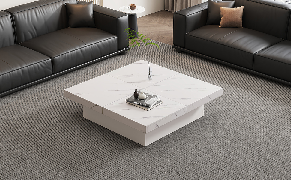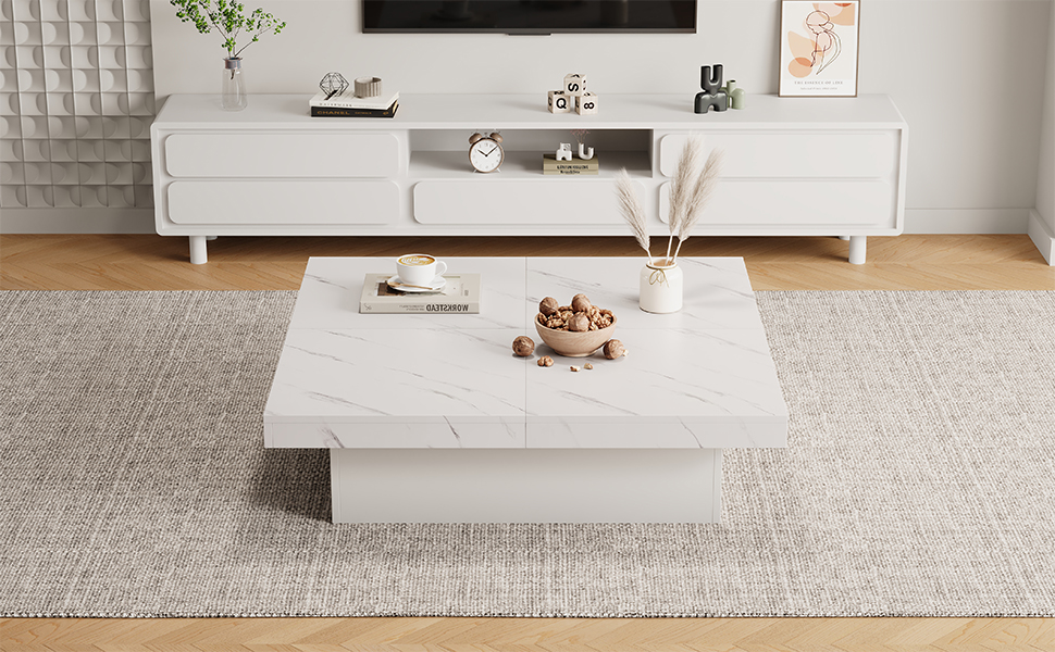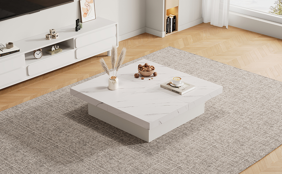 Modern Design: The white square design blends seamlessly into any modern living room style. The clean and uncluttered white tabletop adds an elegant touch to your living room, making it a perfect choice for small spaces.