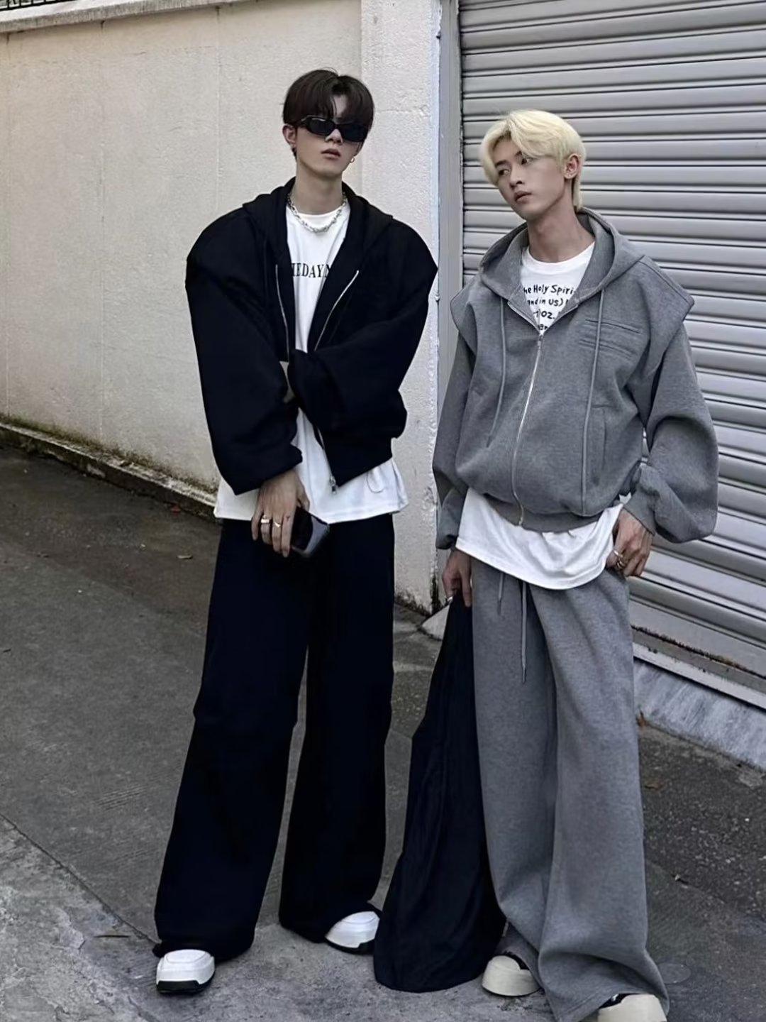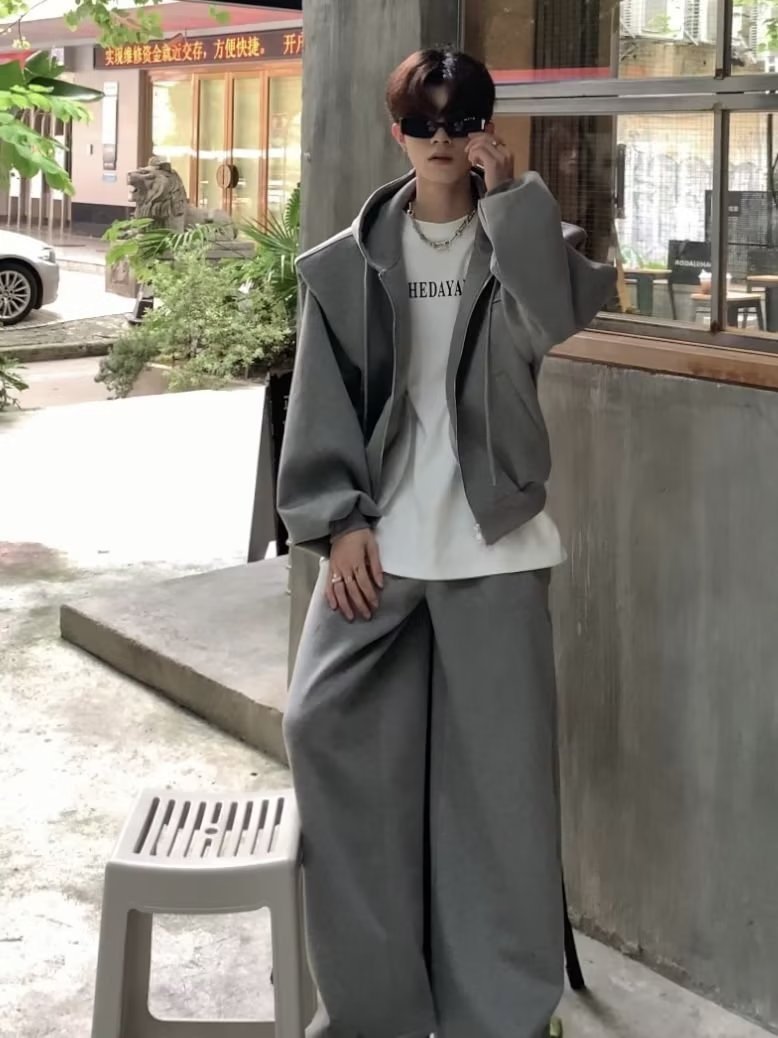 Color: high quality gray suit, high quality black suit, gray top, black top, gray trousers, black pants