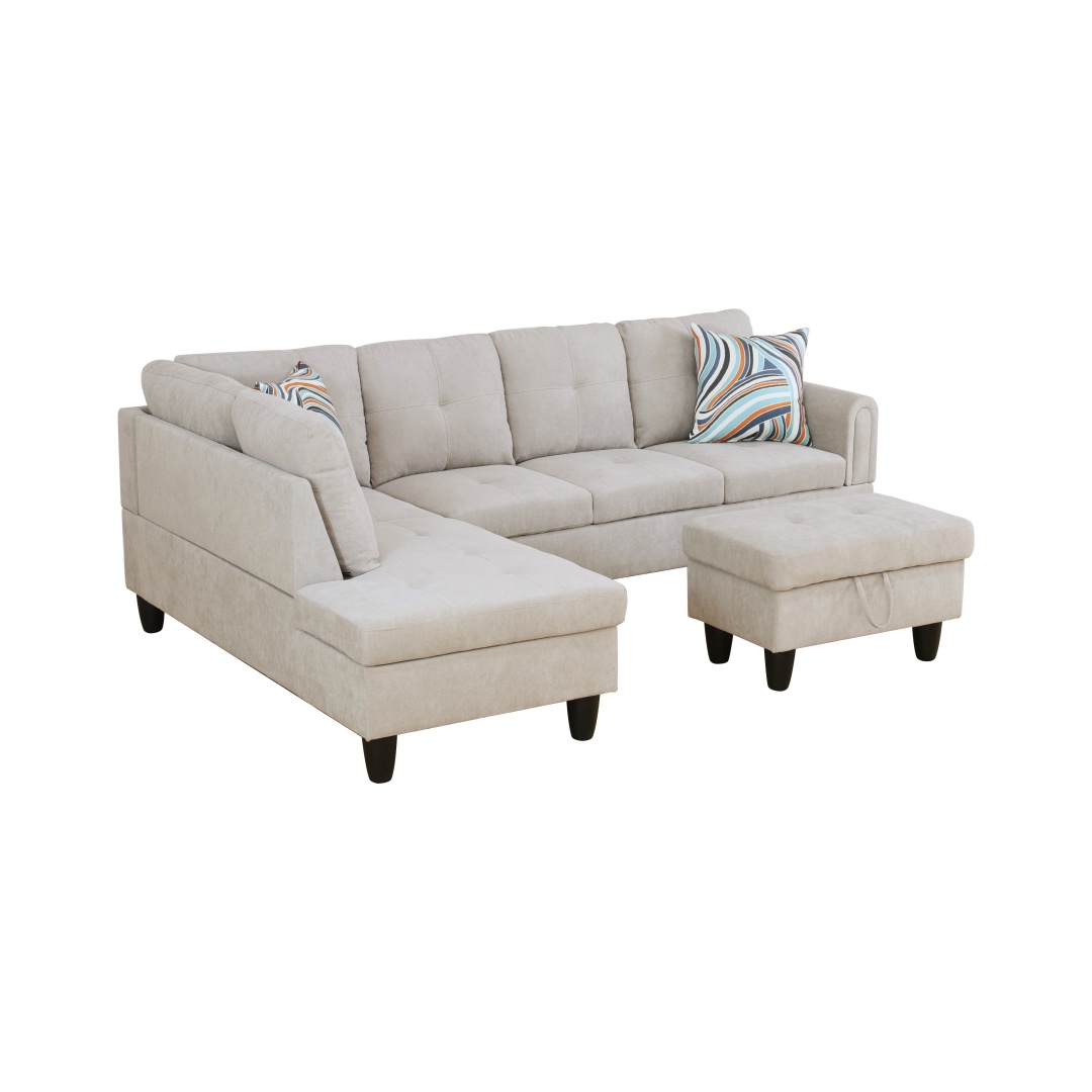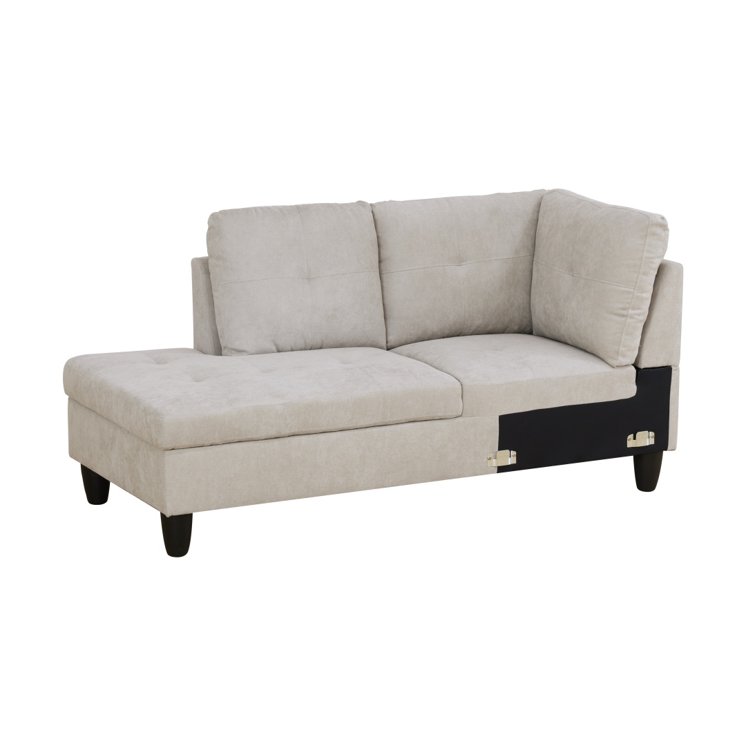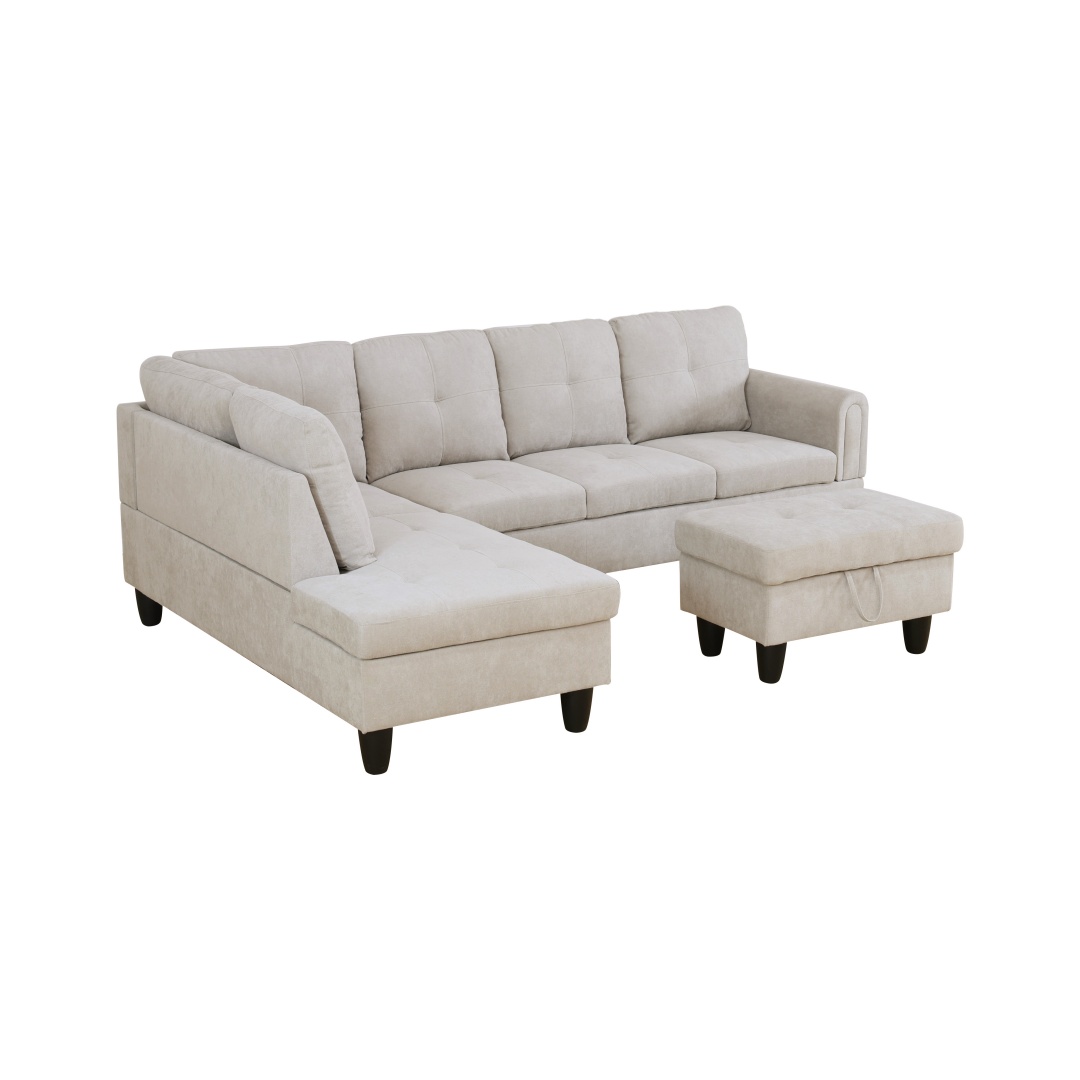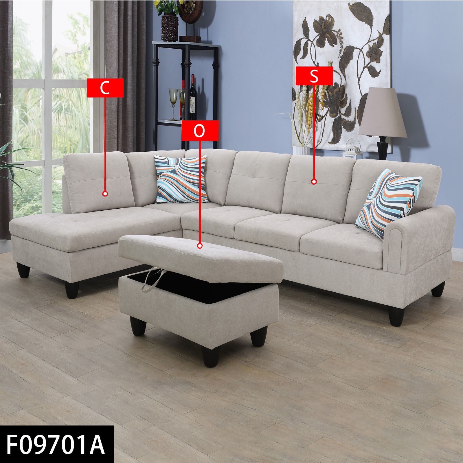 | CHARACTERISTIC | a. The product (Grey) made of top material, exquisite materials, fine workmanship b. Crossed line woven on the sofa concave surface, unique design, smooth line, excellent view, bring the product with strong sense of elegance c. The sofa and chaise can be splited, casual combination can meet the demand for usage in different situations, comfortable sitting, durable using, clean design d. The ottoman with storage function, can store small items for daily use, which is flexible and convenient |