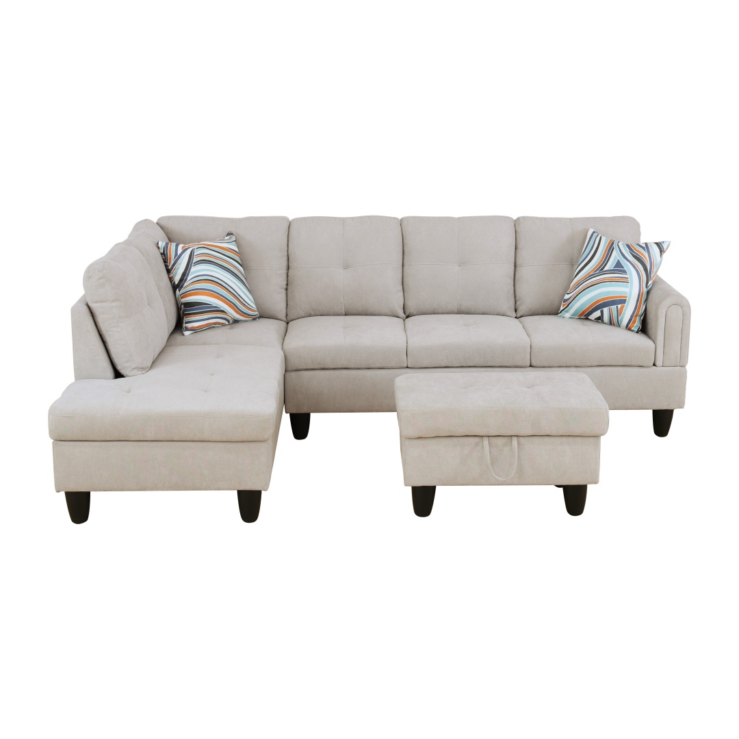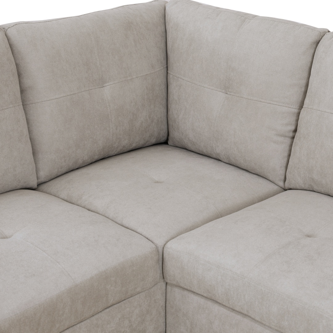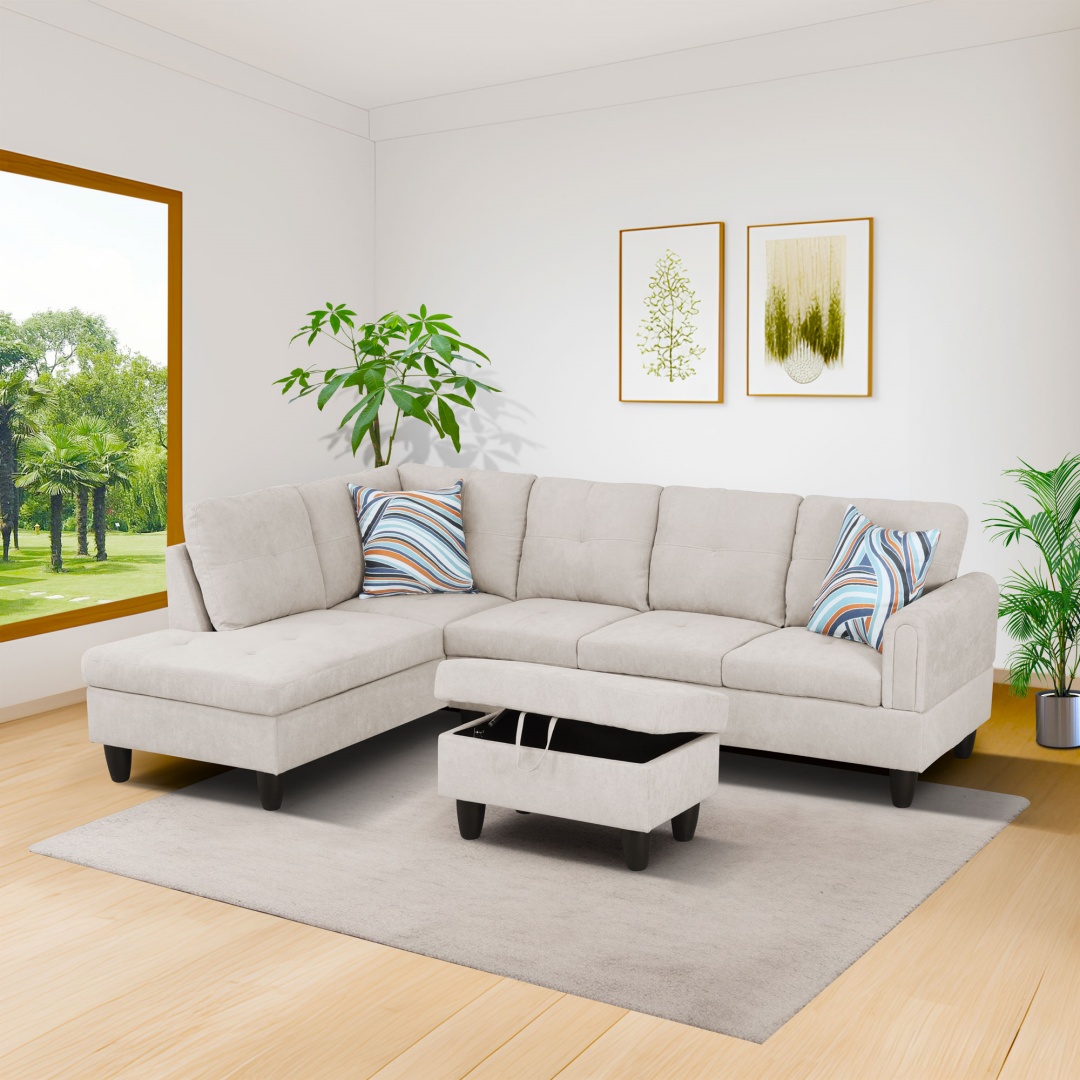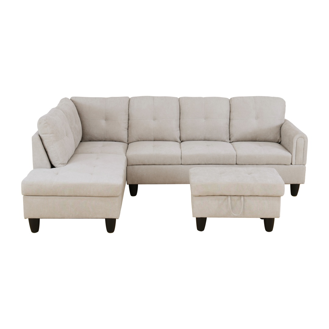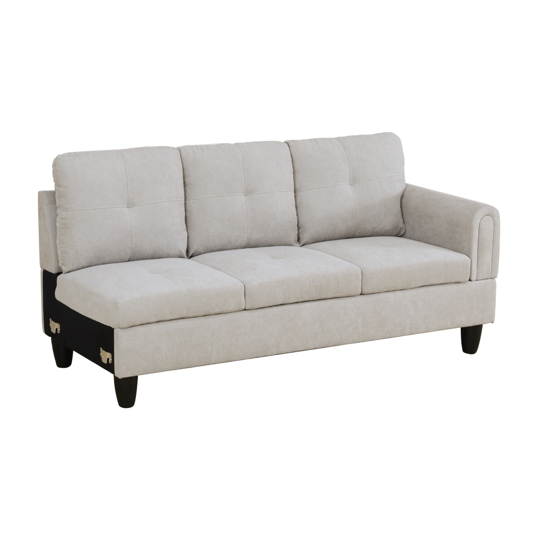 | CHARACTERISTIC | a. The product (Grey) made of top material, exquisite materials, fine workmanship b. Crossed line woven on the sofa concave surface, unique design, smooth line, excellent view, bring the product with strong sense of elegance c. The sofa and chaise can be splited, casual combination can meet the demand for usage in different situations, comfortable sitting, durable using, clean design d. The ottoman with storage function, can store small items for daily use, which is flexible and convenient |