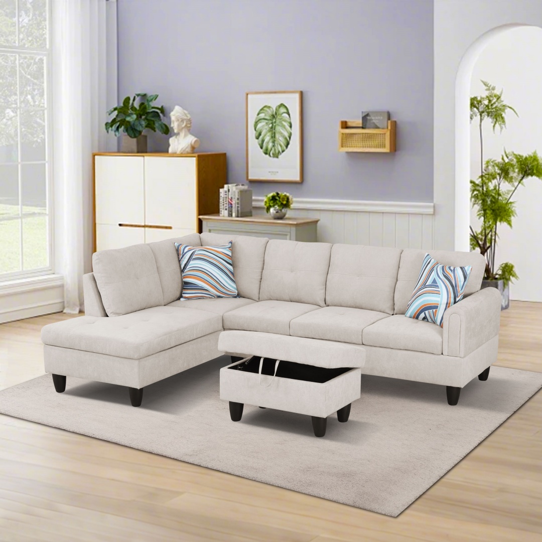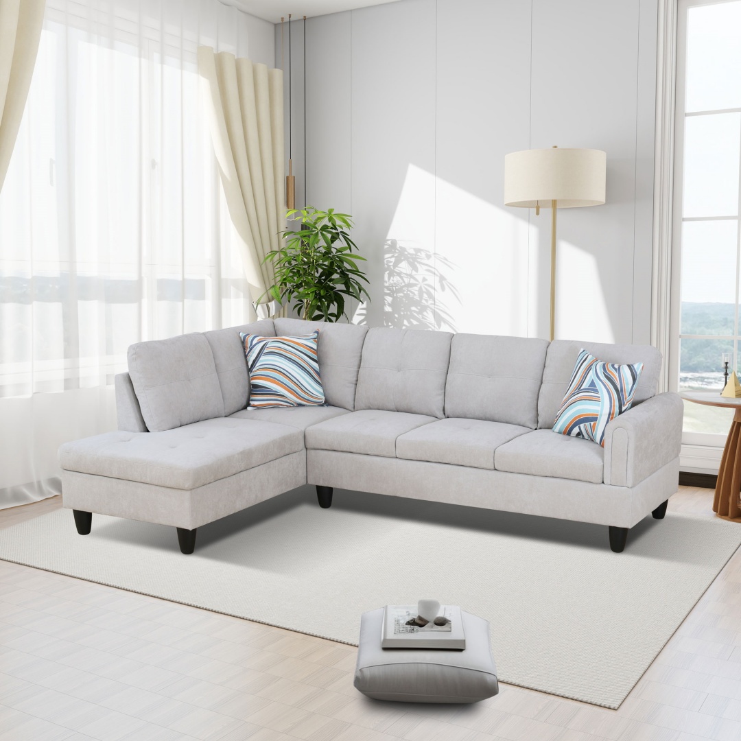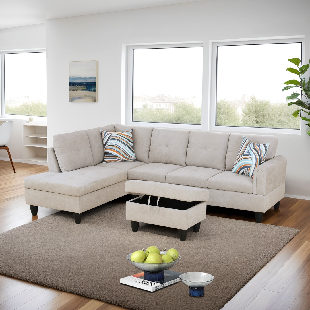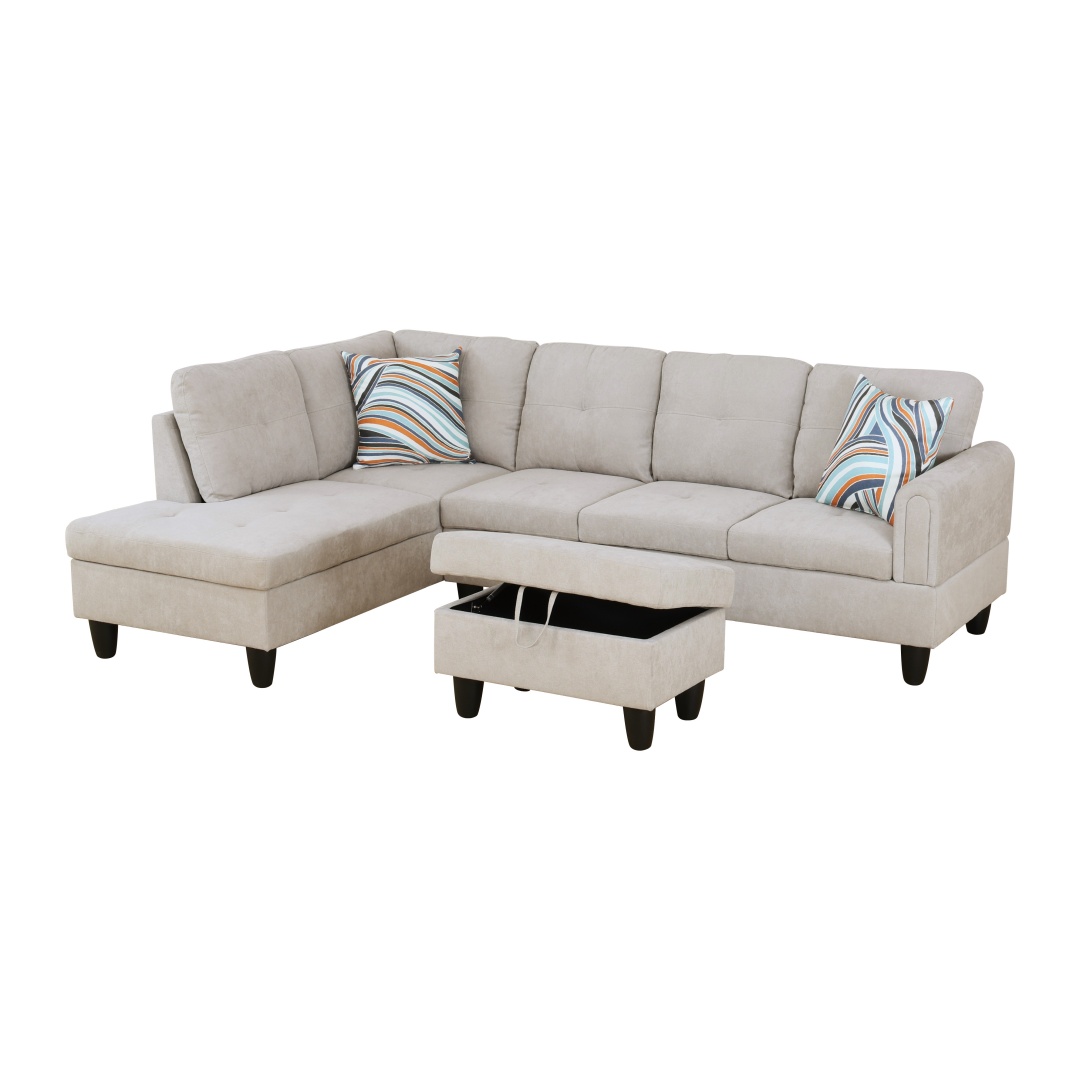 | CHARACTERISTIC | a. The product (Grey) made of top material, exquisite materials, fine workmanship b. Crossed line woven on the sofa concave surface, unique design, smooth line, excellent view, bring the product with strong sense of elegance c. The sofa and chaise can be splited, casual combination can meet the demand for usage in different situations, comfortable sitting, durable using, clean design d. The ottoman with storage function, can store small items for daily use, which is flexible and convenient |