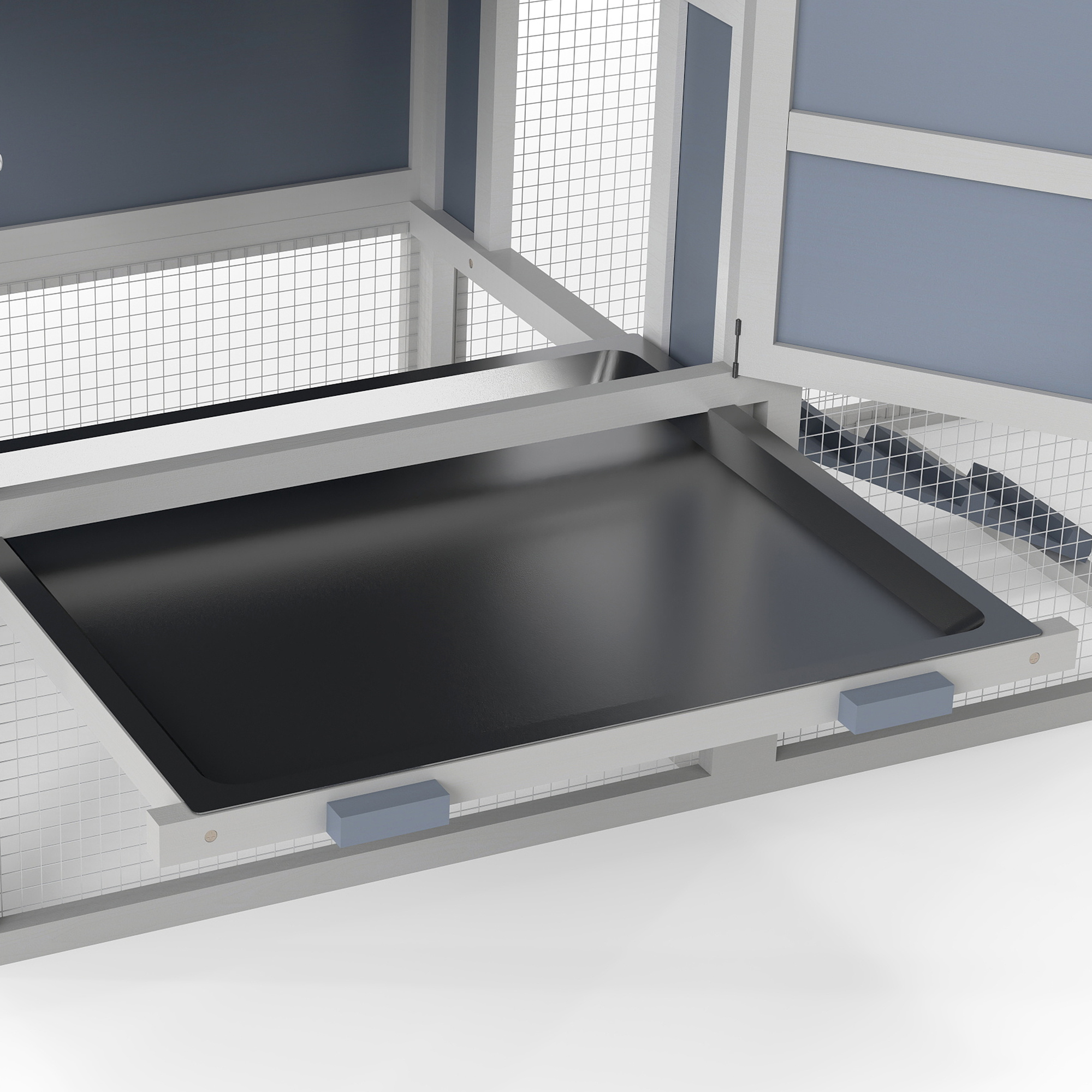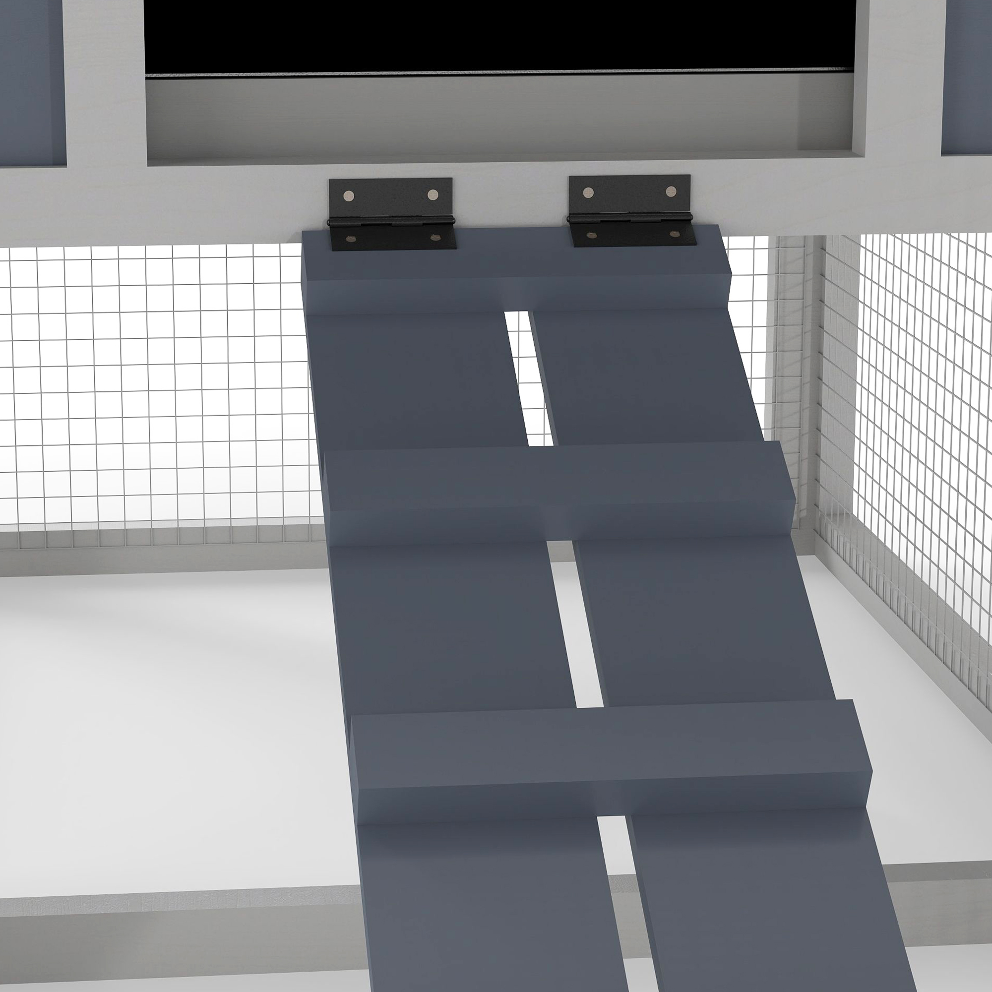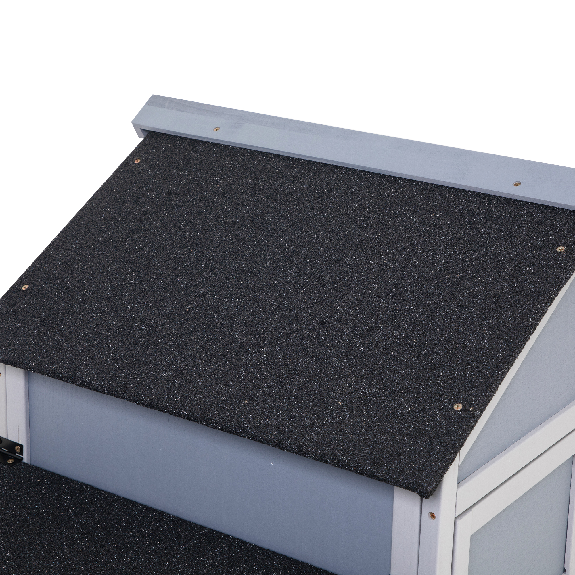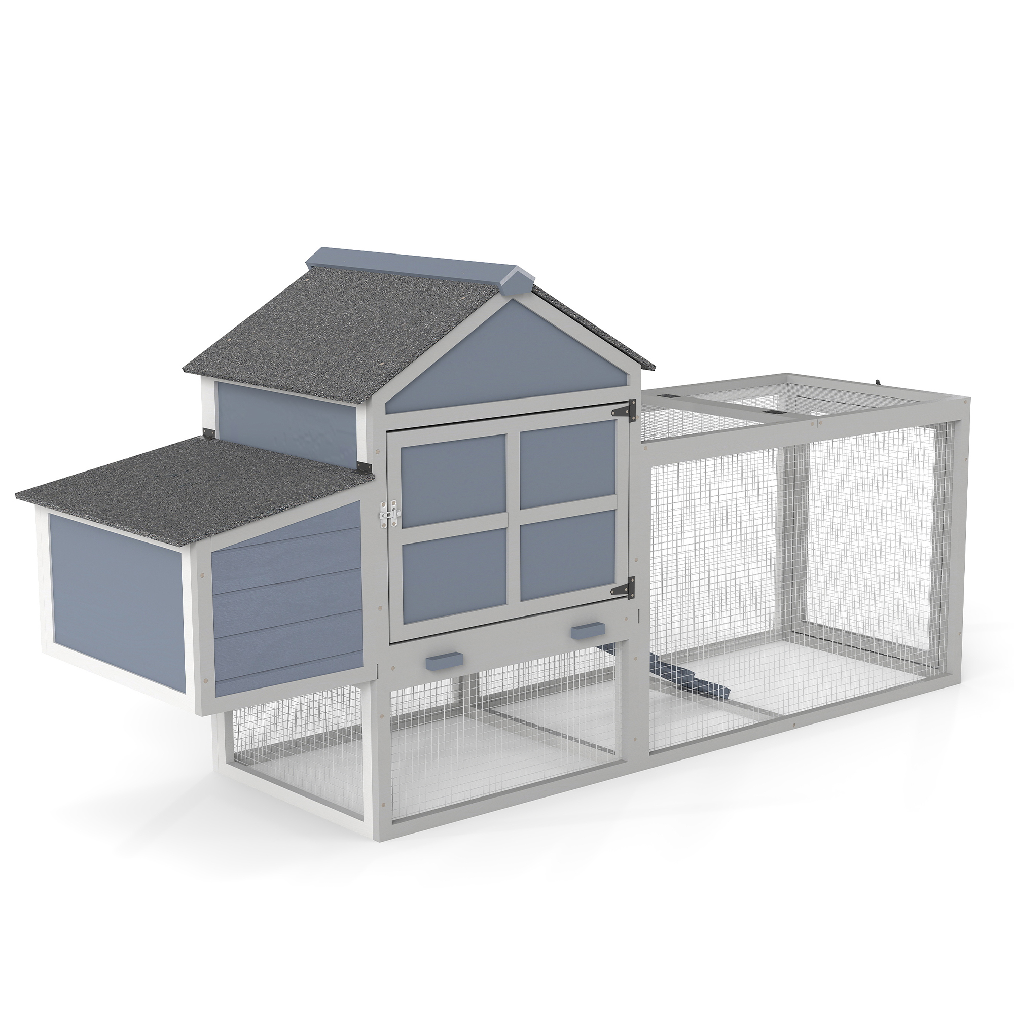 Color: Gray Material: Pinewood + Galvanized Mesh + Asphalt + PVC Overall Dimensions: 79.92"L x 24.21"W x 40.16"H Nesting Box (inner): 20.47"L x 13.4"W Roof of Nesting Box: 22.44"L x 15.75"W Resting Area (inner): 22.44"L x 20.87"W Front Door of Resting Area: 22.44"L x 14.57"W Pull-Out Tray: 22.44"L x 20.87"W Mesh Door: 22.44"L x 17.72"W Ramp: 20.47"L x 5.91"W Net Weight: 50.71 lbs