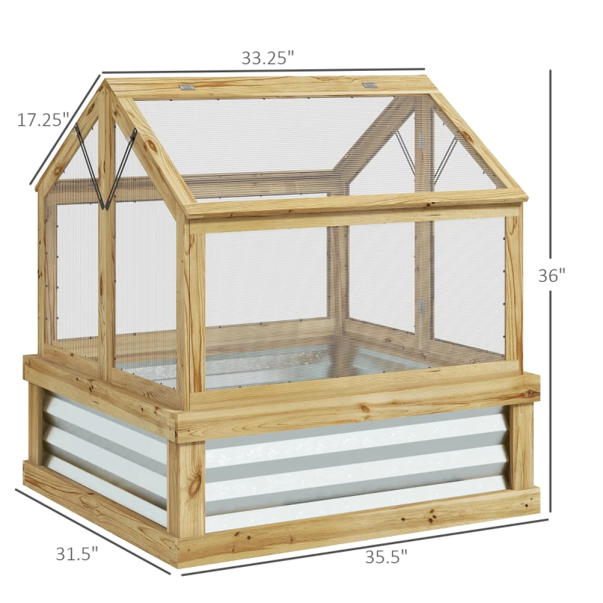 • - Garden Bed Dimensions: 35.5" W x 31.5" D x 12" H