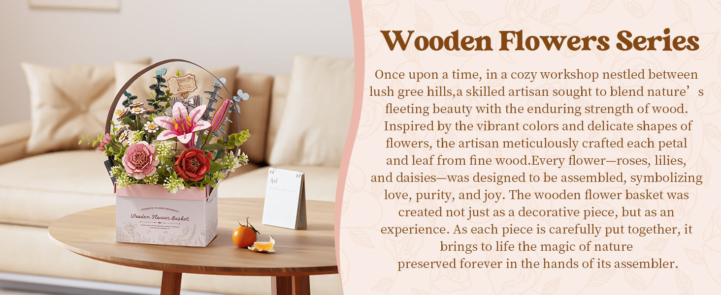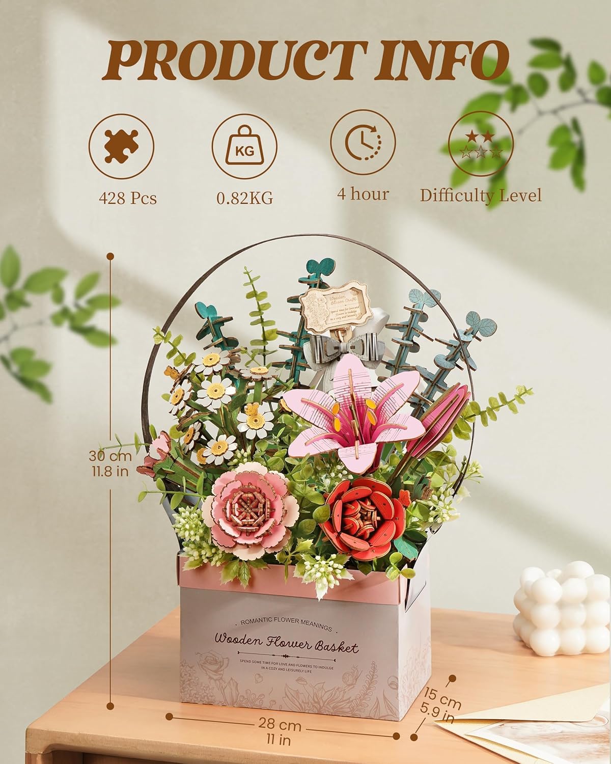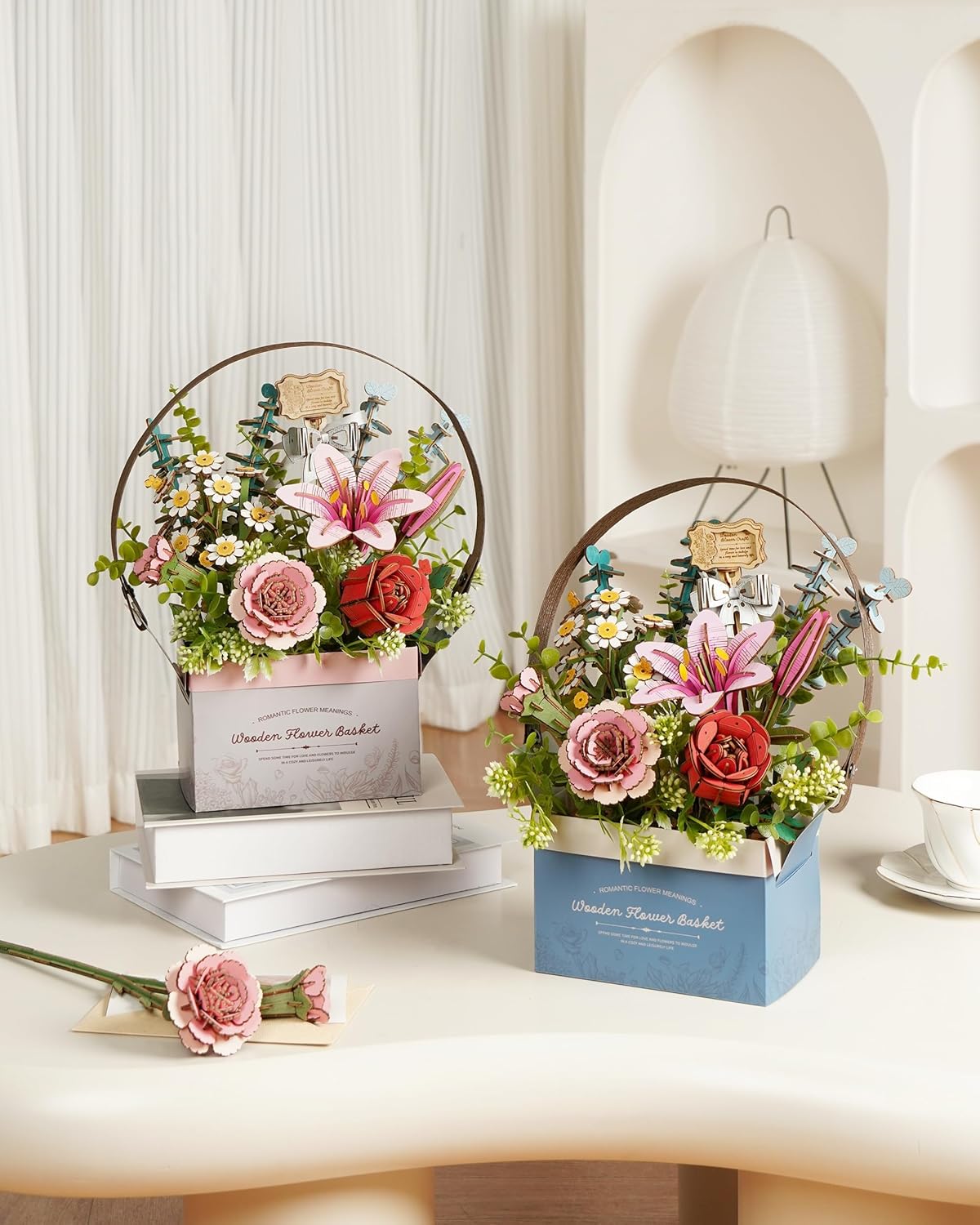 This charming bouquet set will take you into a world full of creativity. This set includes a variety of vibrant flowers and a chic flower basket. Once assembled, it becomes a charming decorative piece that will brighten any room, and the petals will never fade.